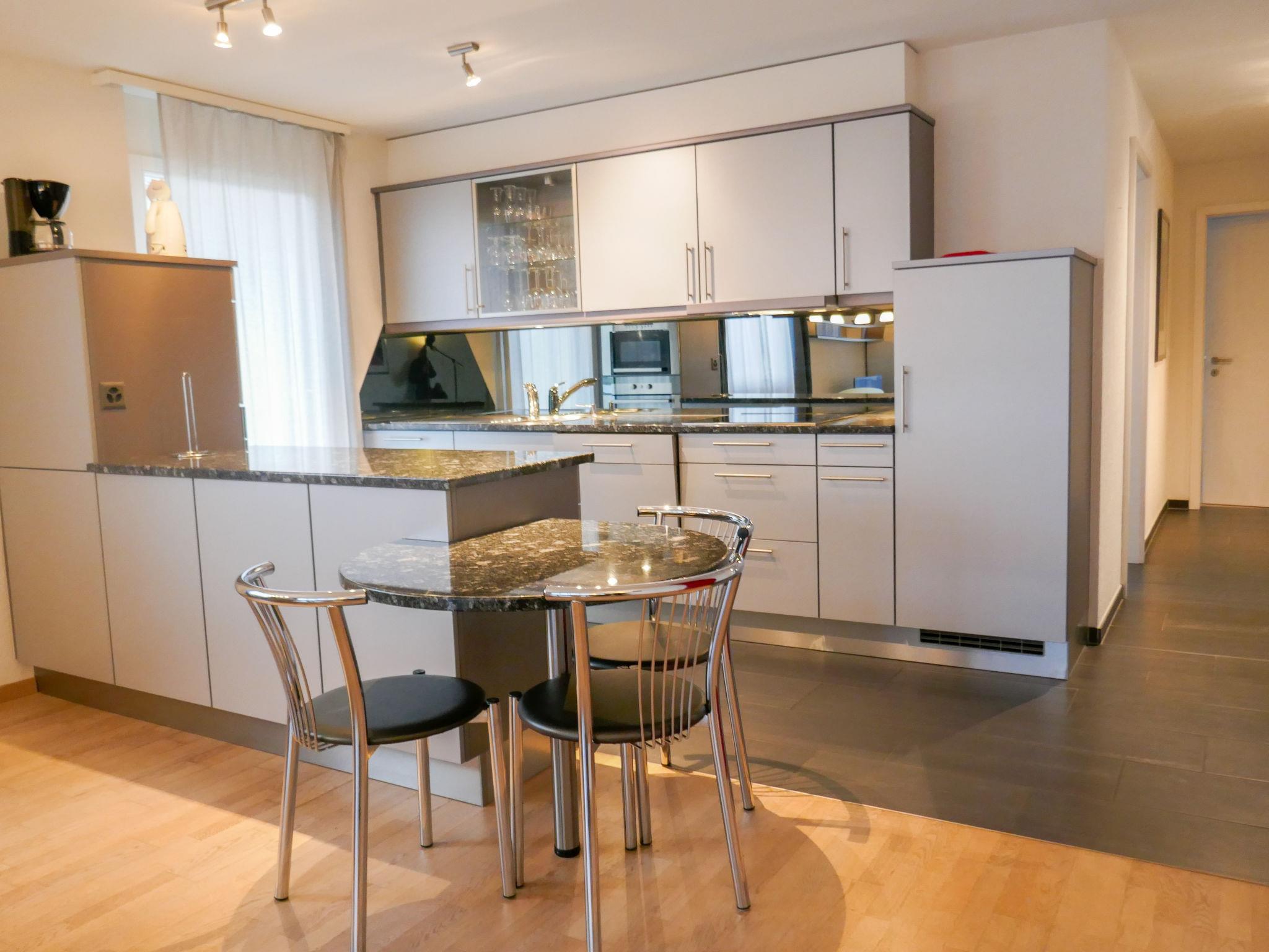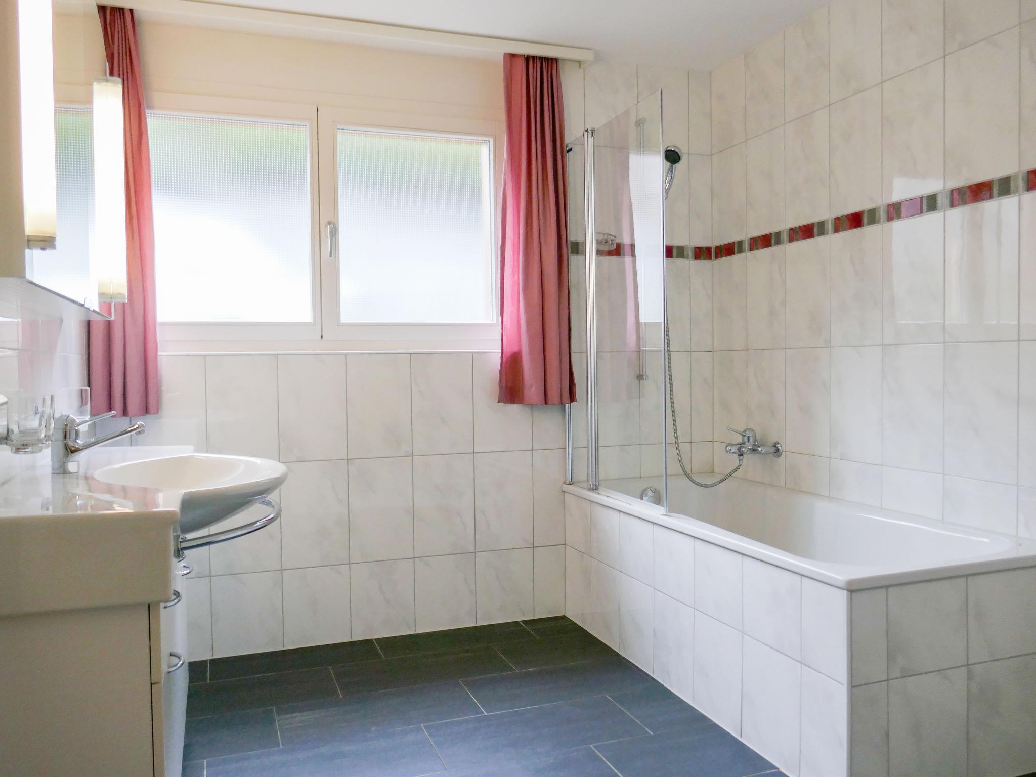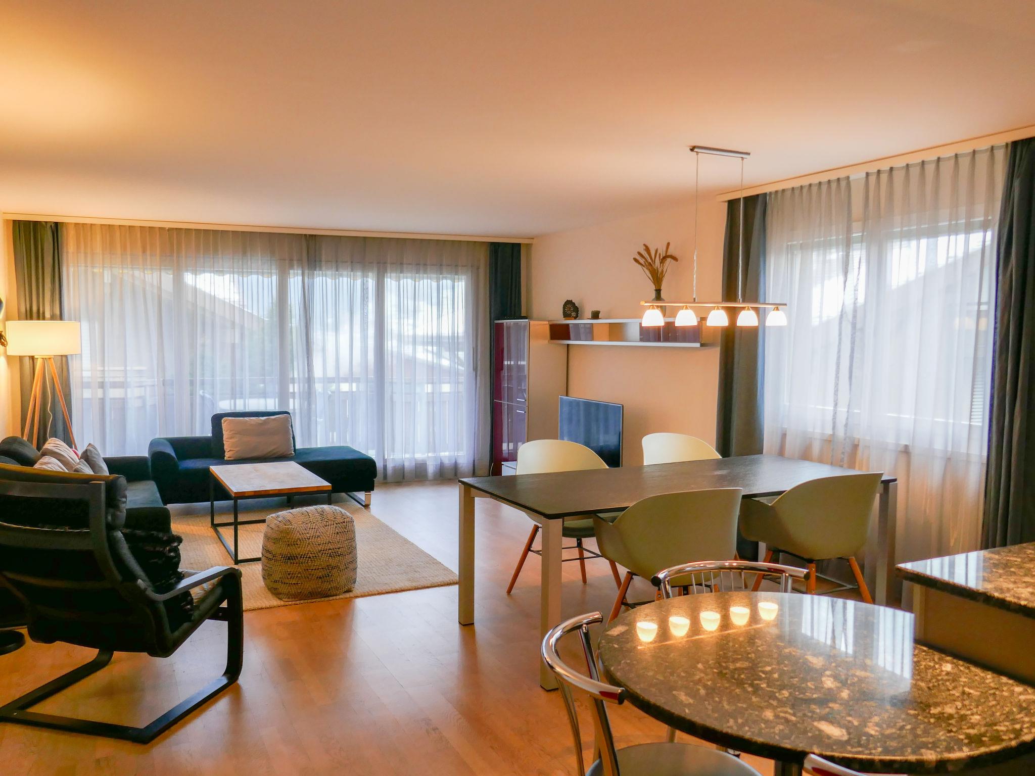 3-room apartment 108 m2 on 1st floor, south facing position. Bright, beautiful and modern furnishings: living/dining room with cable TV and flat screen. Exit to the balcony, south facing position and west facing position. 1 room with 1 bed (90 cm, length 200 cm), 1 french bed (160 cm, length 200 cm). 1 room with 1 french bed (160 cm, length 200 cm). Exit to the balcony, west facing position. Open kitchen (oven, dishwasher, 4 ceramic glass hob hotplates, microwave, electric coffee machine, Capsules for coffee machine (Nespresso) extra, raclette grill, fondue Set (cheese)). Bath/WC, shower/WC. Underfloor heating. Parquet floors, natural stone floors. South facing position and west facing position. Balcony furniture. Marvellous view of the mountains and Eiger. Facilities: washing machine, dryer, iron. Internet (WiFi, free). Parking, garage space n 12, height 198 cm. Please note: non-smokers only. Fire extinguisher.