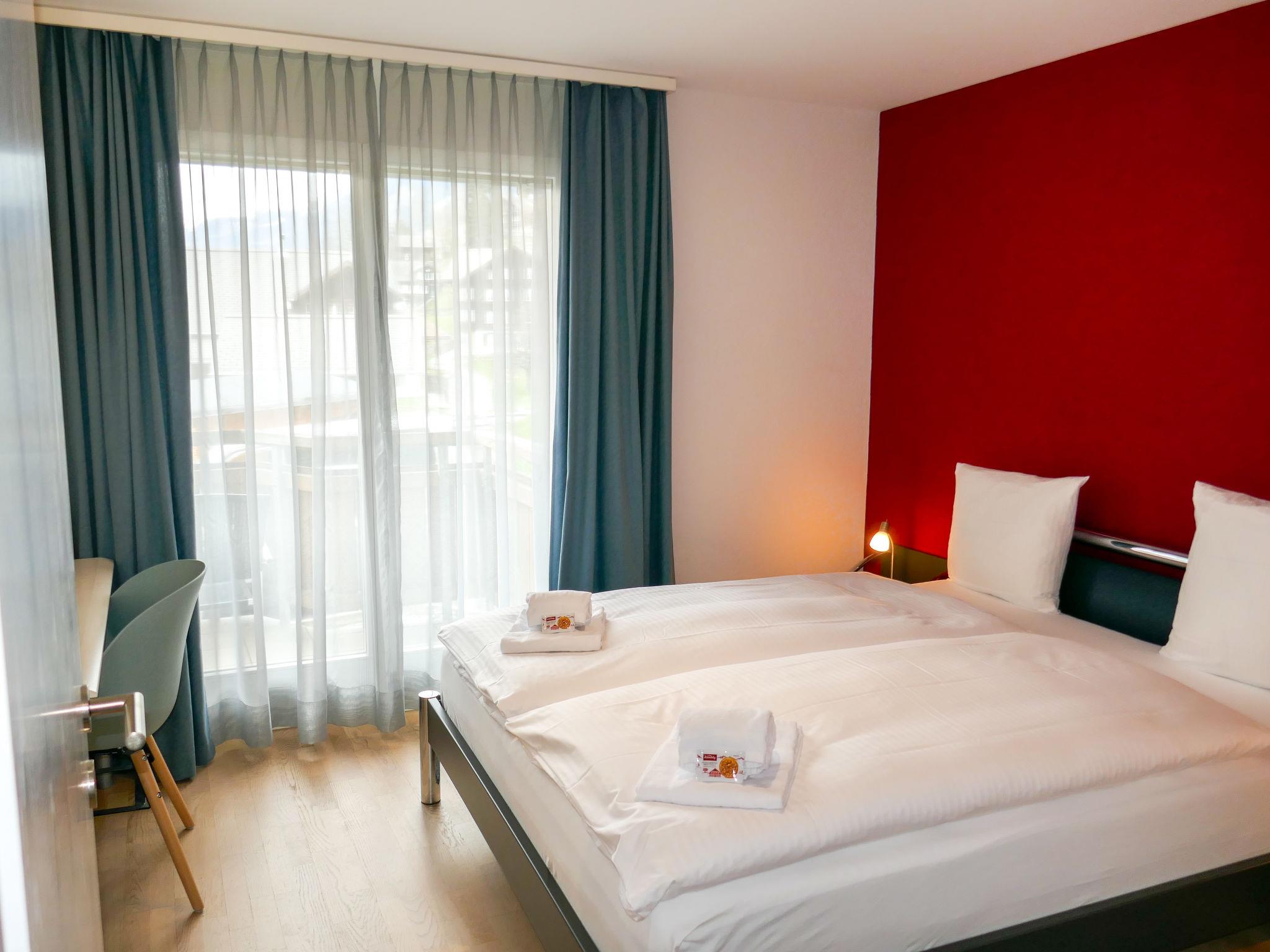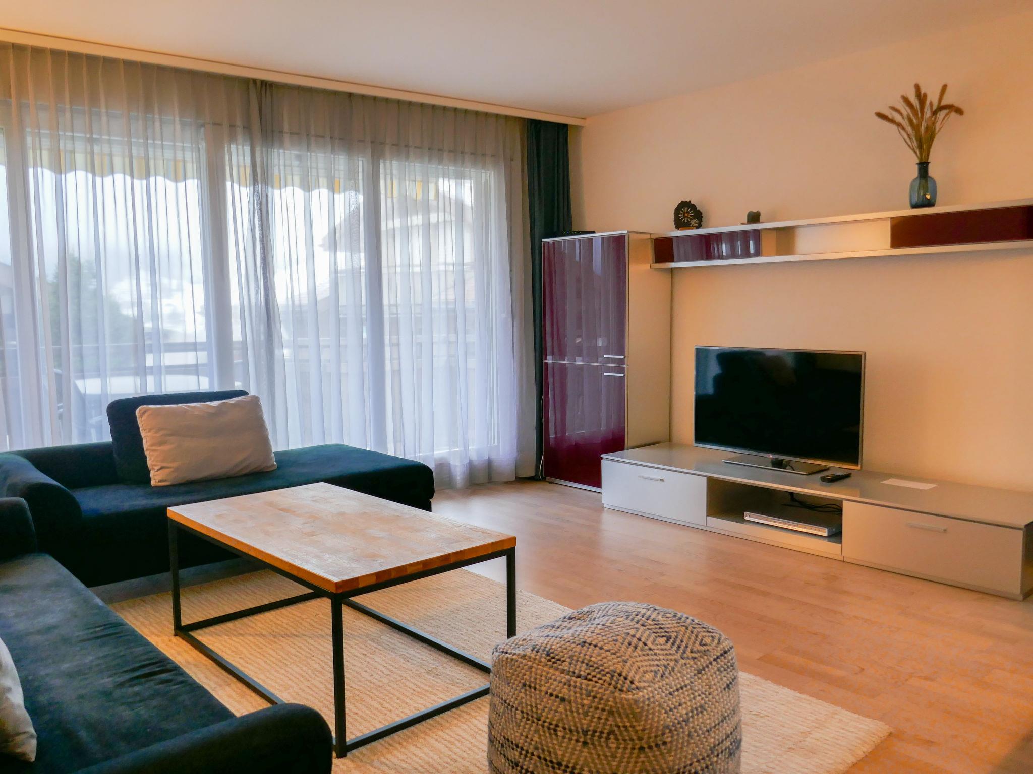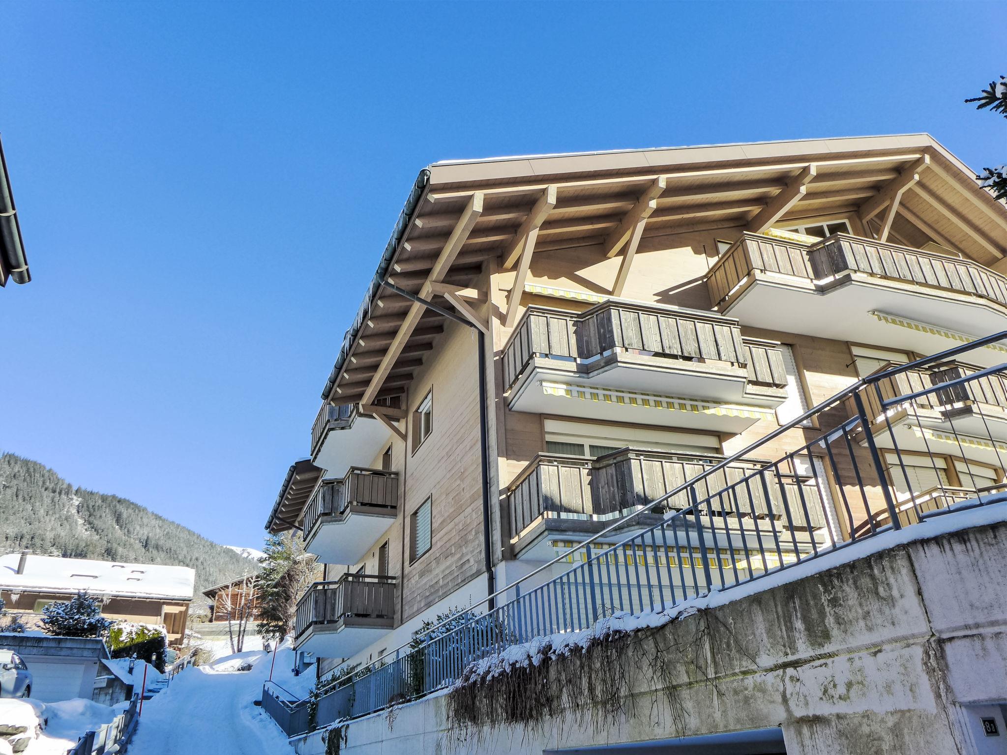 Beautiful apartment house "Résidence Sans Souci", 3 storeys. In a sunny position, excellent location: right in the centre but still quiet, in a cul-de-sac, south facing position. In the house: lift, storage room for skis, central heating system. In Winter: please take snow chains. Communal covered parking. Supermarket, shopping centre 50 m, restaurant 100 m, bar, bakery, bicycle rental 500 m, bus stop "Sportzentrum" 100 m, railway station "Grindelwald Dorf" 200 m, outdoor swimming pool 2 km, indoor swimming pool 100 m. Golf course (9 hole) 3 km, tennis 2 km, minigolf 300 m, sports centre 100 m, gondola lift 500 m, ski rental, ski bus stop 100 m, cross country ski track 2 km, children's playground 100 m. Well-known lakes can easily be reached: Thuner-/Brienzersee 18 km. Please note: ski bus (free of charge). The keys‘ handover takes place by the agency Interhome in Grindelwald. Neighbourhood highly sensitive to noise. Quietness and good behaviour expected.