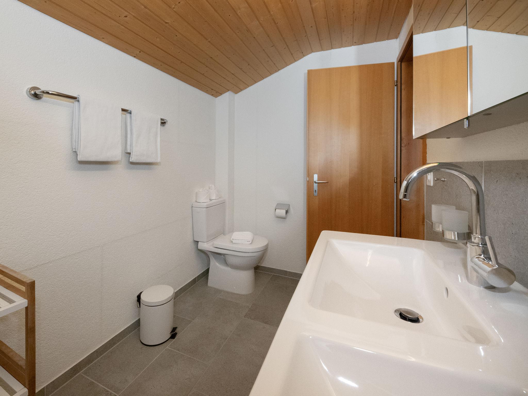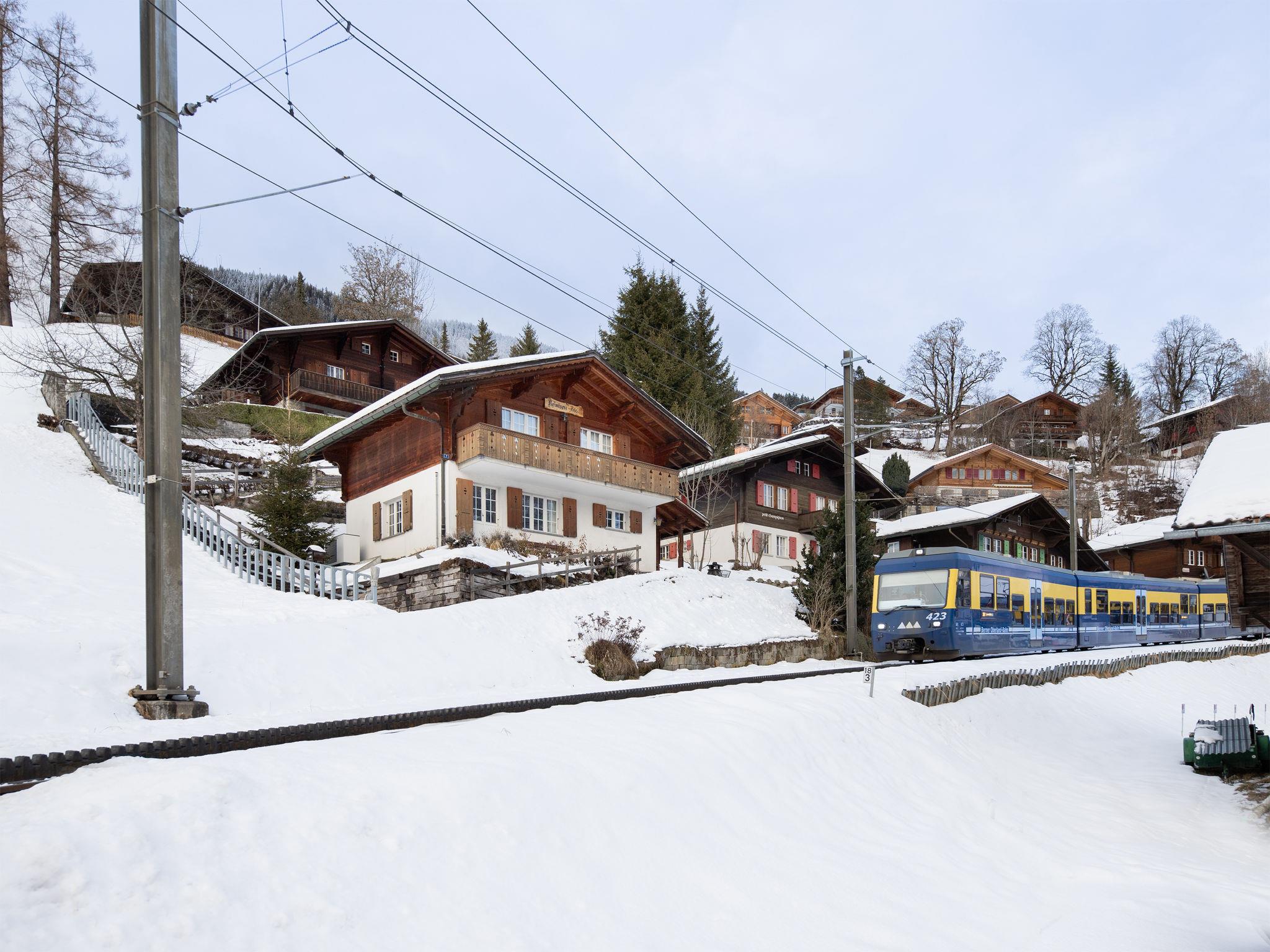 Cosy single-family house "Chalet Reinhysi", renovated in 2014. Unter dem Rain, 700 m from the centre, in a secluded, sunny position on a slope, south facing position. Private: terraced garden (not fenced). Terrace, garden furniture. In the house: internet access, WiFi, storage room for skis, central heating system, washing machine, tumble dryer. Motor access to 50 m from the house. In Winter: please take snow chains. Parking (for 2 cars), single garage at 50 m. Shopping centre 700 m, restaurant 400 m, bakery 900 m, bicycle rental 1.4 km, 10 minute walk to the centre, bus stop "Wasserbühlen oder Rothenegg" 150 m, railway station "Grindelwald Terminal" 200 m, outdoor swimming pool 900 m, indoor swimming pool 800 m. Golf course (9 hole) 3.5 km, tennis 3 km, minigolf 1.2 km, sports centre 800 m, cable car 200 m, mountain railway 400 m, ski bus stop 150 m, cross country ski track 400 m, children's playground 800 m. Well-known lakes can easily be reached: Thuner-/Brienzersee 18 km. Please note: no lift. Cabs cannot stop right in front of the house. Ski bus (free of charge). Railway line 10 m from the property.