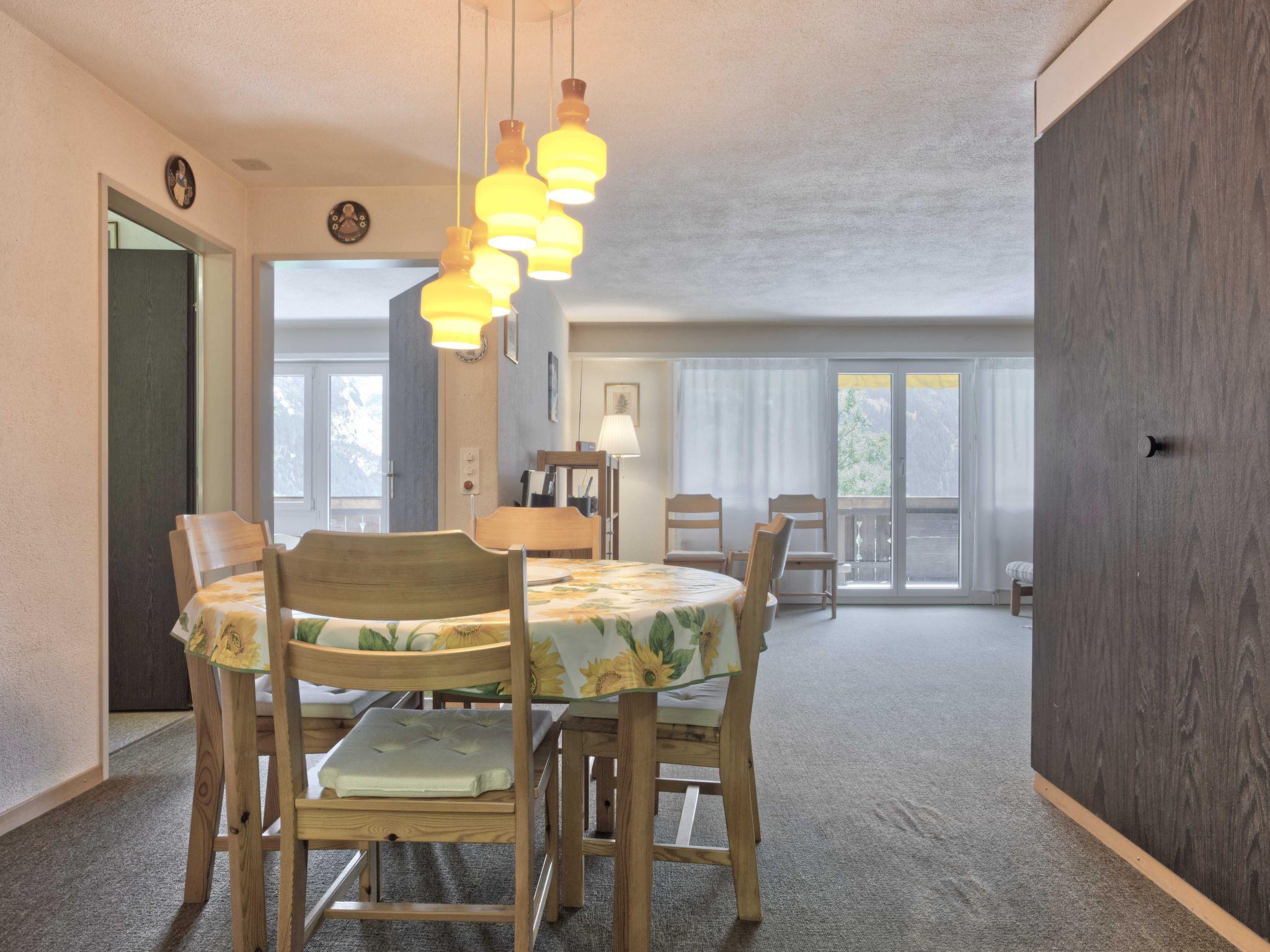 The simply furnished 4.5-room flat on the 2nd floor offers two bedrooms with two single beds and one bedroom with bunk beds as well as a bathroom with bath/WC on 70m2. The holiday flat is equipped with a closed kitchen and a cosy living and dining area. On the balcony you can enjoy the view of the marvellous mountain panorama.