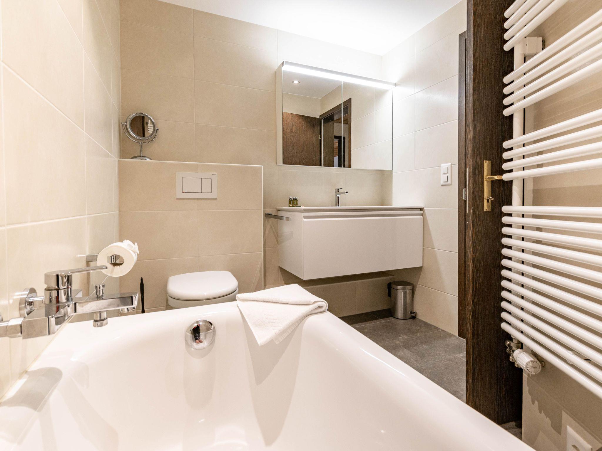 The cosy 4.5-room flat has three bedrooms, two double bedrooms and one bedroom with bunk beds, as well as a bathroom with shower and WC and a bathroom with bathtub and WC. The flat has a well-equipped kitchen and a cosy living and dining area with a fireplace. The spacious balcony offers a beautiful view of the surrounding mountain landscape.