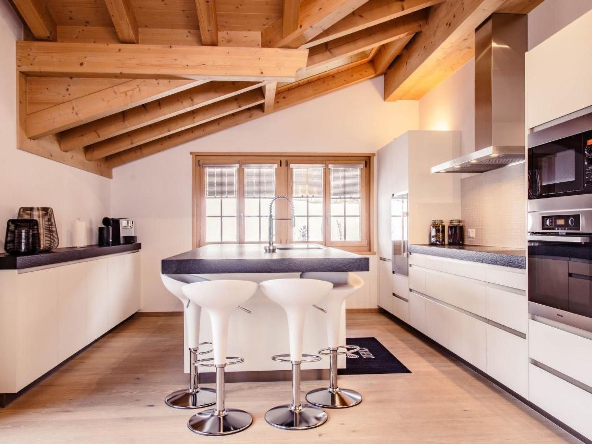 The luxurious 442m2 chalet offers three bedrooms with double bed and en-suite bathroom with shower and toilet, one bedroom with double bed and en-suite bathroom with bath and toilet, one bedroom with double bed and en-suite bathroom with shower, bath and toilet, one bedroom with a French double bed and a separate guest toilet. There is an exclusive dining/living area with fireplace and open kitchen with cooking island. On the 1st floor there is a SPA area with sauna and shower. The enclosed terrace and balcony offer views of the imposing Eiger North Face. Bicycle and ski storage and a laundry room with washing machine and dryer are available free of charge.