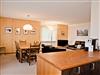 The cosy 70m2 3.5-room apartment on the 1st floor has a bedroom with double bed, a bedroom with two single beds and a bathroom with bath and toilet. The apartment has a well-equipped open kitchen and a comfortable dining/living area. From the large balcony you can enjoy views of the mountains.