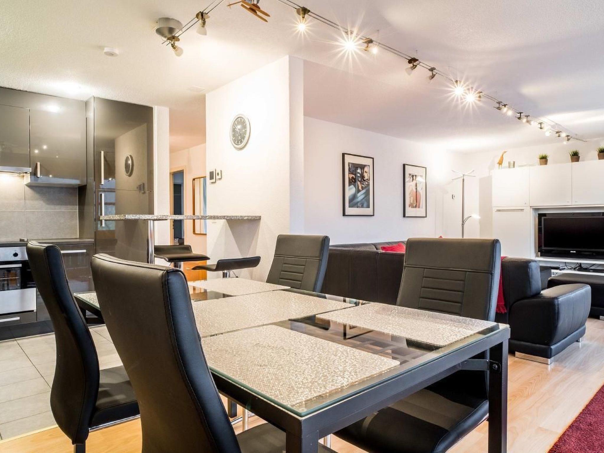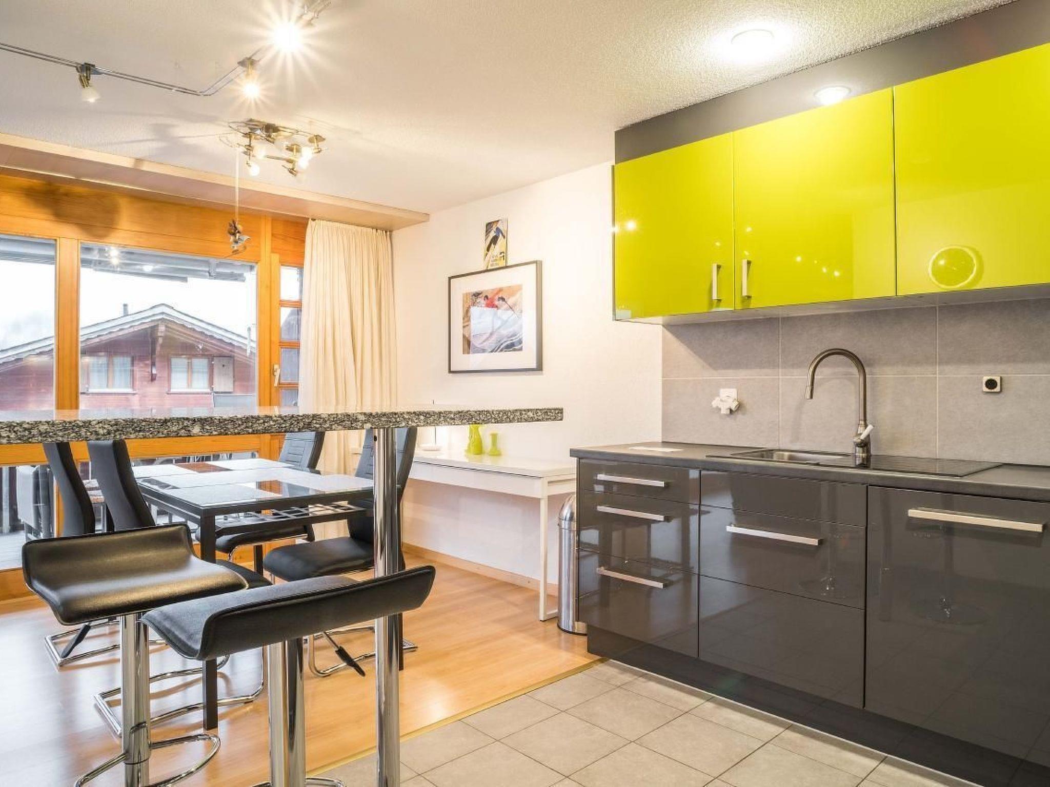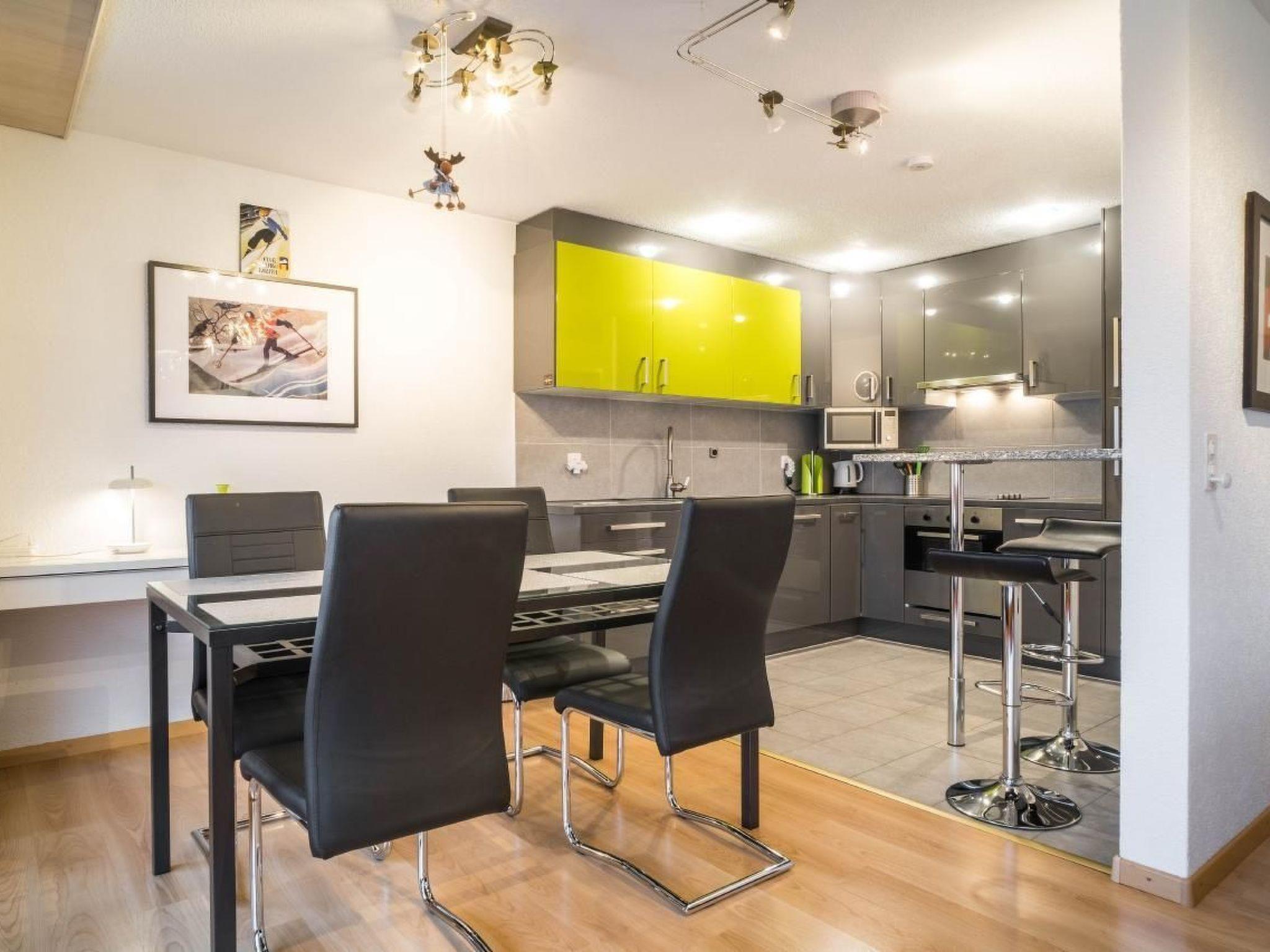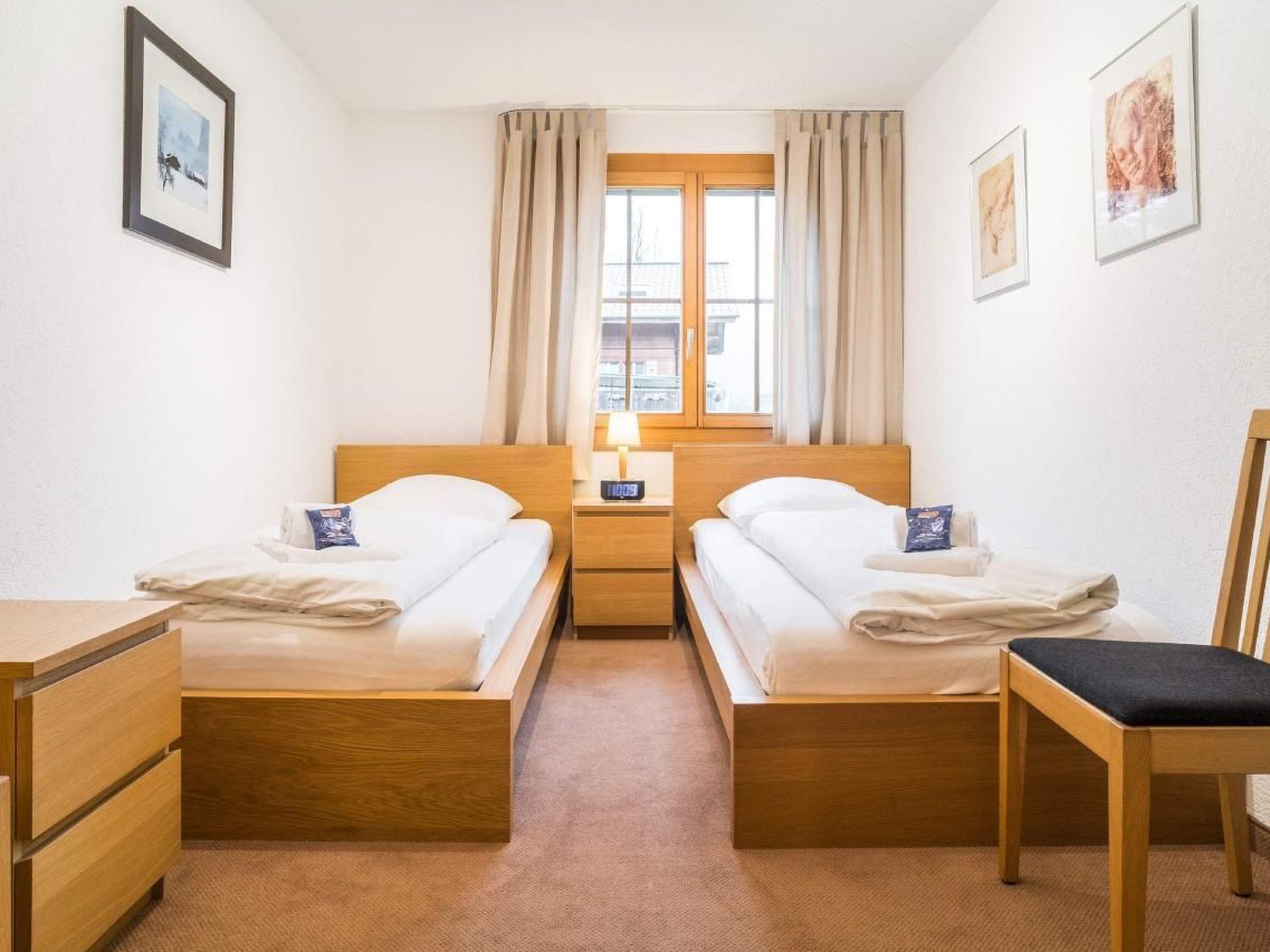 The 90m2 3.5-room apartment on the 2nd floor has a bedroom with double bed, a bedroom with two single beds, a bathroom with shower, toilet and bidet and a bathroom with bath and toilet. The well-equipped kitchen adjacent to the cosy dining/living area. From the balcony you can enjoy the unique mountain panorama.