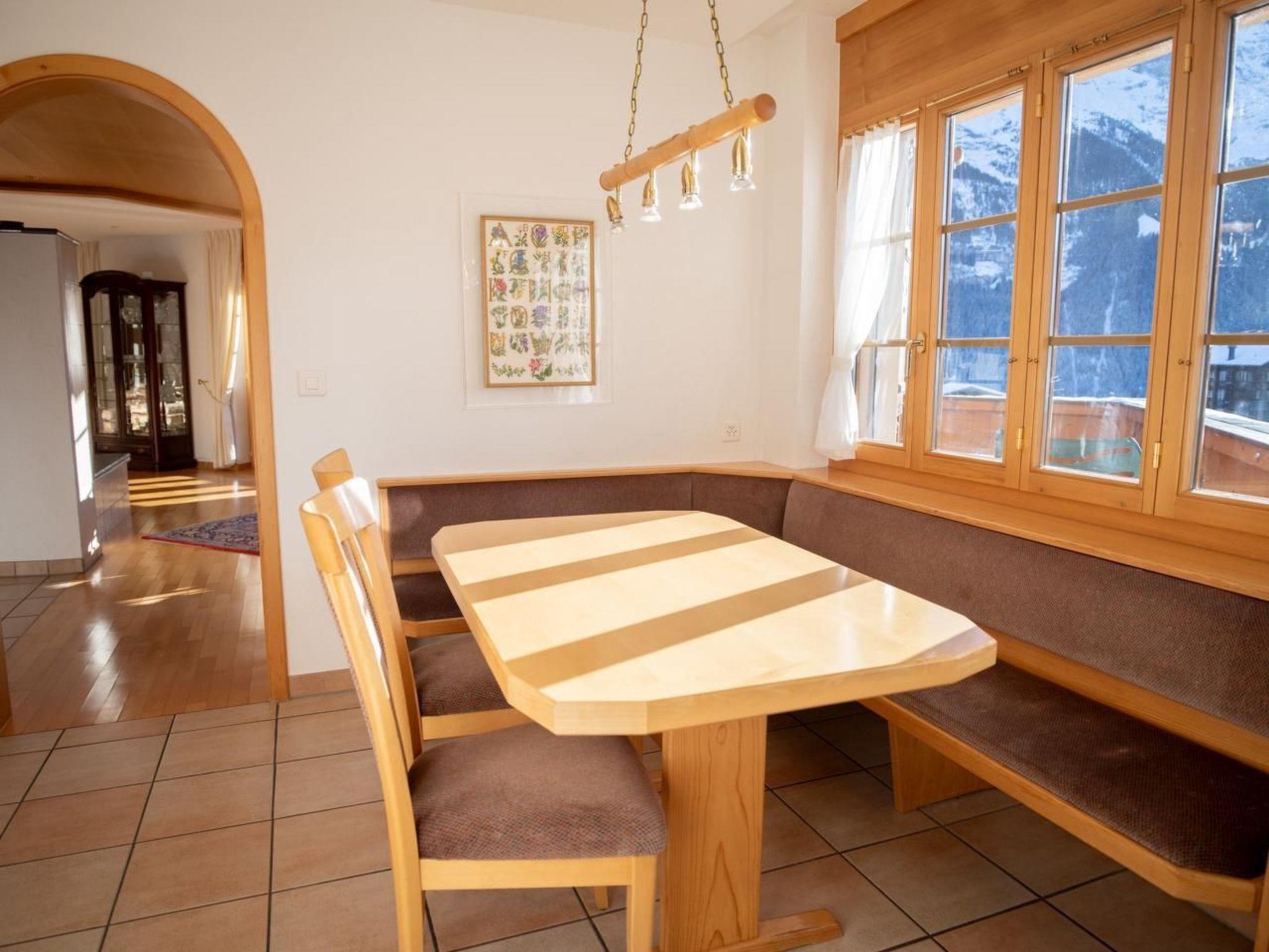 Location description: Idyllic location in Grindelwald - perfect for winter and summer holidays Our accommodation is located in one of the most beautiful areas of Grindelwald, in a quiet and sunny location at Kirchbühlstrasse 16. Here you can enjoy a wonderful panoramic view of the surrounding mountains, including the majestic north face of the Eiger. Distances and activities: Ski lifts: The Firstbahn is only about 900 metres away and can be easily reached on foot or by ski bus. The Bodmi ski area for beginners and children is also in the immediate vicinity. Hiking trails and nature: Numerous hiking and walking trails start right on the doorstep, inviting you to explore the breathtaking alpine landscape. Village centre: The charming centre of Grindelwald with restaurants, cafés, shops and the train station can be reached in about 15 minutes on foot.