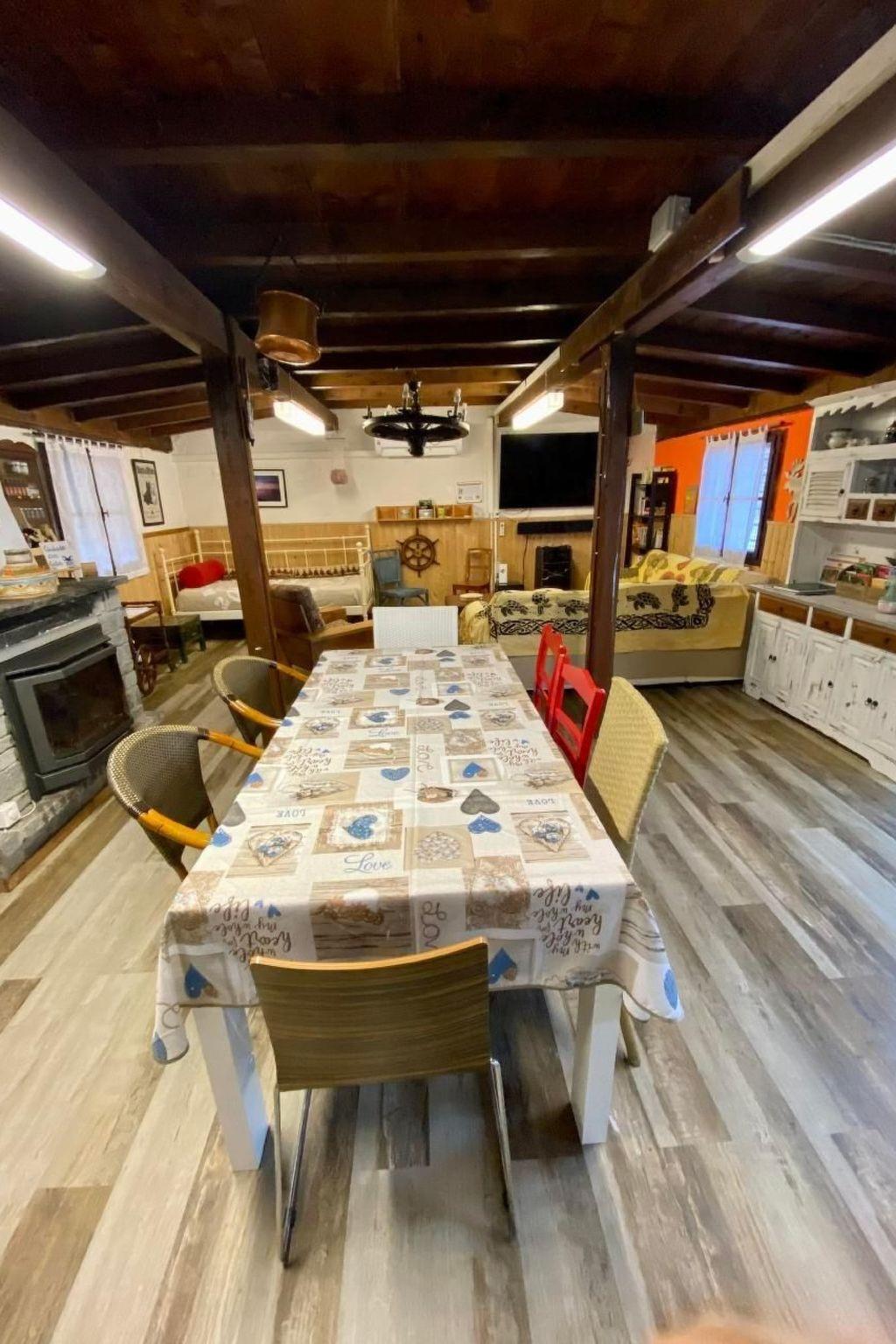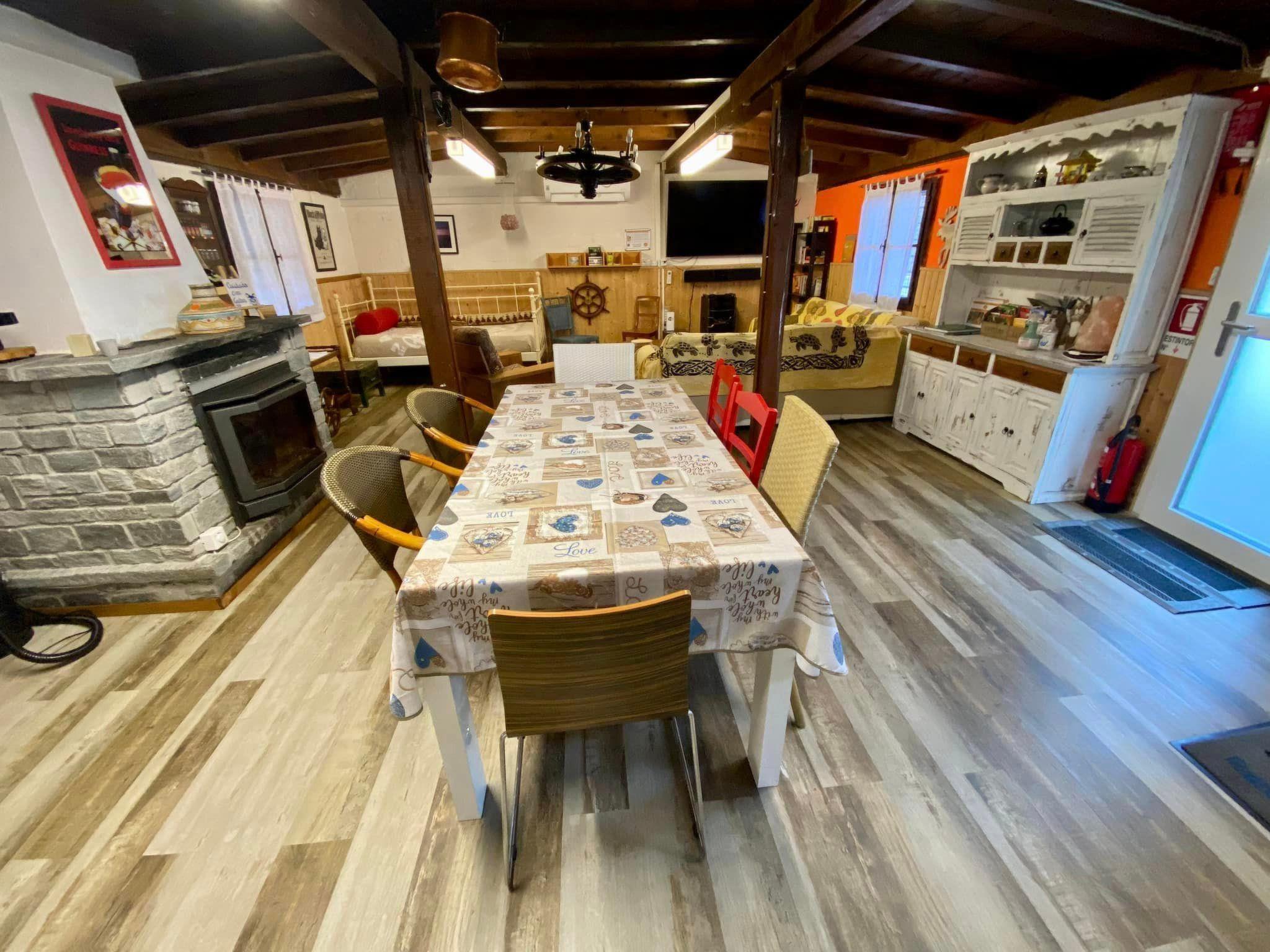 Inside, the dwelling has spacious, welcoming and functional rooms. The living room, with a large room equipped with a coffee table, armchair, study and sofa, a bookcase with books in various languages and board games, invites you to relax. Next to the fireplace, one can enjoy a corner dedicated to 'Ke Sapori' products from southern Italy, available for purchase. The bedrooms offer rustic comfort with a double bed and two single beds, LCD TV with Blu-ray player and films in various languages, and dedicated space for your personal belongings. The open-plan kitchen is fully equipped with a large table, sideboard, crockery, pots and pans, and modern appliances such as a Moka and Nespresso coffee machine, toaster and microwave.
