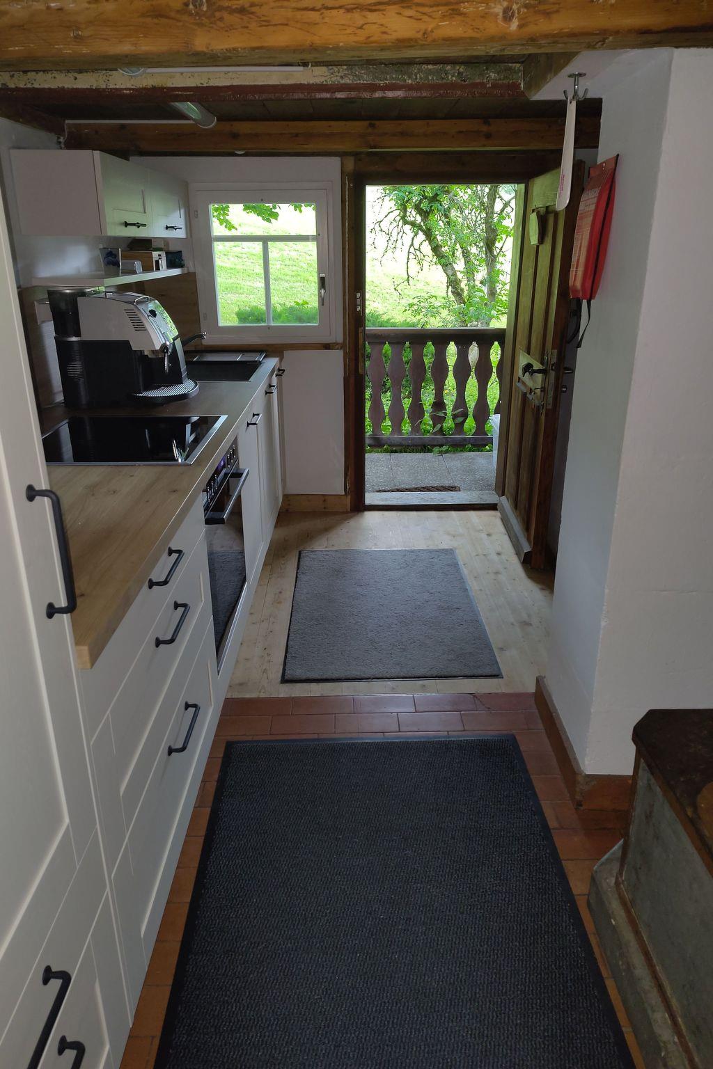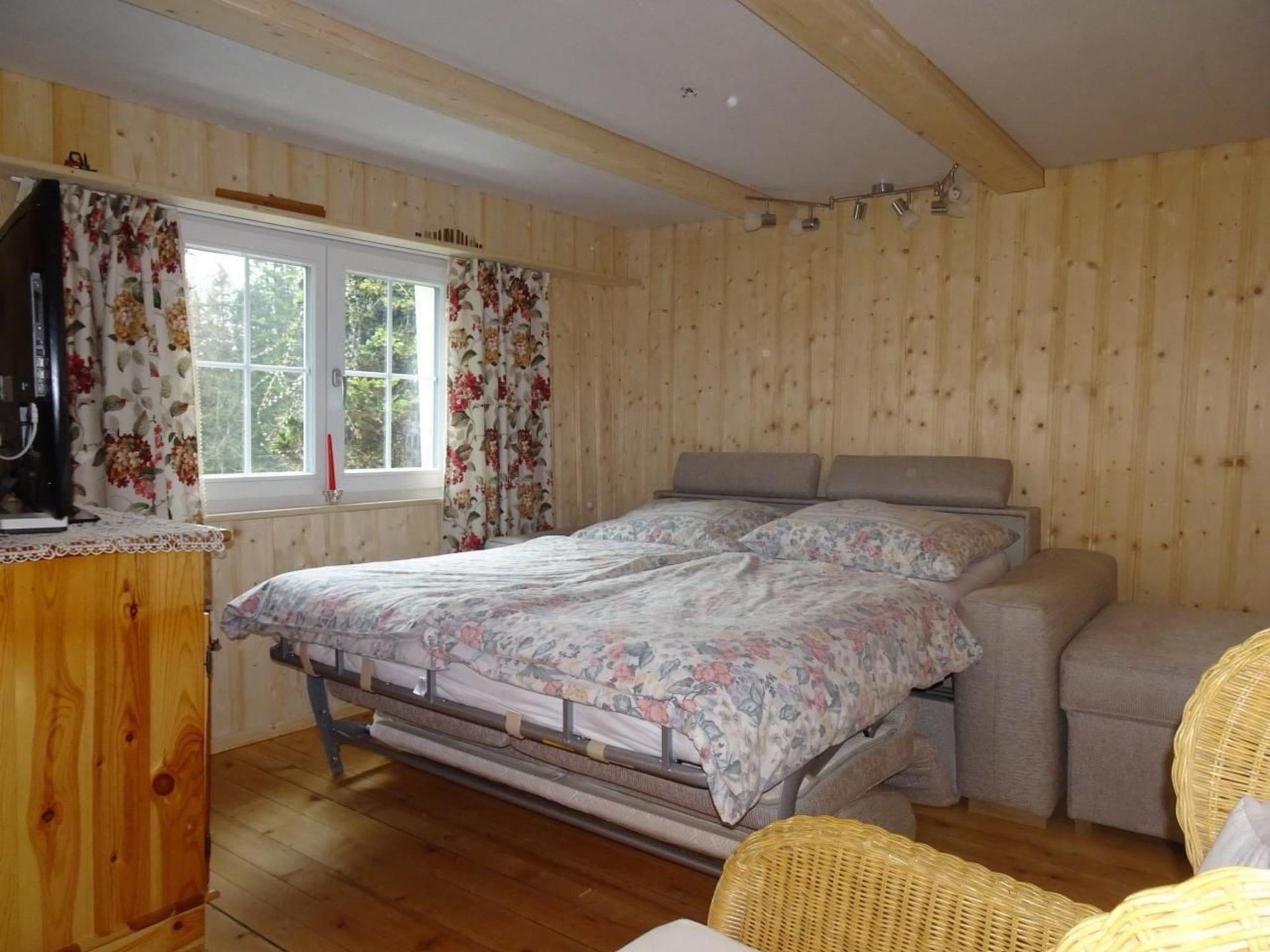 You can expect a typical Appenzell wooden house with low ceilings, which is about 300 years old. It is in a secluded location (2 other houses in the immediate neighbourhood). The house is surrounded by meadows, woods and hills. The Hüsli is about 10 minutes by car from Rohrschach and Heiden. St. Gallen is about 20 minutes away by car. To Säntis approx. 1 hour by car. The path (a private road) past the house leads to Heiden on one side (approx. 20-30 minutes' walk) and to Rohrschach on the other (approx. 40-50 minutes' walk). A station of the "Heidenbähnli" in Schwendi can be reached in about 15 minutes on foot. From there you can get to Heiden or Rohrschach. In the Hüsli there is a double bed, two single beds and a sofa bed for 2 people. A travel cot can be provided. The house is fully furnished. Heating is provided in the basement with a tiled stove and an additional cooker. The living rooms and bathroom can be heated electrically if required. There is a barbecue, table, chairs and parasol in the garden.