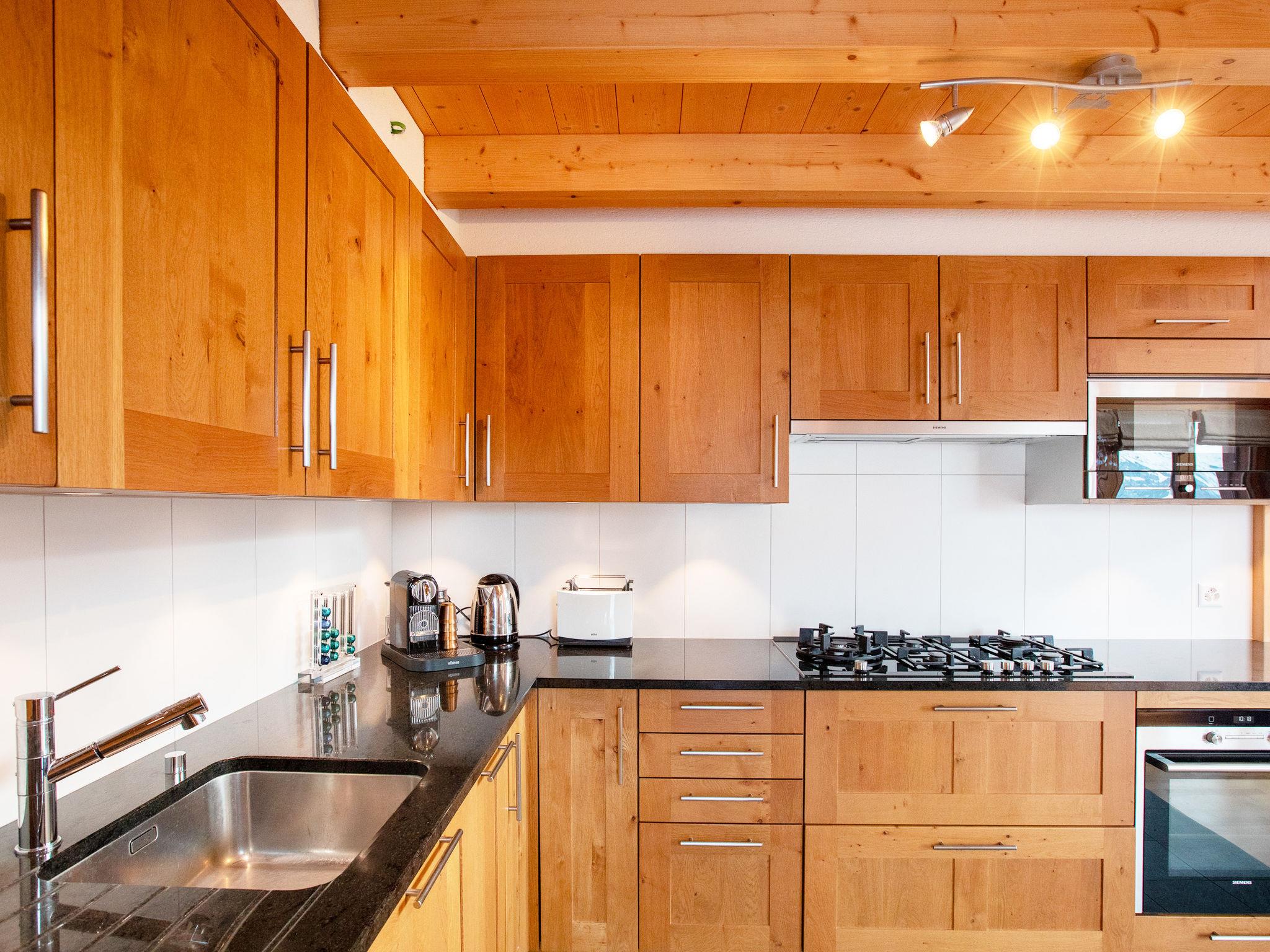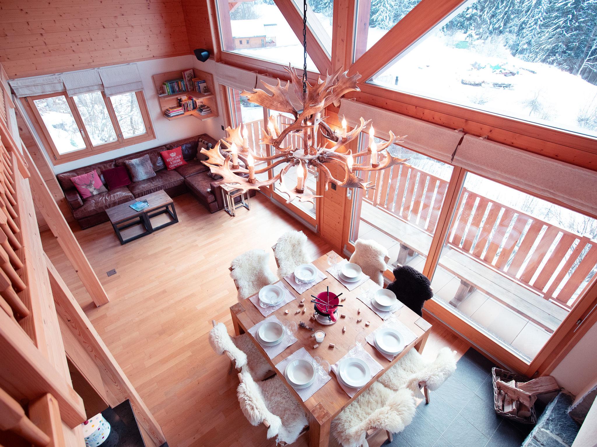 "Chalet Les Pars", 5-room chalet 170 m2 on 3 levels, south facing position. Object suitable for 7 adults + 1 child. Beautiful and modern furnishings: living/dining room with open-hearth fireplace and dining table. Exit to the balcony, to the terrace, south facing position and east facing position. Open kitchen (oven, dishwasher, Gas stove, 5 gas rings, toaster, kettle, microwave, freezer, electric coffee machine, Capsules for coffee machine (Nespresso) extra, raclette grill, fondue Set (cheese)). Exit to the balcony, south facing position. Shower/WC. On the lower ground floor: 1 room with Dressing room with 1 french bed (1 x 180 cm), bath/WC and double hand-basin. Exit to the balcony. 1 room, without wardrobe with 1 french bed (1 x 180 cm). Exit to the balcony. 1 room with 2 beds (90 cm). Exit to the balcony. 1 children's room, without wardrobe with 2 beds (90 cm, length 180 cm). Bath/shower/WC, double hand-basin. Upper floor: open lounge with sloping ceilings with TV (flat screen). Balcony, east facing position, large terrace, south facing position and, east facing position, garden. Terrace furniture. Beautiful view of the mountains. Facilities: washing machine, dryer, hair dryer. Internet (WiFi, free). Parking (2 cars). Please note: non-smokers only.