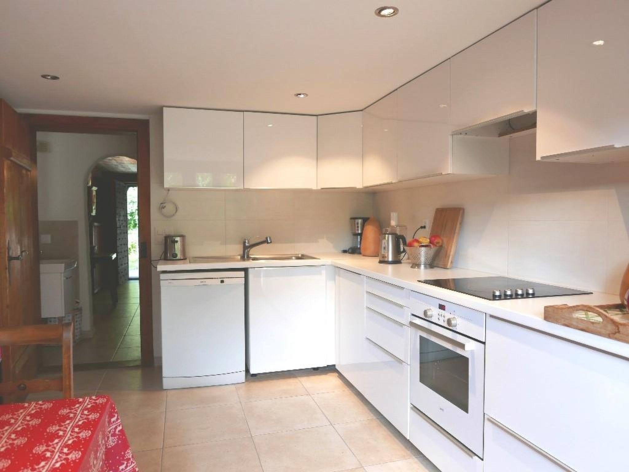 Raised ground floor (entrance): Spacious and bright living-/dining room with wooden table, corner sofa, chimney, TV (flat screen), DVD player and radio. Kitchen among other things furnished with dishwasher, coffee machine with capsules (Nespresso), filter coffee machine, fondue- and raclette-set, toaster and a variety of other kitchen equipment as well as a little wooden table and access to the terrace. Separate toilet. 1st floor: 1 bedroom with 2 pushed-together single beds (2x90x200cm). 1 bedroom with grand-lit (160x200cm). 2 bedrooms each with 1 single bed (1x90x200cm, 1x90x190cm). 1 bathroom with bathtub/toilet. 1 bathroom with shower (without toilet). 1 separate toilet. 2nd floor: 1 bedrooms with a double bed (2x90x200cm). 1 small bedroom with 2 pushed-together single beds (2x90x200cm). 1 bedroom mit 1 single bed (90x190cm). 1 bathroom with shower/toilet. WiFi. Baby cot (60x120cm) excl. bed linen and highchair available.