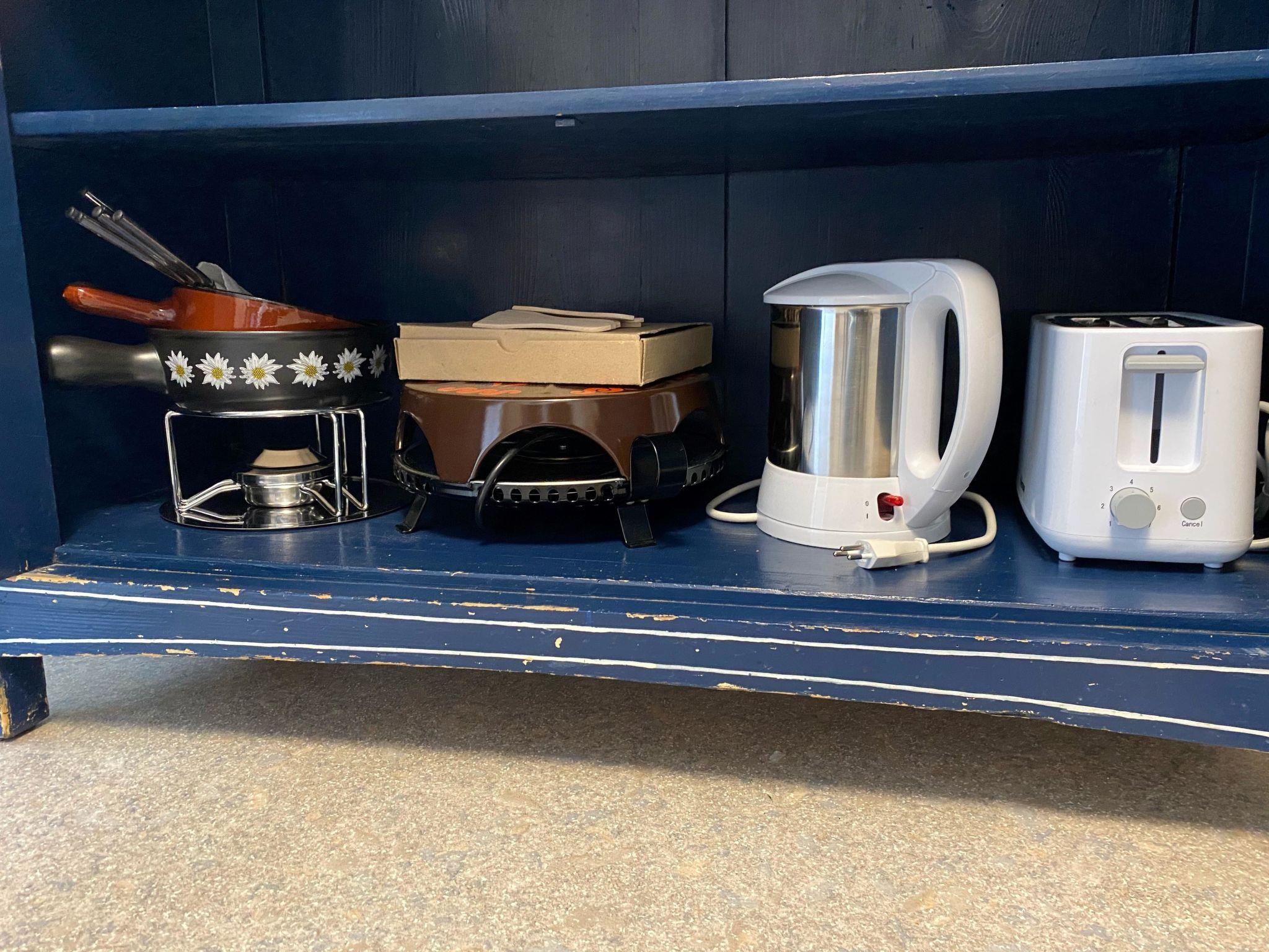 The holiday home has: Parking, WLAN, TV, Nespresso coffee machine, microwave, raclette oven & fondue set & much more.
