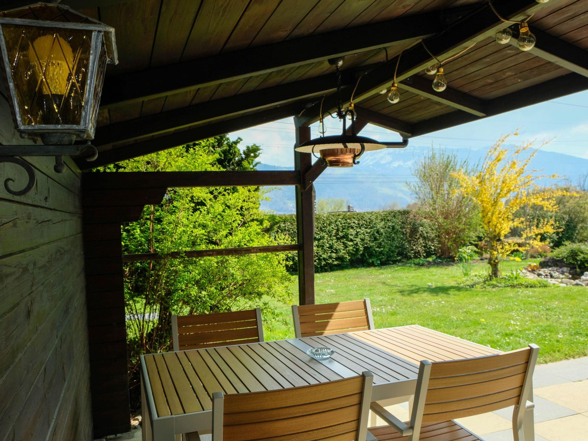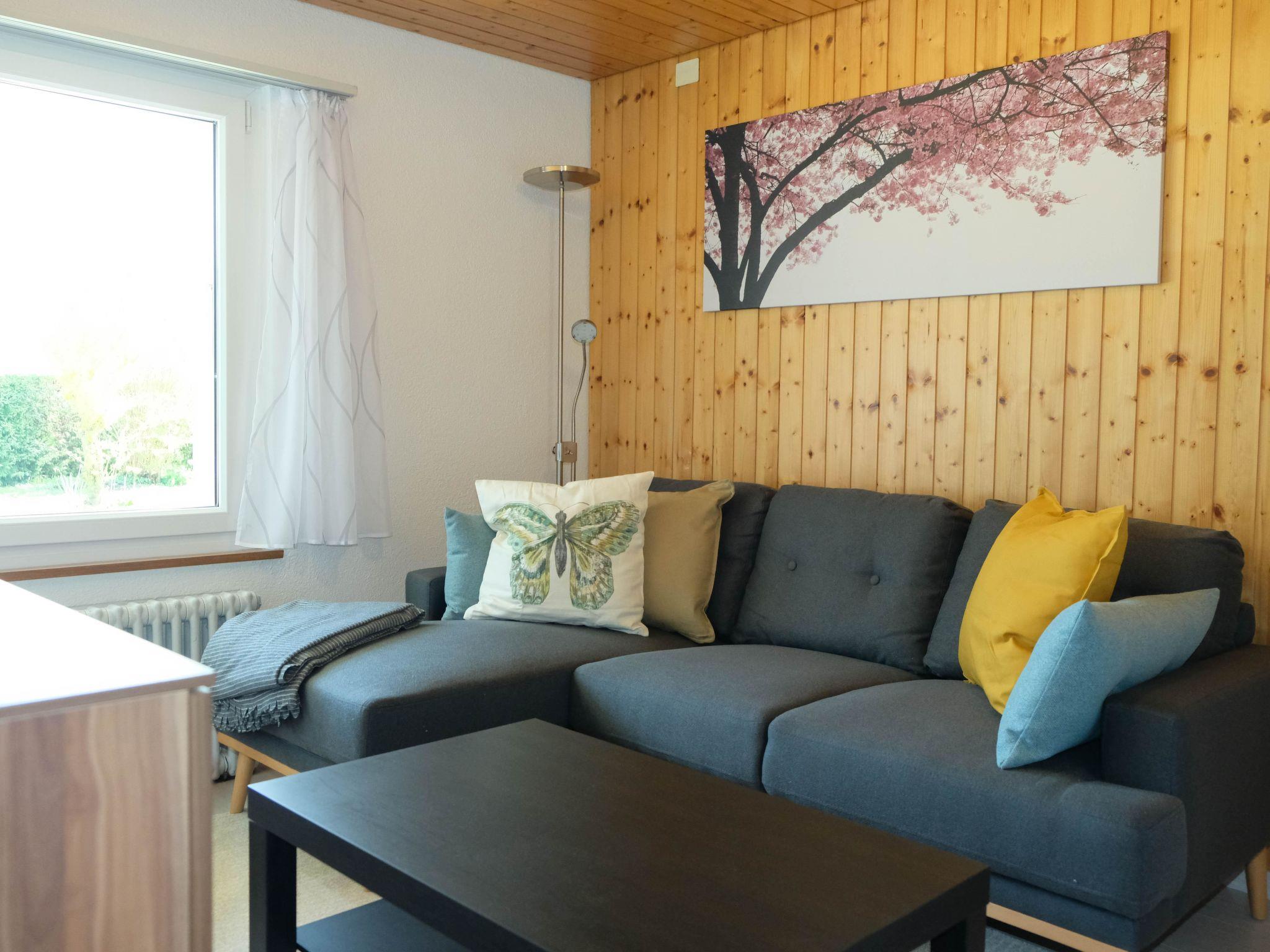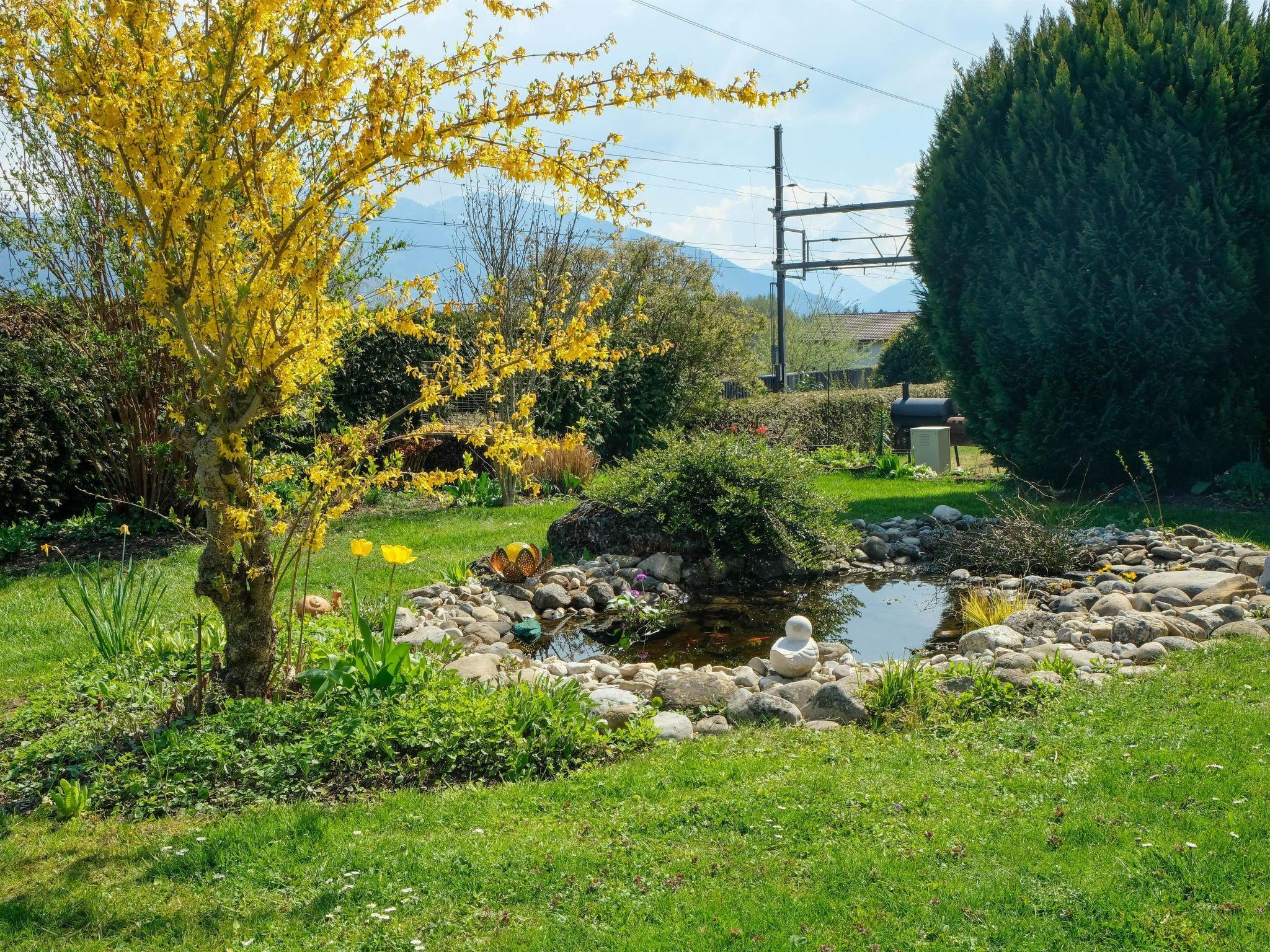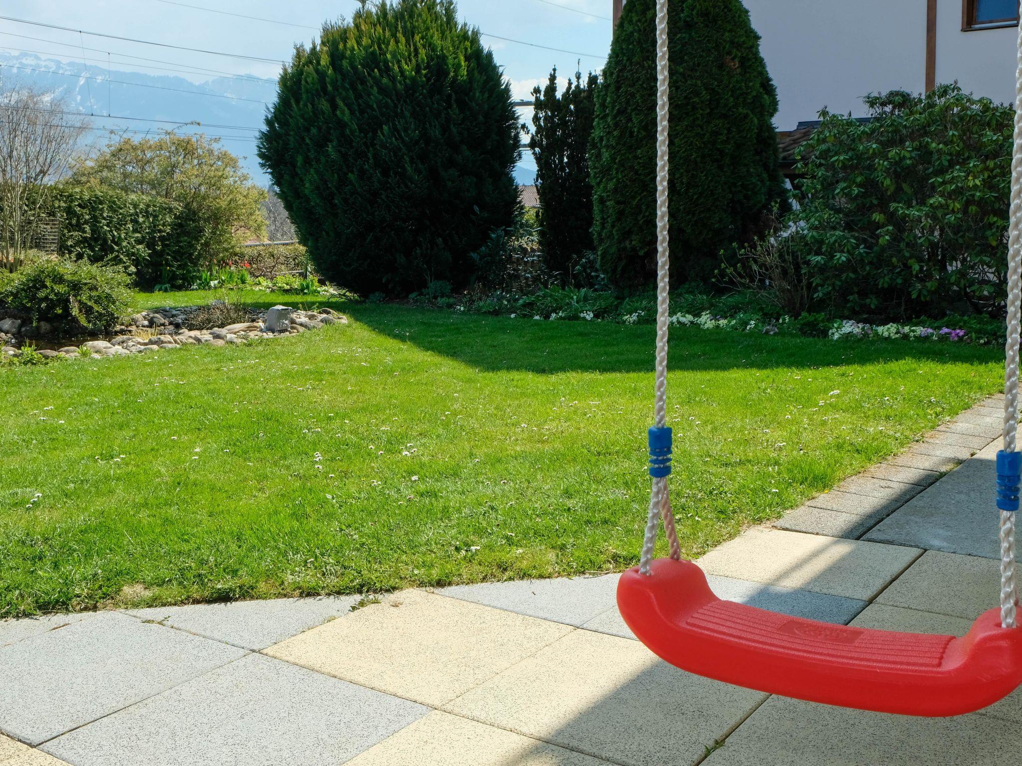 41 m2. More information by the provider: Beautifully furnished 2 1/2 room flat with kitchen/living room, shower/WC, bedroom with double bed and living room with 2 bunk beds, sofa & TV. Outside area with pergola, garden, children's swing & view of the mountains. The holiday flat Luna is suitable for families & playing children. The deep blue Lake Thun beckons you to dive in just a few minutes' walk away. Note: The accommodation is located in the immediate vicinity of the railway line.