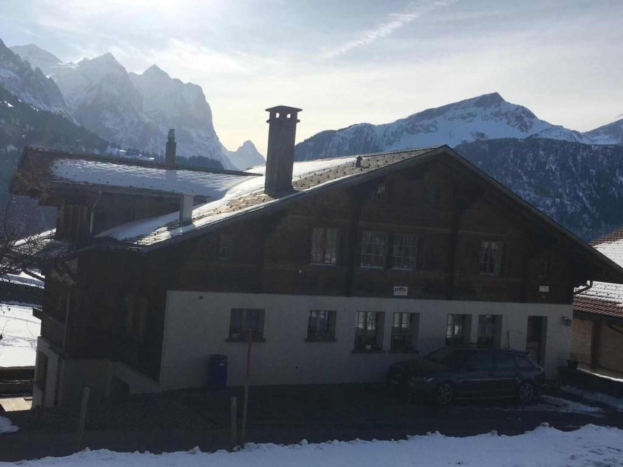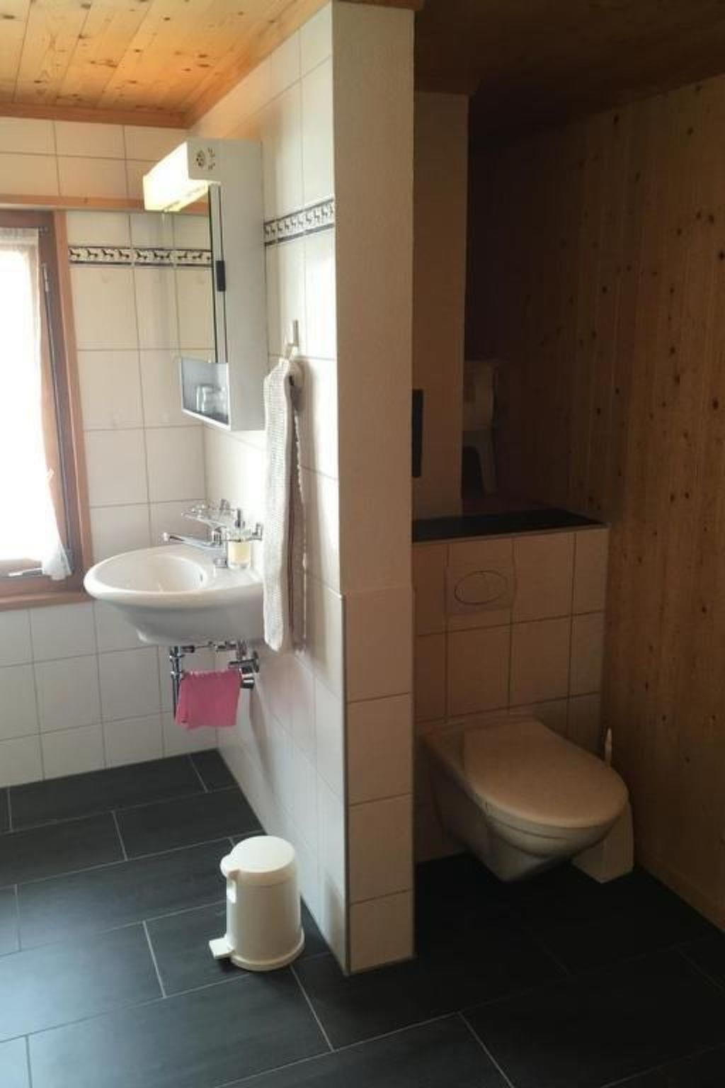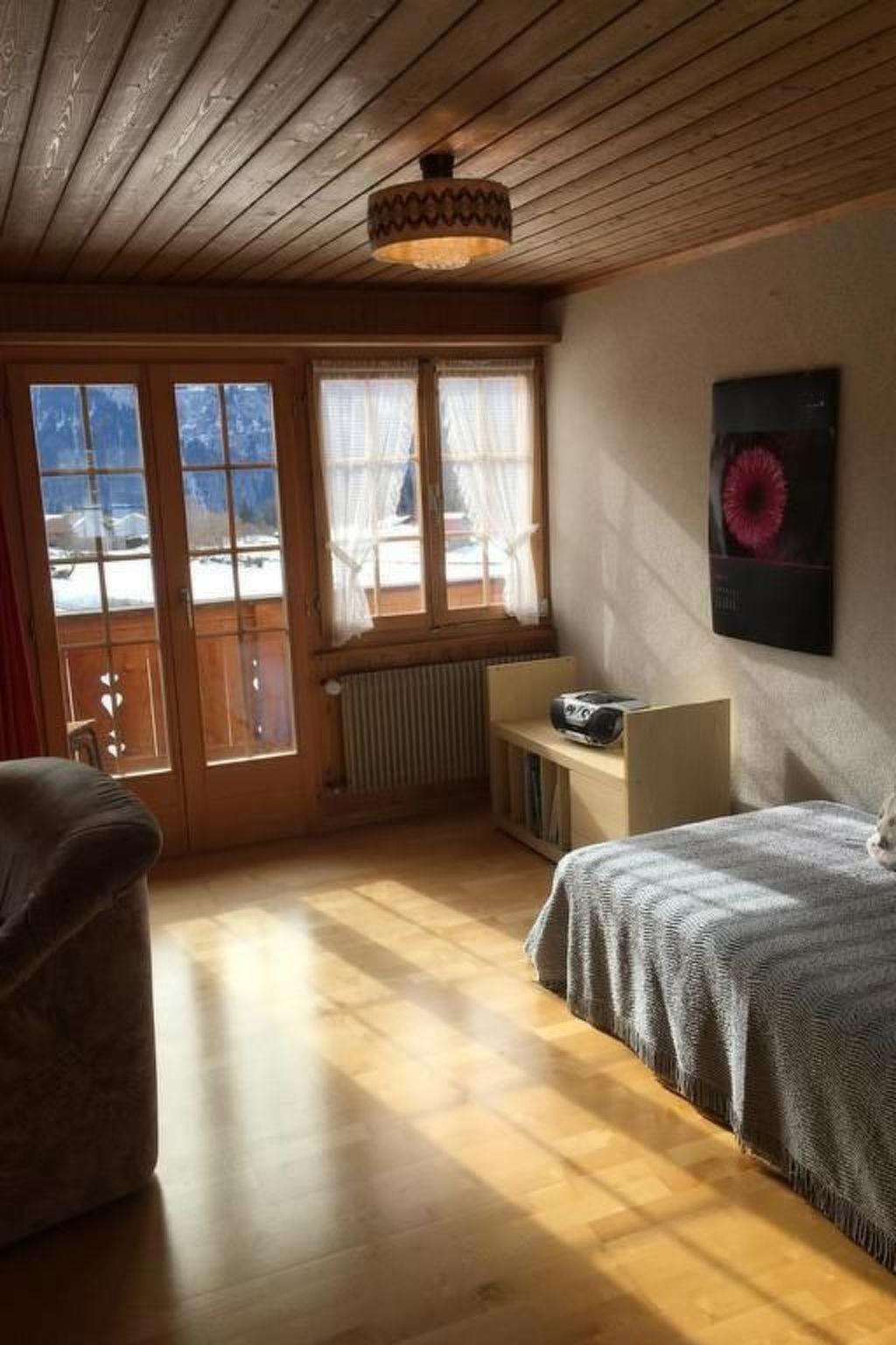 Spacious, partially renovated 3 1/2-room apartment on the 1st floor of our three-family chalet (built 1972/ apartment partially renovated 2003) in a central location with beautiful views of the mountains. The apartment has a bright, spacious kitchen with dining table, electric hob and oven are new; a friendly living room with upholstery, a bed (when occupied by 5 people), Swisscom TV; two bedrooms with 2 beds each and a cupboard each; a bathroom with shower in the bathtub, washbasin and toilet; balcony; garden seating area for sharing with grill, table tennis table and sandbox; as well as a parking lot next to the house. There is a public playground for children in the immediate vicinity. (total living space approx. 80m2). The landlord lives in the same house and is usually personally reachable.