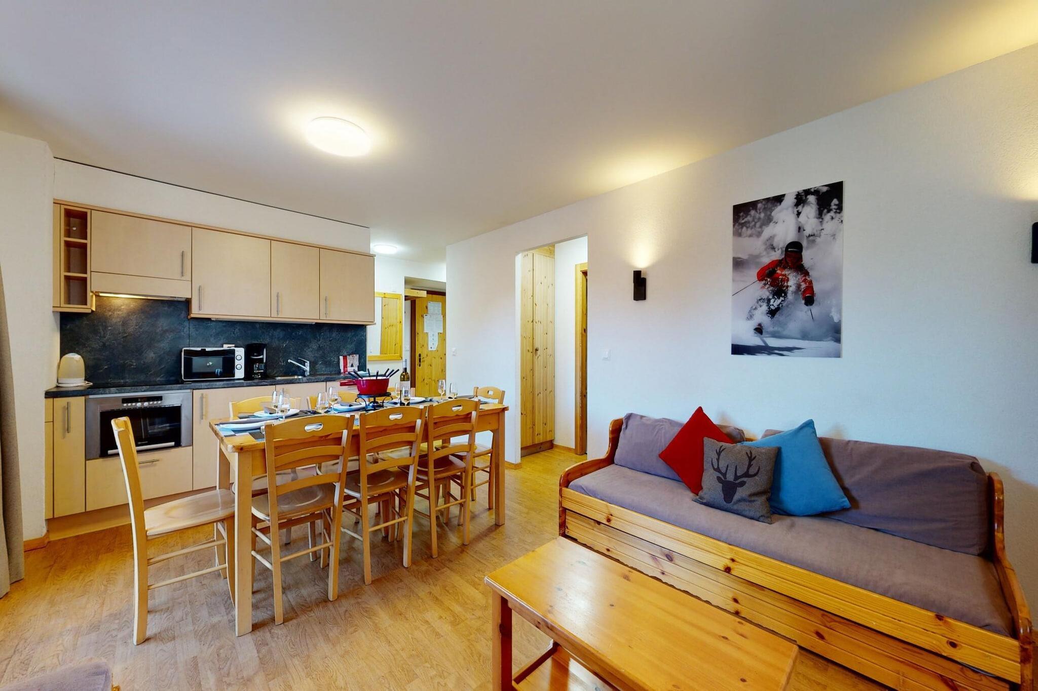 Oplev denne hyggelige 54 m² store lejlighed i hjertet af Nendaz, beliggende i den smukke 4 Vallées-region i Schweiz. Perfekt til familier eller grupper på op til 8 gæster, lejligheden tilbyder en varm stue med balkon med en fantastisk udsigt over dalen, fladskærms-kabel-tv og gratis trådløs internetadgang. Det åbne køkken er fuldt udstyret med moderne apparater, herunder køleskab, mikroovn, opvaskemaskine og kaffemaskine, hvilket gør tilberedning af måltider let og behageligt. Lejligheden har to soveværelser med hver to enkeltsenge, en korridor med en køjeseng og en stuesovesofa for komfortabelt at rumme alle. Der er to badeværelser: det ene med badekar og toilet, og det andet med bruser og toilet. Yderligere bekvemmeligheder omfatter spiseplads, balkon, adgang til sauna (mod ekstra gebyr) og fælles vaskeri og skirum i bygningen. En udendørs parkeringsplads er tilgængelig, og kæledyr er velkomne. Beliggende i Pracondu-residensen, tilbyder dette moderne kompleks bekvemmelighed for ski-in/ski-out kun 100 meter fra svævebanen og pisterne. I nærheden kan gæsterne nyde Spa des Bisses (200 m) og lokale butikker (300 m). Der opkræves en turistskat og depositum, mens gæsterne kan drage fordel af eksklusive Alpvision-rabatter på leje af udstyr, skiundervisning og shopping. Valgfrit ekstraudstyr som sengelinned, rengøring og gourmetkurve tilbydes også for et mere behageligt ophold.
