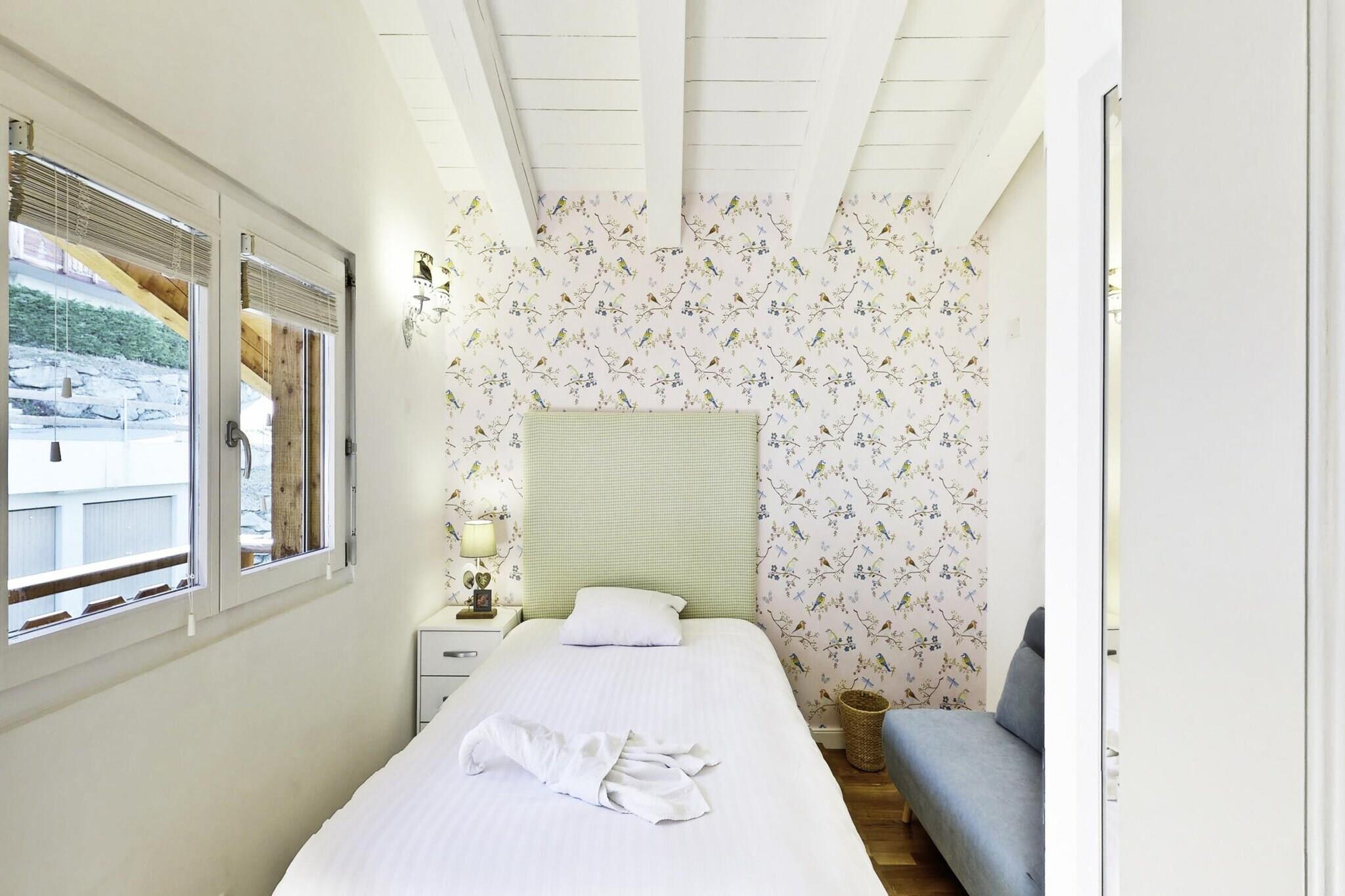 Oplev din perfekte bjergflugt i denne luksuriøse 4-stjernede hytte beliggende i hjertet af de 4 dale. Dette rummelige feriested på 250 m² kan rumme op til 12 gæster og kombinerer bæredygtig rejse med en fantastisk udsigt over Rhône-dalen og Berner Alperne. Slap af i den lyse stue, opvarmet af en hyggelig pejs, og nyd underholdning på fladskærms-tv med gratis Wi-Fi. Det moderne åbne køkken er fuldt udstyret med de bedste apparater, herunder køleskab, fryser, opvaskemaskine, ovn, mikroovn og en Nespresso-maskine - ideel til at tilberede måltider efter en dag på pisterne. Hytten ligger kun 2 minutters kørsel fra skiløjperne og tilbyder nem adgang til svævebanen (950 meter) og et gratis shuttle-busstoppested kun 80 meter væk. Nærliggende attraktioner omfatter Spa des Bisses (1,2 km) og lokale butikker (2,2 km). Hytten har fem rummelige soveværelser: to med dobbeltsenge, et med fire enkeltkøjesenge og et femte med en enkeltseng plus en lænestolsseng, sammen med fire moderne badeværelser for at rumme alle komfortabelt. Nyd den friske bjergluft fra balkonen og haven, komplet med en gasgrill til udendørs spisning. Yderligere faciliteter inkluderer et vaskerum med vaskemaskine og tørretumbler, parkering for op til fem køretøjer og en garage med en ladestation for elbiler - hvilket sikrer både bekvemmelighed og komfort under din alpine ferie.