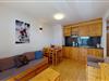 På 4. etage: (Stue(dobbeltsovesofa(80 x 200 cm), Fjernsyn(fladskærm, parabol, digital), spisebord, sofahjørne), åbent køkken(kogeplade(glaskeramisk), elkedel, kaffemaskine, mikrobølgeovn, opvaskemaskine , køle-fryseskab, ()), soveværelse(enkeltseng(90 x 200 cm), enkeltseng(90 x 200 cm)), badeværelse(badekar, håndvask), toilet(toilet)) skiopbevaring, sauna(betalt), vaskemaskine, balkon, varme(central), elevator