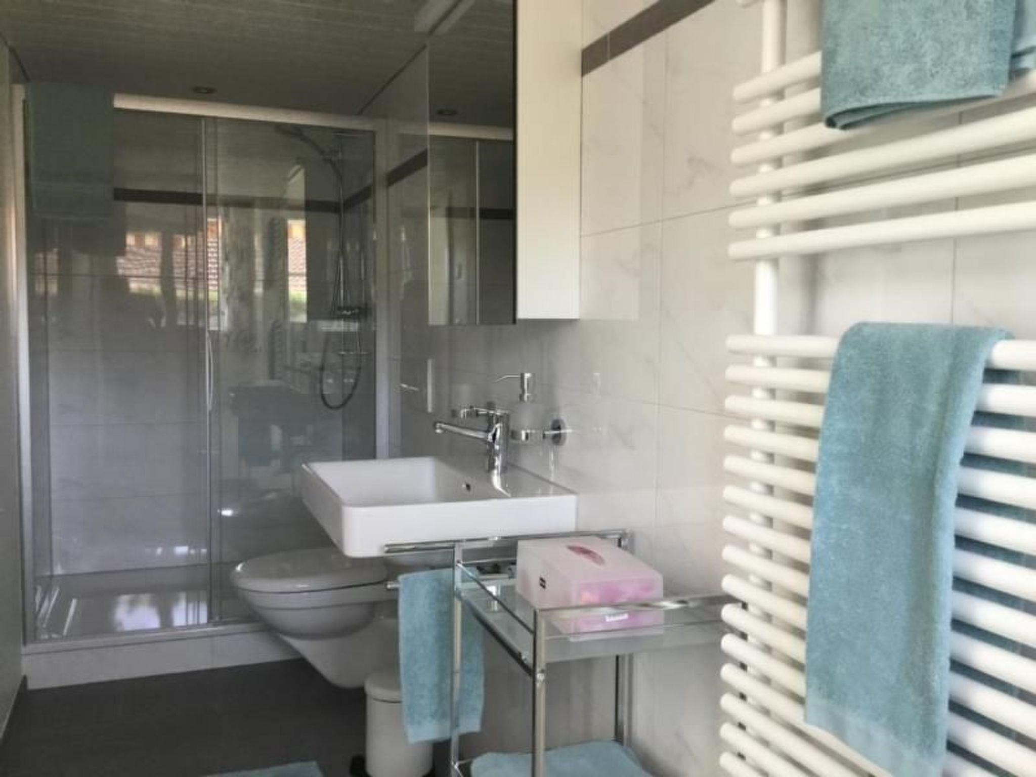 2019 newly renovated and newly furnished, bright holiday flat on the south-western edge of the village of Heiden (2 km from the village centre of Heiden). Postbus stop right on the doorstep (line Heiden- Rehetobel- St.Gallen and line Heiden- Trogen), in the immediate vicinity of the Appenzeller Heilbad Heiden (8 minutes walk/ 600m) and ideal starting point for numerous hikes e.g. viewpoints Kaienspitz, St.Anton and excursions in the surrounding area. Popular, nearby excursion destinations are the Säntispark Abtwil water park, Walter Zoo Gossau, Lake Constance, the Abbey District UNESCO World Heritage City of St.Gallen, etc. The flat (approx. 50m2) is on the ground floor and has its own entrance. In the entrance area there is a cloakroom with a spacious built-in wardrobe. In the separate bedroom there is a double bed (160cm x 200cm) and a wardrobe. The open-plan kitchen/living area is furnished with a pull-out sofa (140cm wide), a dining table with 4 chairs, wall shelf and TV. The functional kitchen with fridge, hob, oven, microwave, Nespresso coffee machine, toaster, kettle and blender is adjacent to the living area. There is a small table and 2 chairs in the kitchen. The bathroom is small but nice, with shower, WC and washbasin (all new in 2019!) and has a window. A washing machine is available. Linen for beds, bathroom and kitchen is available and included. It is possible to store bicycles and skis in one room. There is also a seating area with a small barbecue and a car park in front of the house, and the final cleaning and visitor's tax must be paid on site in cash or by Twint.