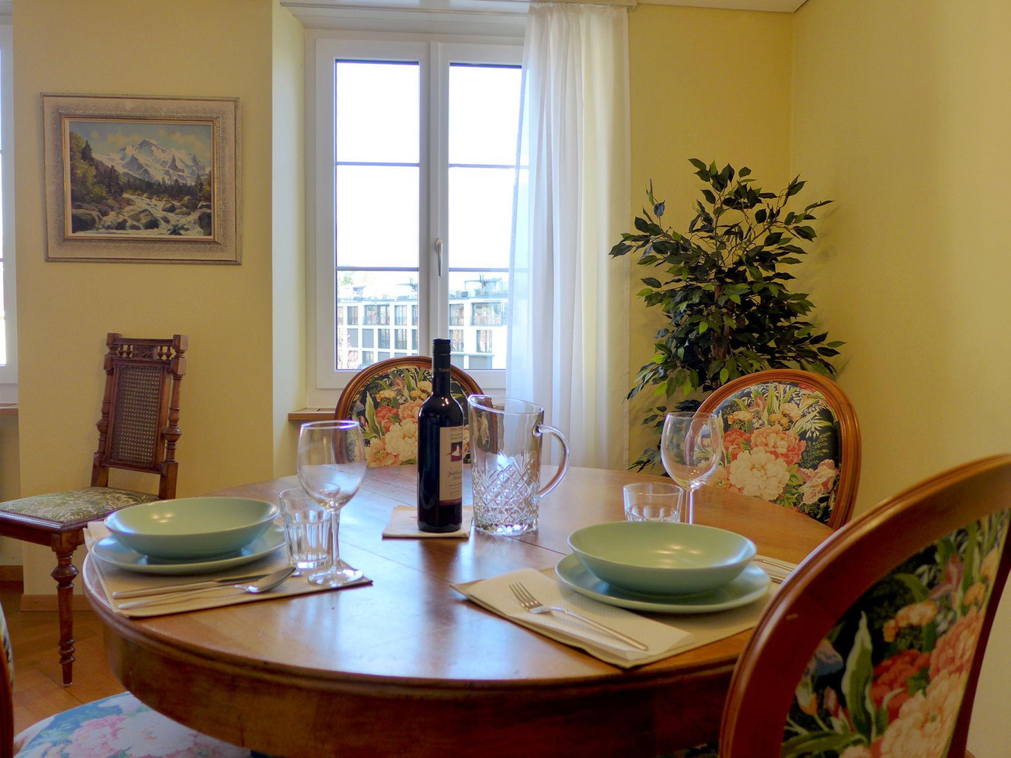 Historical apartment house "Bieri-Haus", 3 storeys. In the centre of Unterseen 500 m from the centre of Interlaken, in a busy, sunny position, in the heart of the city. In the house: central heating system. Shop 500 m, supermarket 350 m, restaurant 100 m, bakery 100 m, bus stop 50 m, railway station "Interlaken West" 700 m, outdoor swimming pool 800 m, indoor swimming pool. Golf course (18 hole) 3 km, tennis 1.1 km, indoor tennis centre 750 m, minigolf 800 m, walking paths from the house 50 m, skisport facilities 15 km, children's playground 150 m. Nearby attractions: Jungfraujoch, Freilichtmuseum Ballenberg, Beatushöhlen. Well-known ski regions can easily be reached: Jungfrau Ski Region. Well-known lakes can easily be reached: Thunersee, Brienzersee.