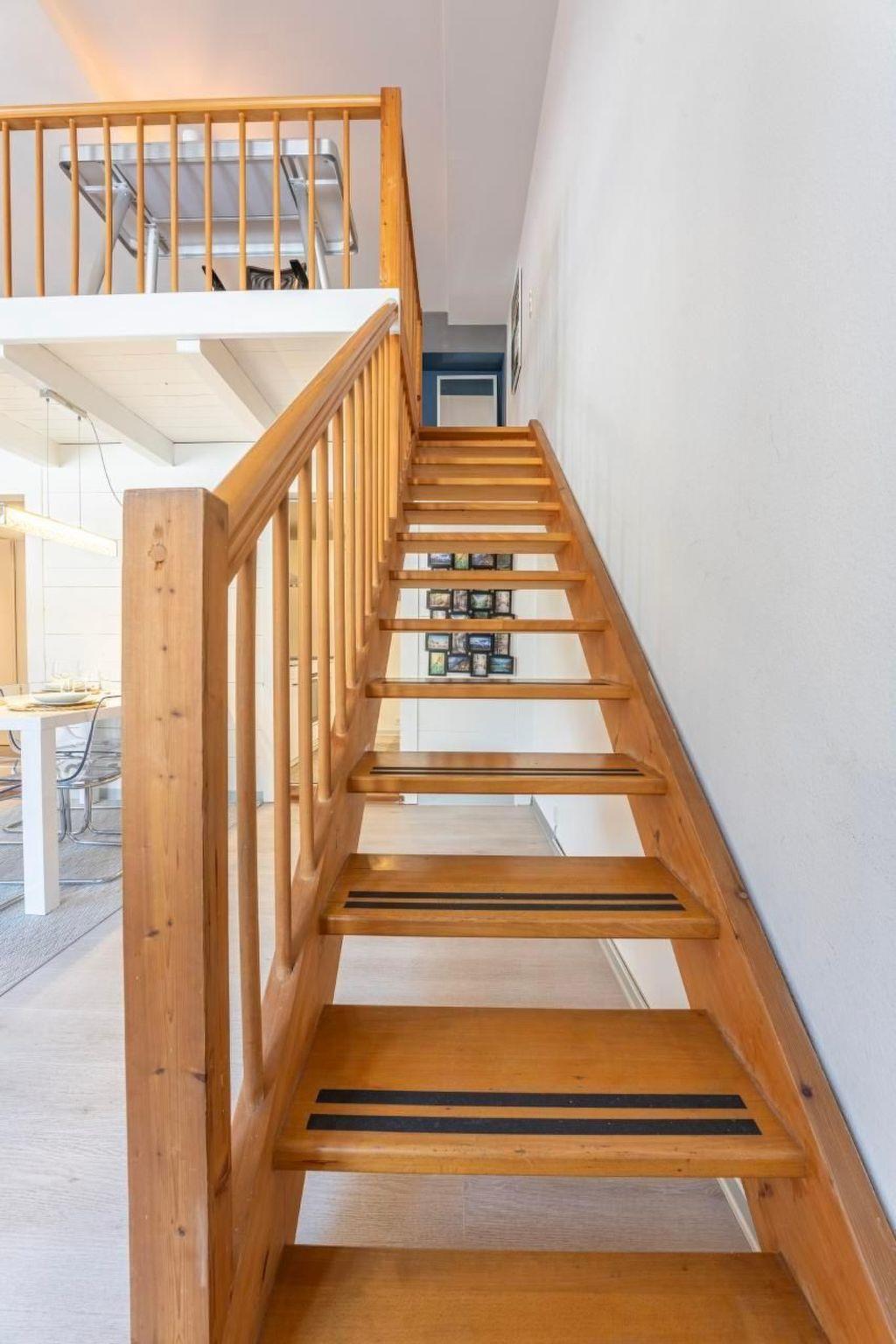 Inside, you will find a spacious living area with an open gallery of 28m² and two comfortable French beds. The tasteful furnishings and appealing room layout create a pleasant atmosphere in which up to four people can live comfortably. Practical amenities such as a kitchen equipped with a 3-ring hob, a coffee machine, an espresso pot and a kettle and a washing machine for communal use in the building make your stay both relaxing and uncomplicated.