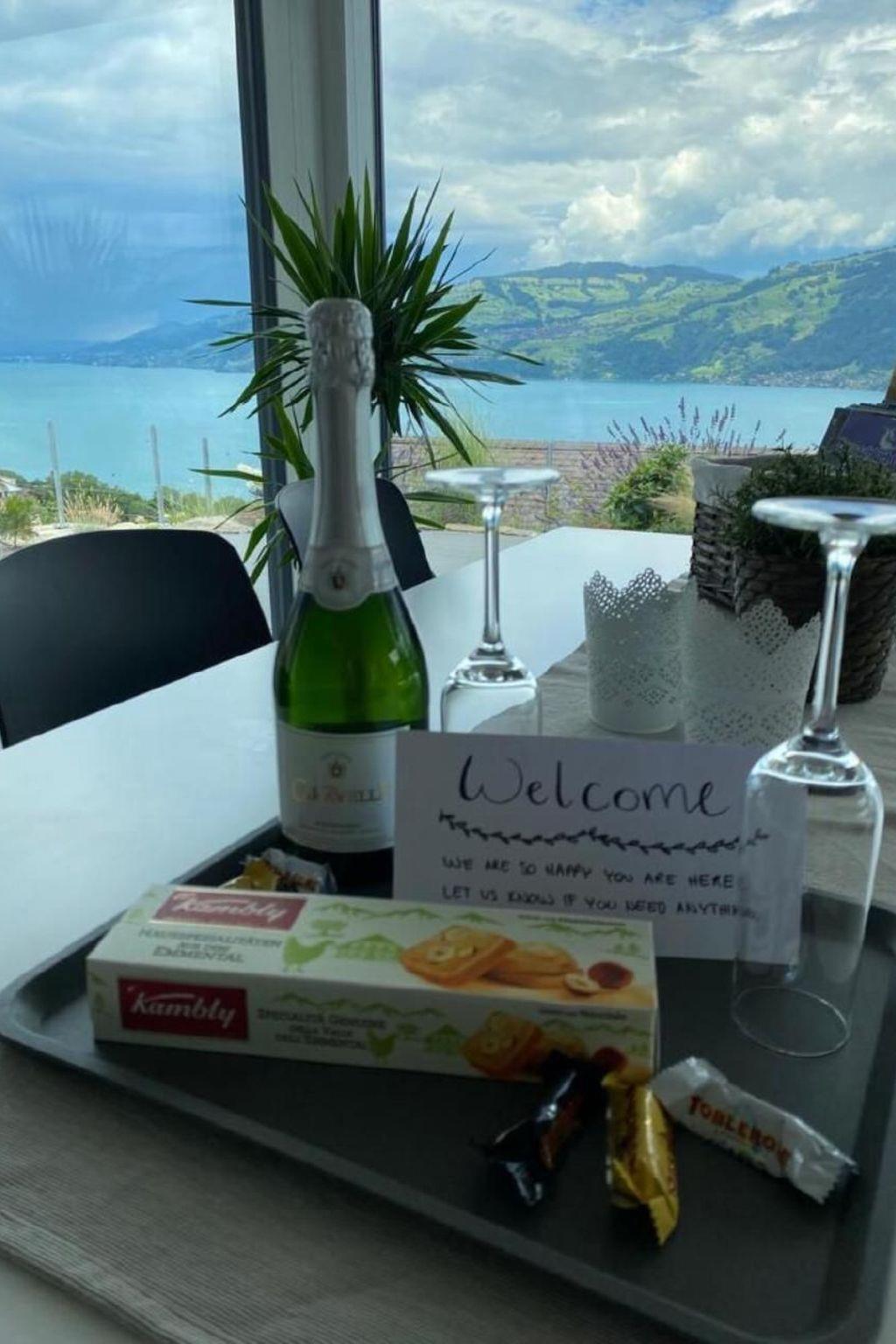This cosy and modern flat with a panoramic view of Lake Thun is located on the ground floor of a newly renovated holiday home.