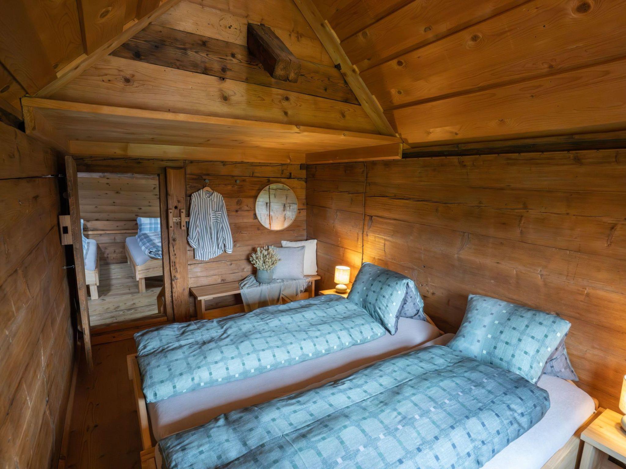 Inside the hut you will find a cosy eat-in kitchen and a cosy living room, which together with a modern bathroom with shower ensure a pleasant level of comfort. Fully furnished and equipped with cooking utensils and crockery, the hut offers everything you need for an unforgettable stay. The wood heating, seven comfortable beds with duvets and three additional mattresses (please bring sleeping bags for the mattresses) promise cosy nights for up to 10 people.