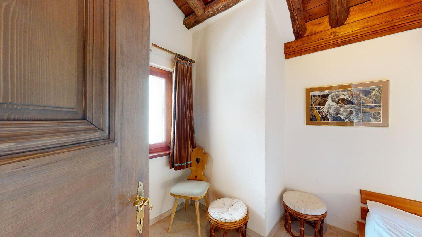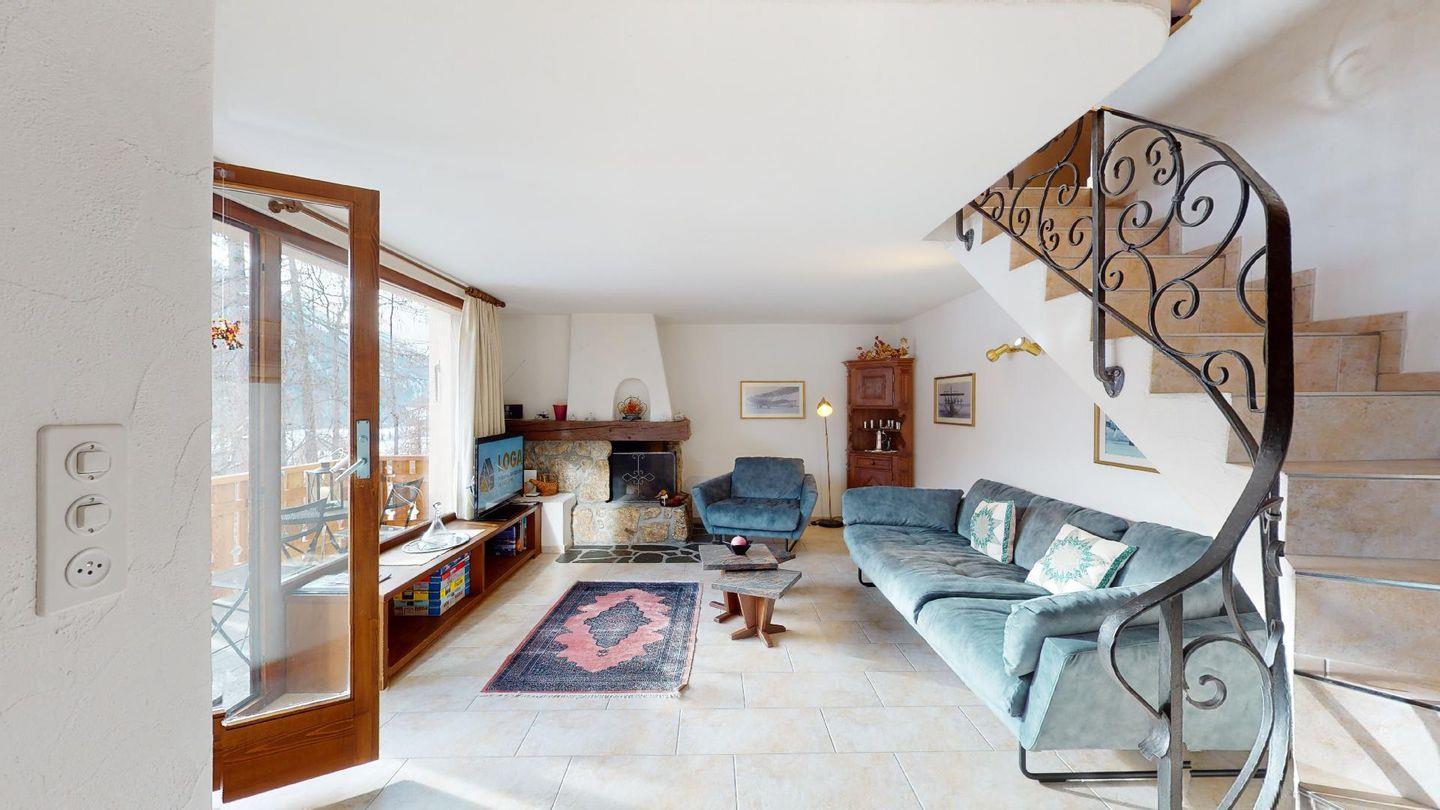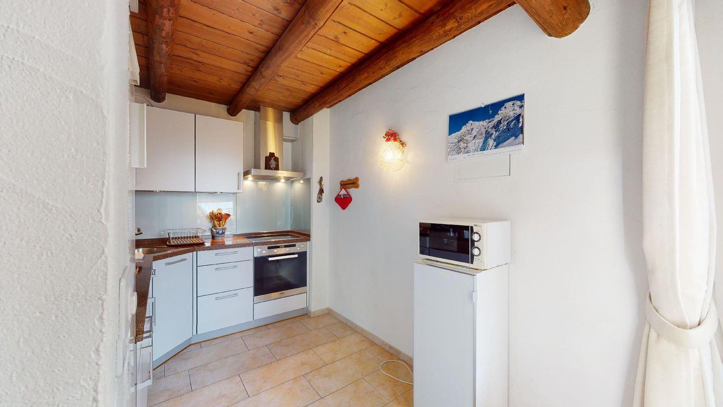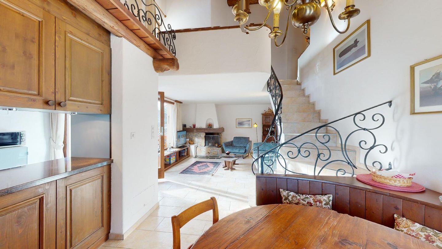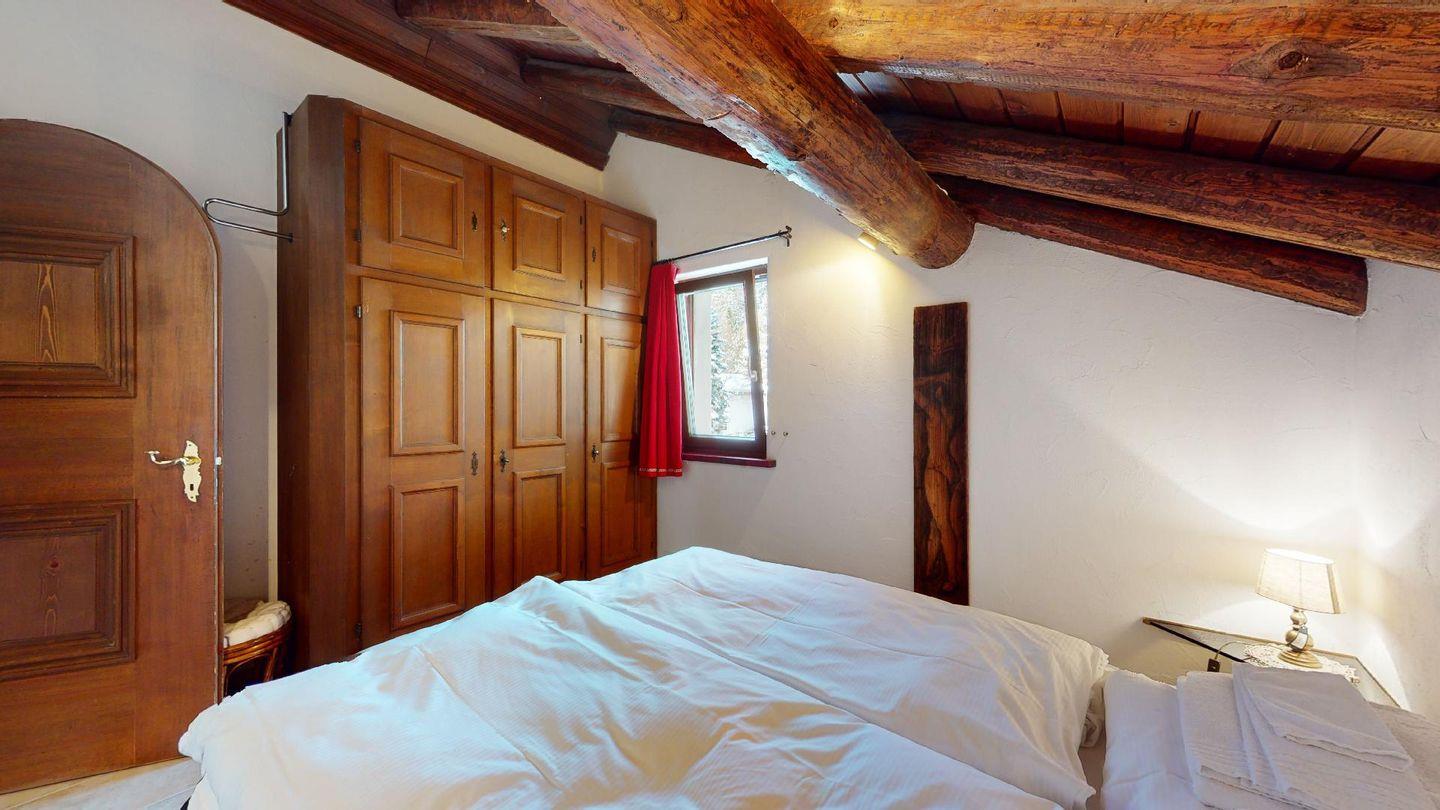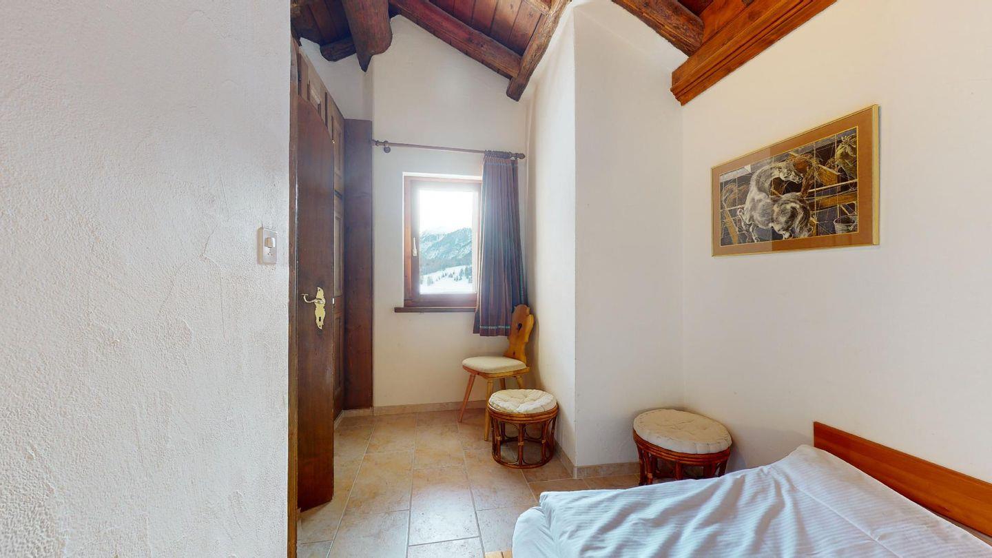 3½-Zimmerwohnung im 3. Stock. Eingang mit Garderobe. Ein Doppelzimmer (1,80m × 2 m) und ein Schlafzimmer mit einem Einzelbett und einem Hochbett (0,90m × 2 m). Zwei Badezimmer mit Wanne, WC und Lavabo. Über die Empore führt eine Treppe zum offenen Wohnzimmer mit TV, Kamin, Essecke und Balkon mit Blick in die Val Chamuera. Halboffene Küche mit Glaskeramikkochfeld mit Dampfabzug, Backofen, Kühlschrank mit Tiefkühlfach, Geschirrspüler. Garagenplatz. Waschküche zur gemeinsamen Benützung. Haustiere sind nicht erlaubt.