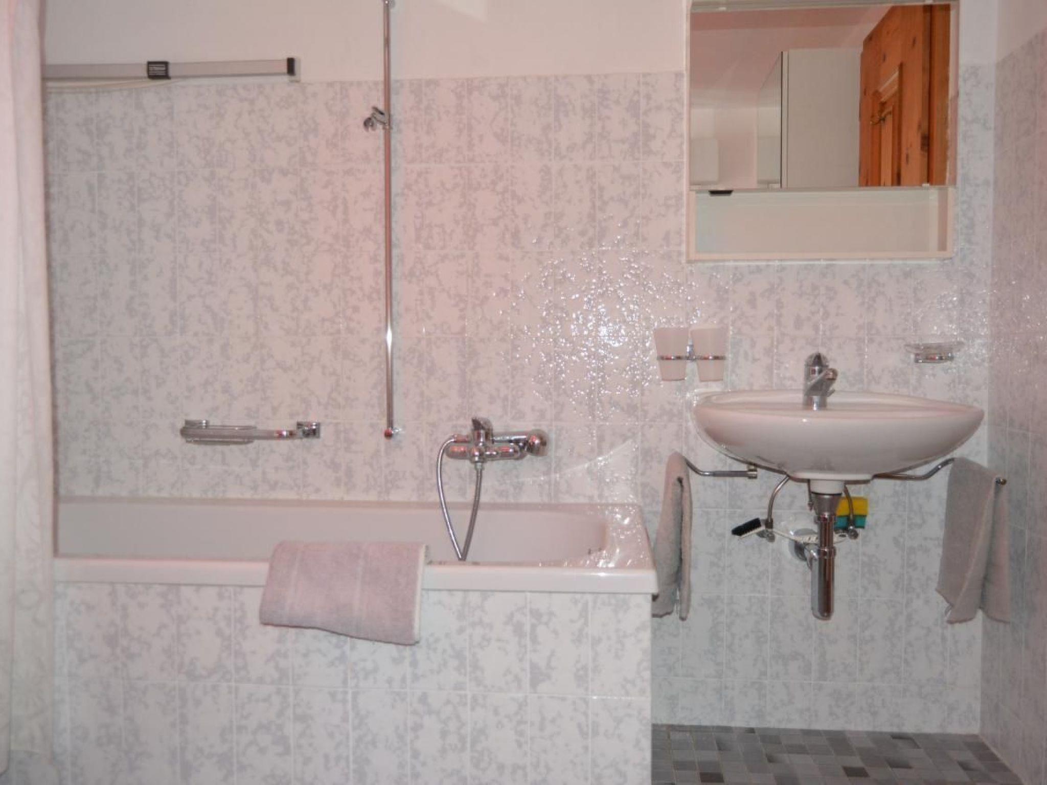 Small bedroom: bunk beds (Nordic), built-in wardrobe. Kitchen with dining area. Bathroom: bathtub with shower, large shelf, WC, mirror. Terrace: seating area with garden furniture. The flat is situated in the village part Chamues-ch, very quiet with cosy surroundings. The flat is very well furnished and suitable for a couple with 2 children up to approx. 12 years.