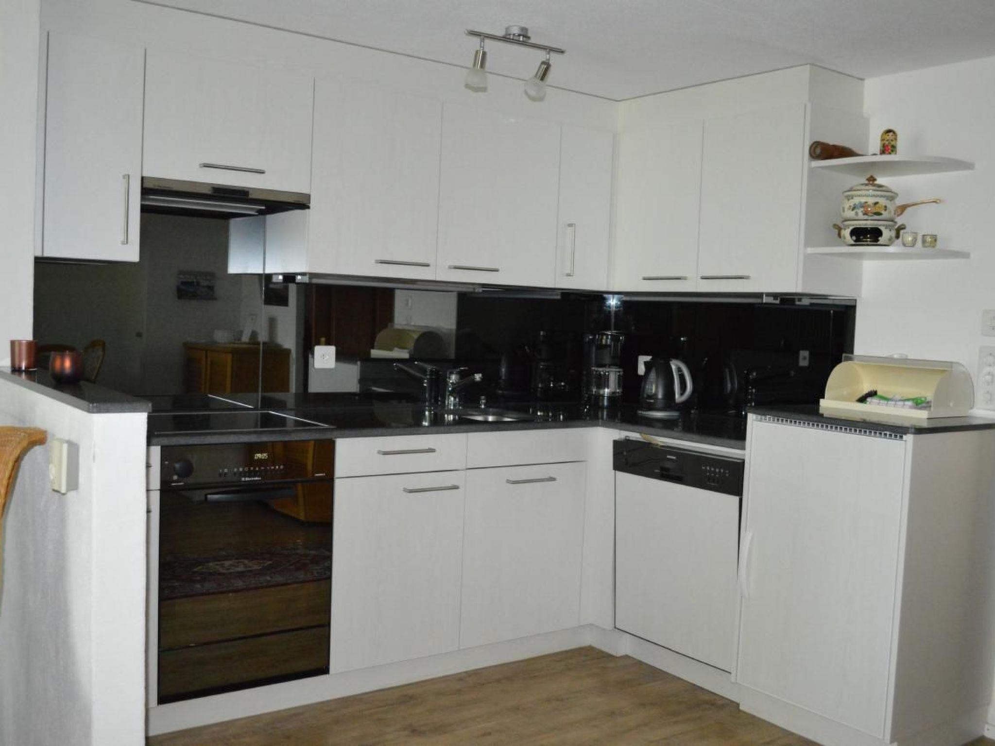 The duplex flat on the 1st floor has a cosy living room with dining area, well-equipped open kitchen (4 ring hob, oven, fridge with freezer compartment, dishwasher), cupboards, bathroom/WC, balcony with wonderful views. A wooden staircase leads to the gallery, which is furnished with a double bed and wardrobes.
