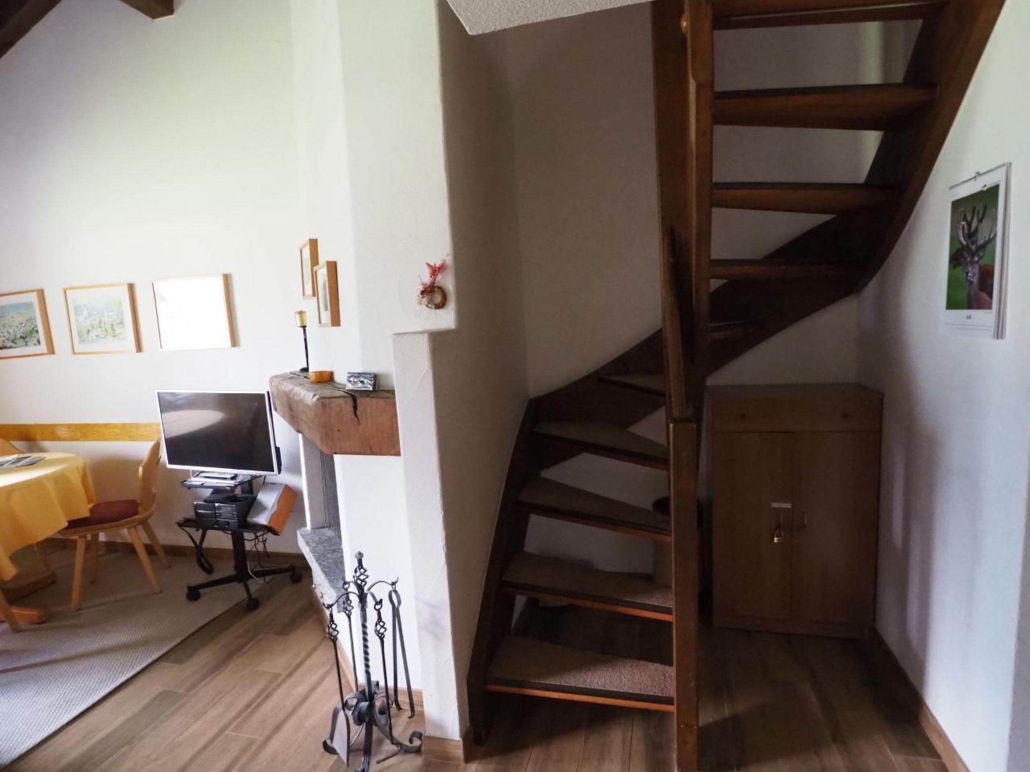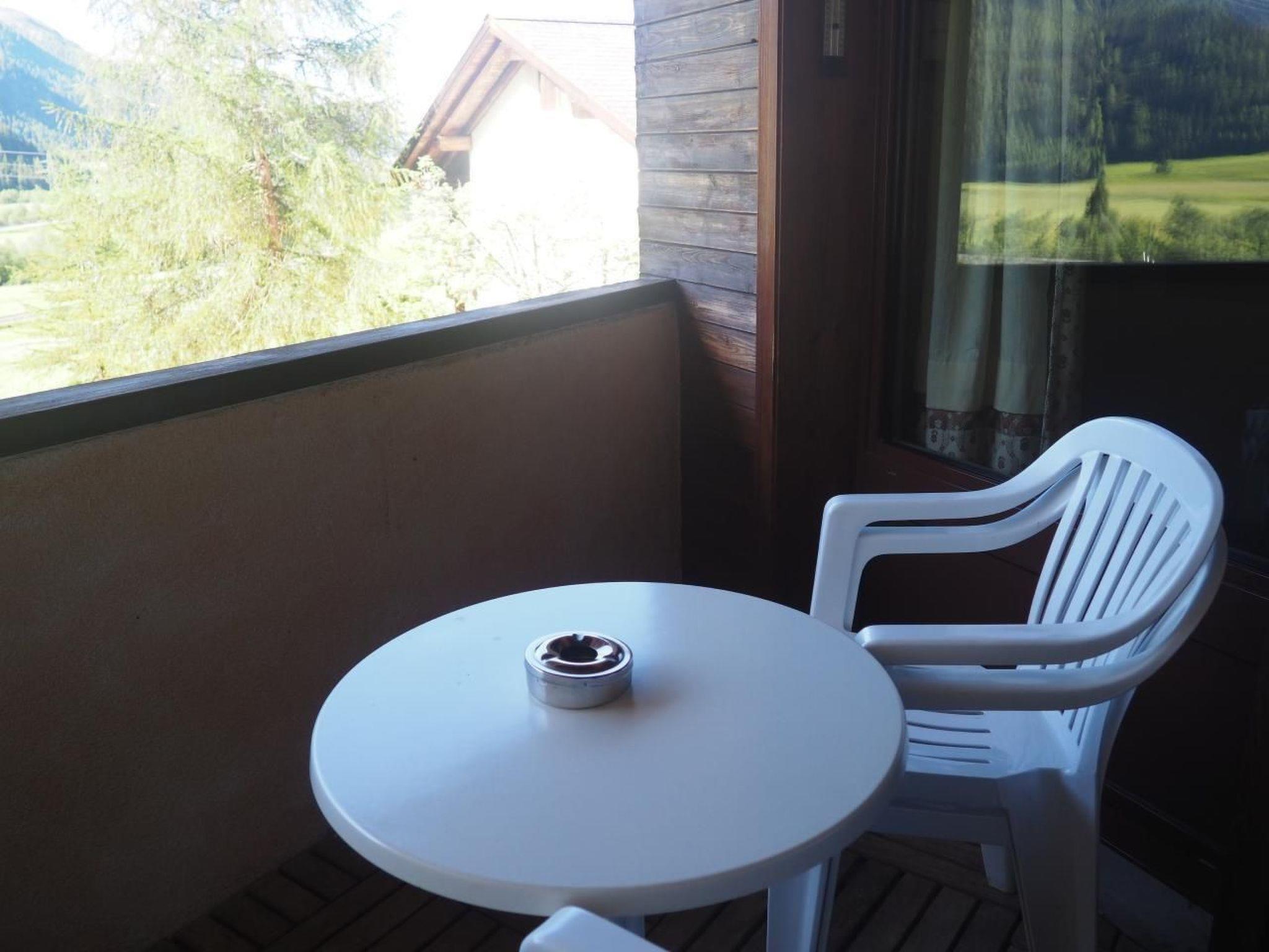 This is a tastefully furnished 2.5 room gallery flat in an apartment complex in La Punt Chamues-ch in a quiet and very sunny location with unobstructed views. The flat on the gallery floor has a cosy living and dining room with fireplace, well-equipped open kitchen, a double bedroom, wooden staircase to the glazed gallery with 2 single beds and wardrobe, bathroom/WC, balcony, parking space. *4 ring hob, oven, fridge with freezer compartment, automatic dishwasher.