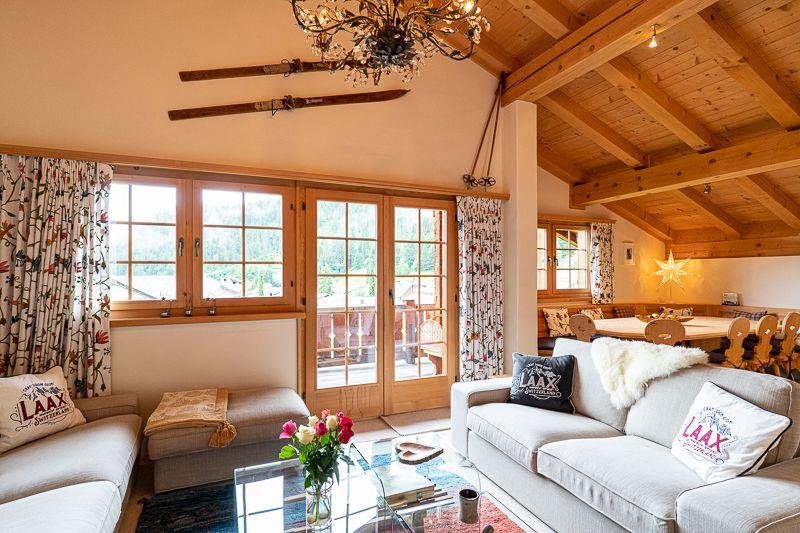 Charmante und modern eingerichtete 4.5 Zimmer Penthousewohnung, ca. 126m2, in Chaletstil in Laax Murschetg unmittelbar neben der Talstation der Bergbahnen.