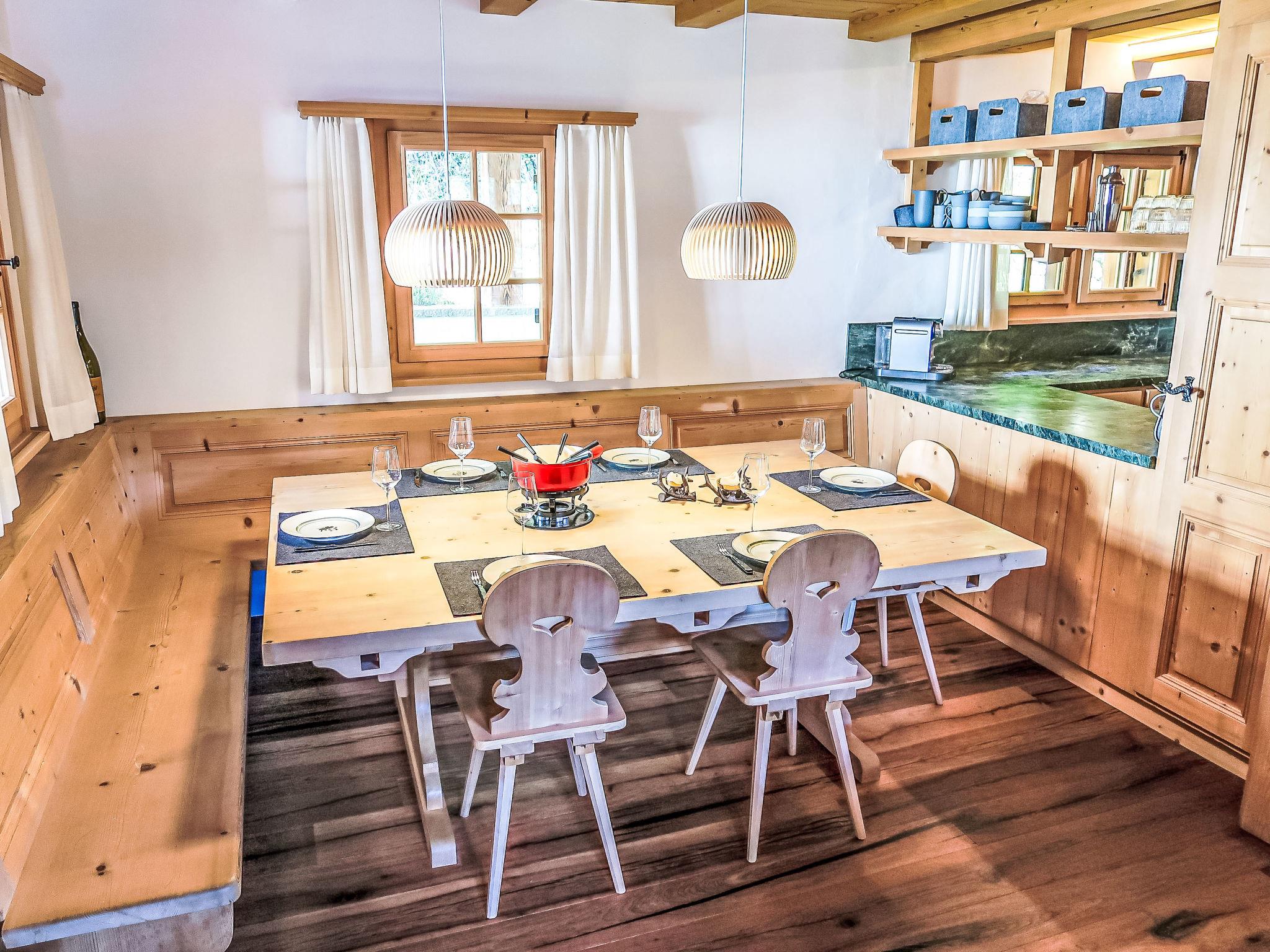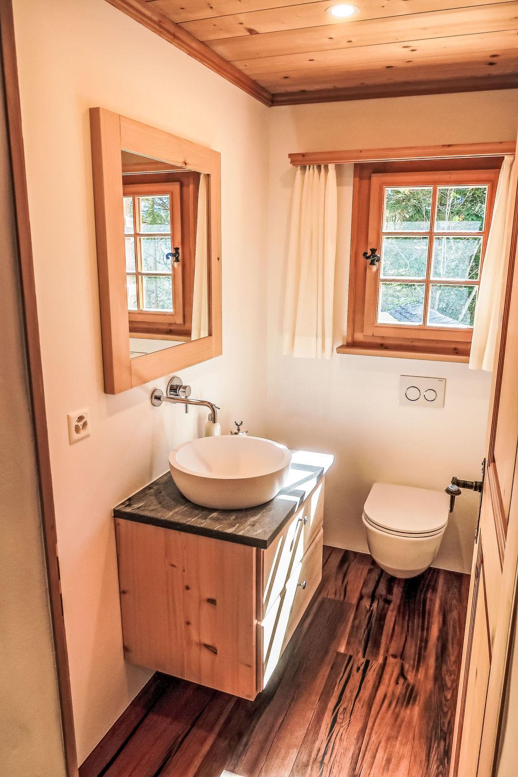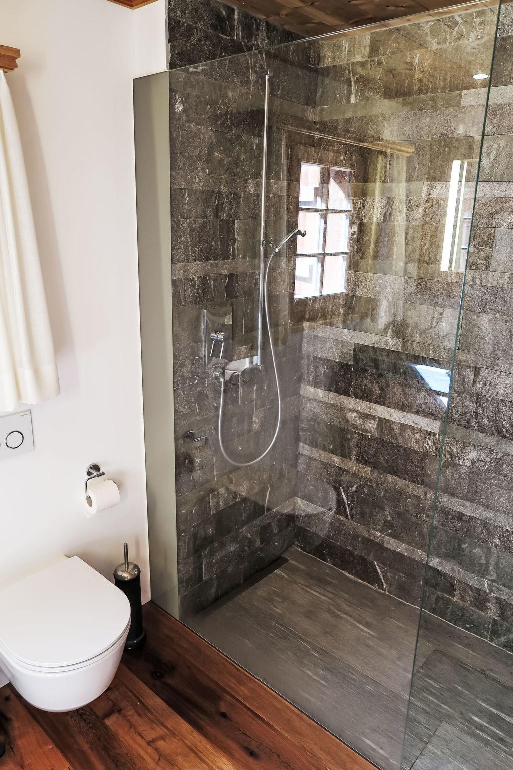4-room apartment 150 m2 on 2 levels. Comfortable and cosy furnishings: living/dining room with open-hearth fireplace (only for decoration). Exit to the balcony. 1 double bedroom with shower/WC. Large, open kitchen (oven, dishwasher, 4 ceramic glass hob hotplates, toaster, kettle, freezer, electric coffee machine, raclette grill, fondue Set (cheese)). Sep. WC. Upper floor: gallery. 1 double bedroom with shower/WC. 1 room with 1 bed and 1 x 2 bunk beds, shower/WC. Balcony 25 m2, south facing position, patio 40 m2. Terrace furniture, balcony furniture, deck chairs (2). Beautiful view of the mountains, the countryside and the resort. Facilities: washing machine, dryer. Internet (WiFi, free). Parking, garage (2 cars) at the house, height 190 cm. Please note: non-smokers only.