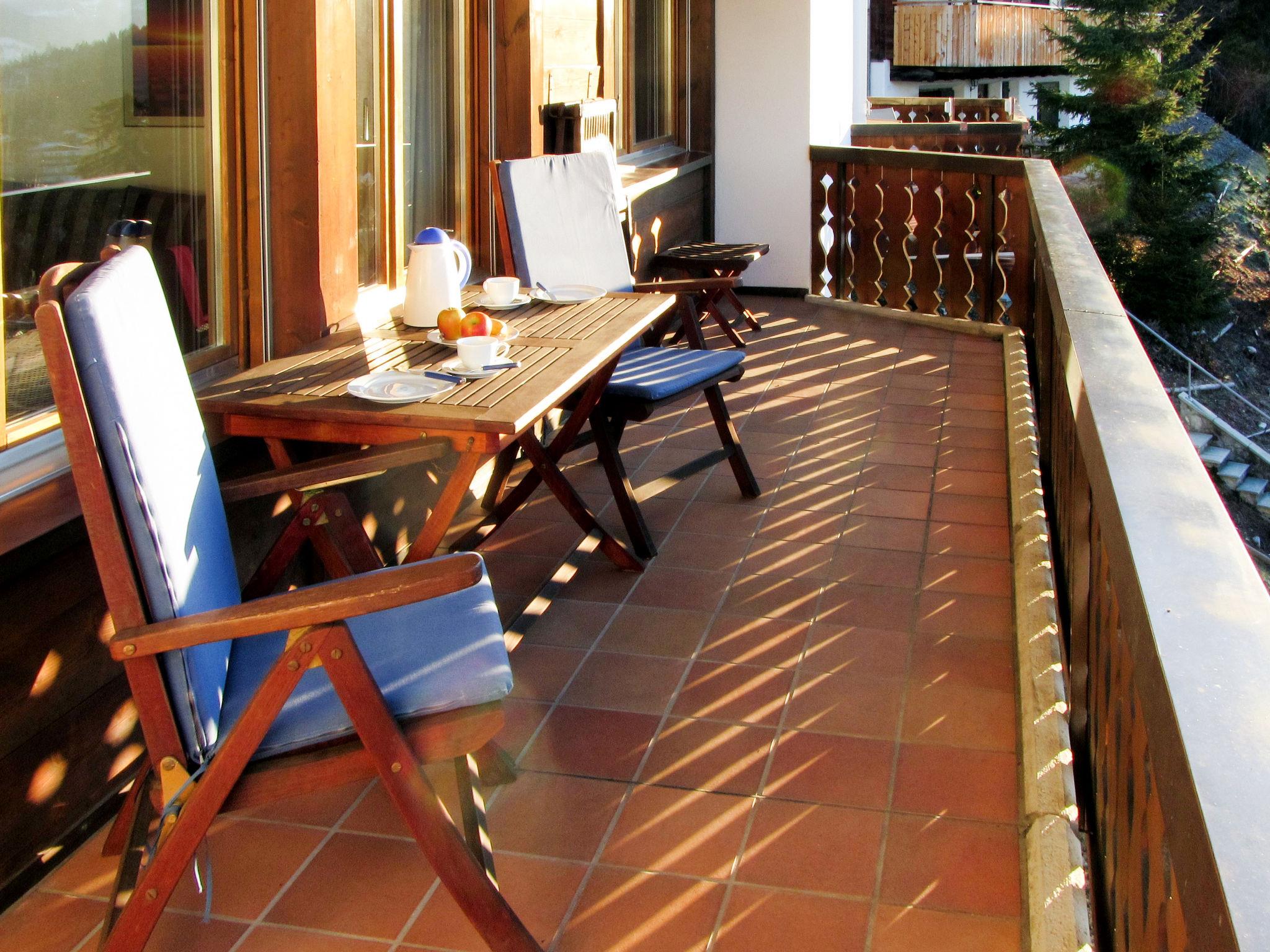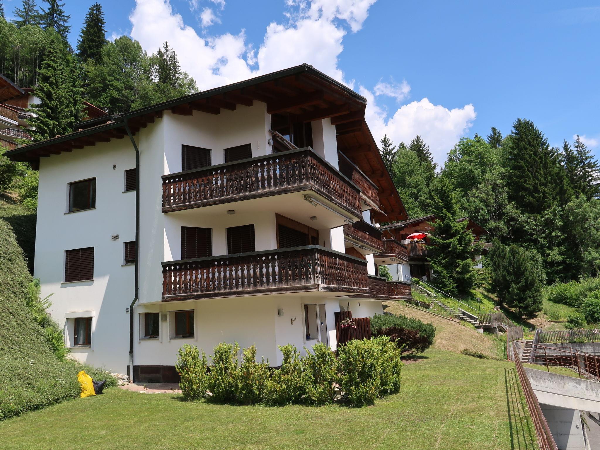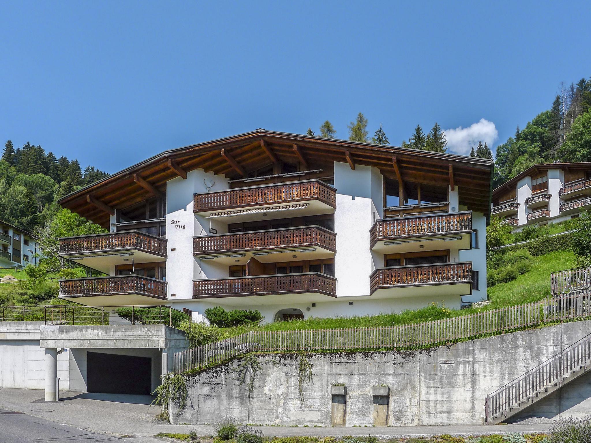 Cosy apartment house "Sur Vitg", 1'020 m a.s.l., 4 storeys. 500 m from the centre of Laax, on the outskirts, 6 km from the centre of Ilanz, in a quiet, sunny, elevated position on a slope, 500 m from the lake, 2 km from the skiing area. In the house: lift, storage room for skis, central heating system, washing machine, tumble dryer (for shared use). Motor access to the house. Communal covered parking at the house. Grocery, restaurant, bakery 500 m, bus stop "Laax GR, Fau" 100 m, railway station "Ilanz" 6 km, indoor swimming pool, bathing lake 500 m. Golf course (18 hole) 3 km, cable car 2 km, ski lift 2 km, chair lift 2 km, skisport facilities 2 km, slopes 2 km, ski bus stop 150 m, ski school 2 km, sled run 2 km, cross country ski track 2 km, ice rink, children's playground 500 m. Nearby attractions: Rheinschlucht 3 km. Well-known ski regions can easily be reached: Weisse Arena Flims/laax 2 km. Well-known lakes can easily be reached: Laaxersee 500 m, Caumasee 5 km. The house is on a side street towards Falera (dead end).