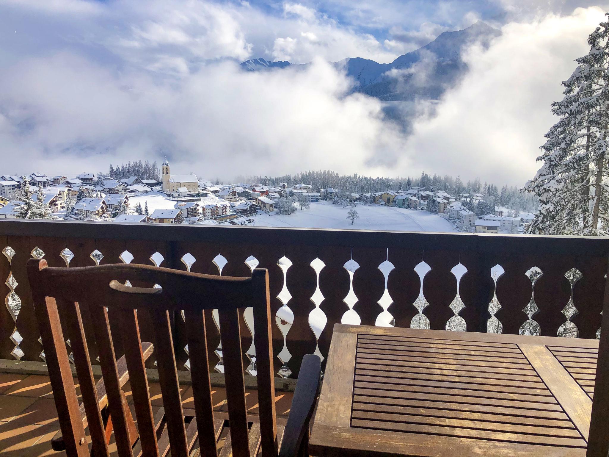 "BergSicht", 2-room apartment 55 m2 on 2nd floor, south facing position. Object suitable for 2 adults + 2 children. Bright, cosy and wooden furniture furnishings: living/dining room with 1 double sofabed (150 cm), open-hearth fireplace and cable TV (flat screen), radio. Exit to the balcony. 1 double bedroom. Open kitchen (oven, dishwasher, 4 ceramic glass hob hotplates, toaster, kettle, electric coffee machine, raclette grill, fondue Set (cheese)). Shower/WC. Underfloor heating. Balcony, south facing position. Balcony furniture. Panoramic view of the mountains, the valley, the countryside and the resort. Facilities: Internet (WiFi, free). Garage (1 car) at the house. Please note: non-smokers only.
