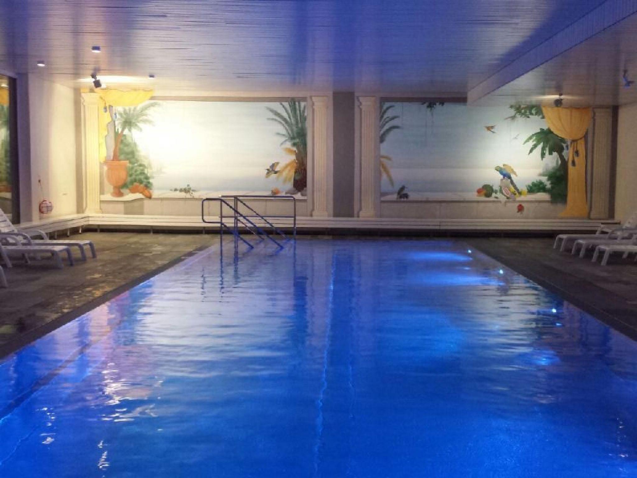 Indoor pool, outdoor pool, tennis courts 2 rackets in the flat, table tennis 2 rackets and net in the flat, badminton 2 rackets and balls in the flat, sauna, wifi in the games room next to the indoor pool (code written on the wall).