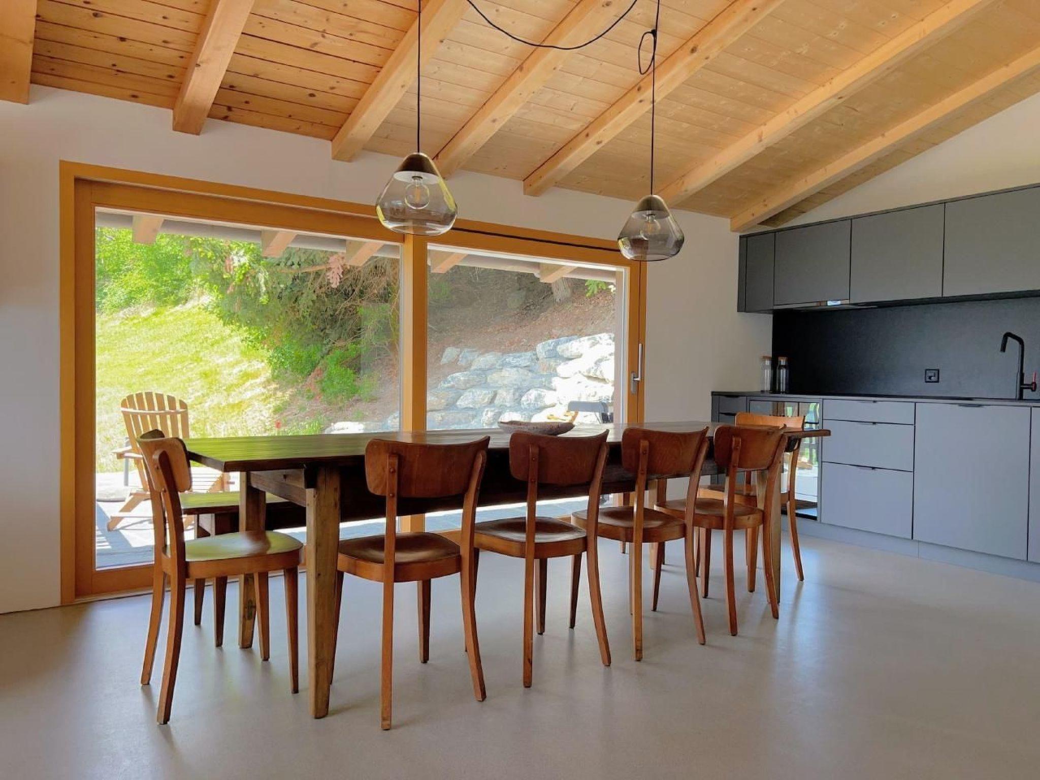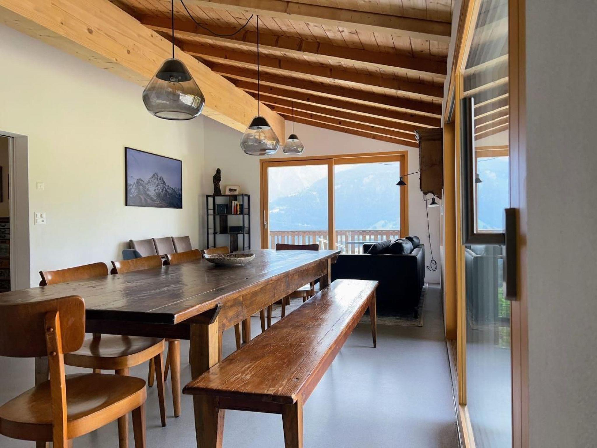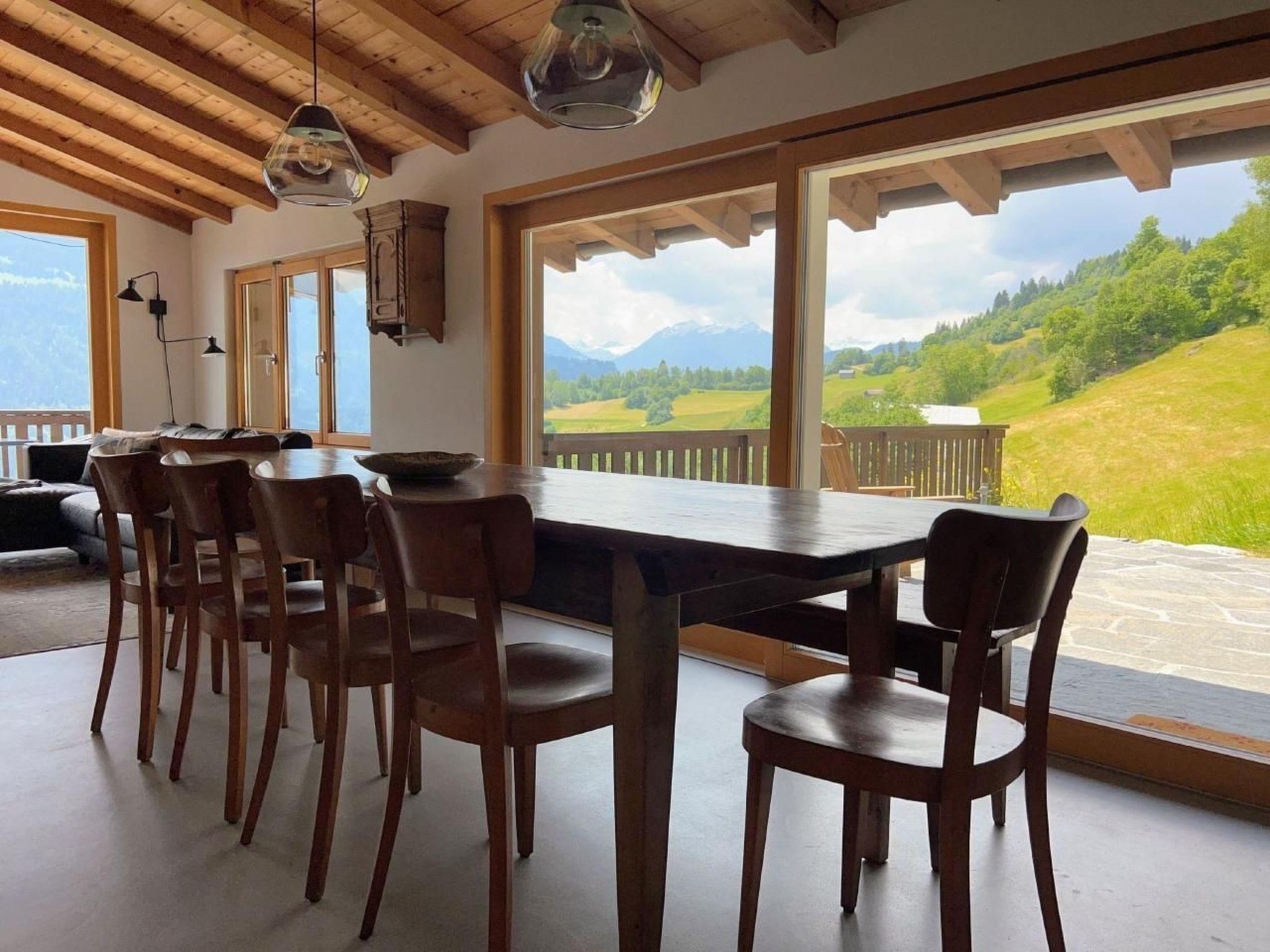 4 of the 5 bedrooms have mountain views - and the only sound you will hear at night may be cowbells. The large, open-plan dining/sitting area invites cosy get-togethers with up to 10 people at one table - or spread out over the room and balcony/terrace.