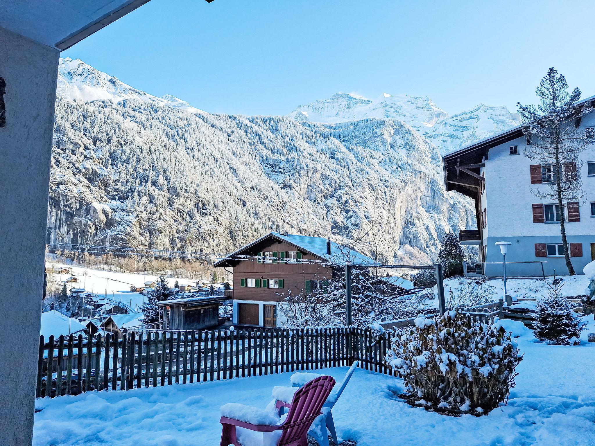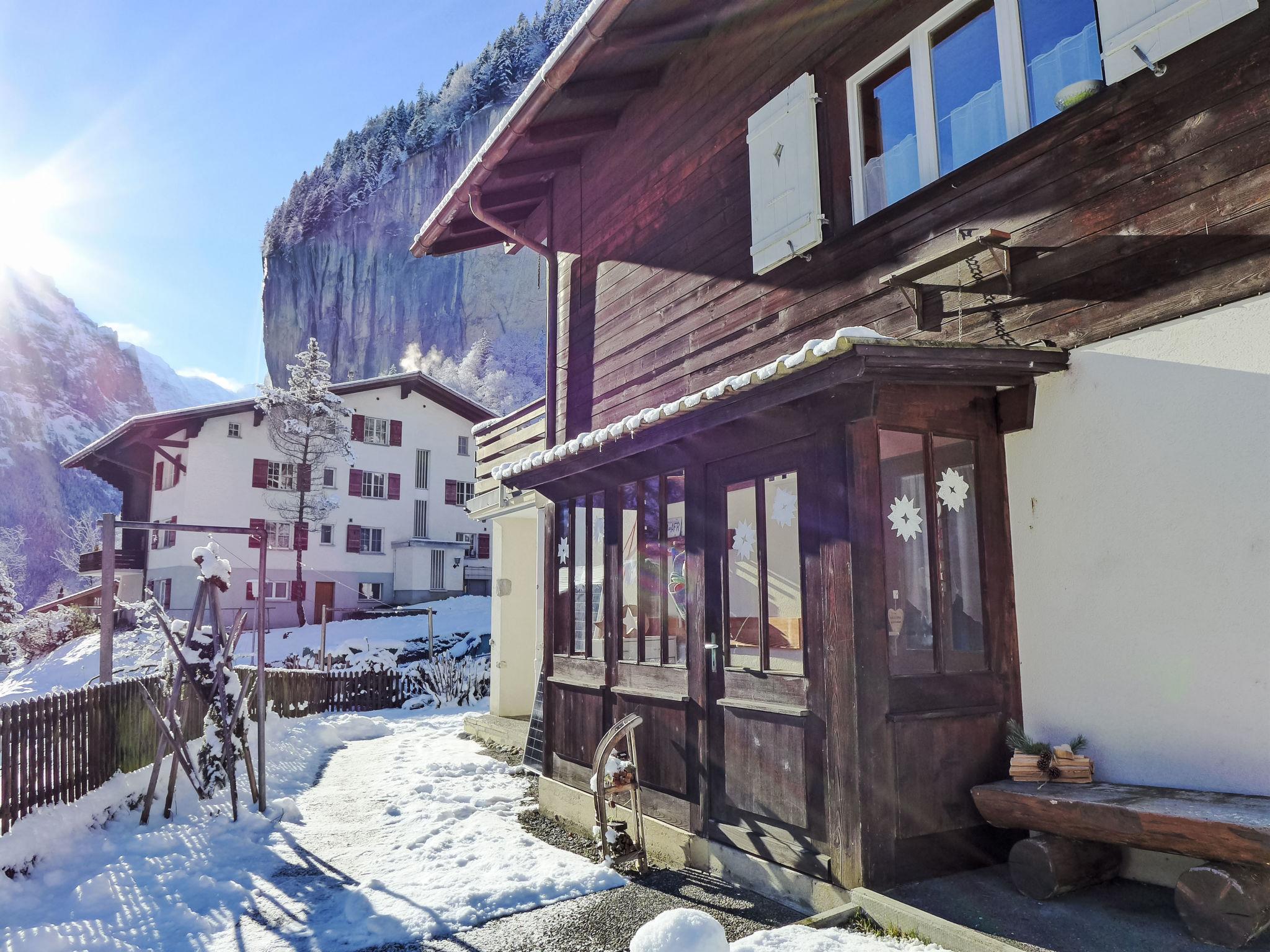 Cosy, rustic 3-family house "Chalet im Gässli", 3 storeys. Above Lauterbrunnen, 300 m from the centre, in a quiet, sunny position on a slope, in the residential district, in a cul-de-sac, south facing position. For shared use: garden with lawn and plants. In the house: storage room for bicycles, storage room for skis, central heating system. 250 m long steep, narrow motor access. In Winter: please take snow chains. Parking at the house. Grocery 250 m, supermarket 550 m, restaurant 250 m, bus stop 300 m, railway station 700 m, outdoor swimming pool 300 m. Tennis 1.3 km, cable car, skisport facilities 700 m, ski bus stop 300 m, ski school 400 m, cross country ski track 1.2 km, ice rink 1.3 km. Nearby attractions: Trümmelbachfälle, Schilthorn Piz Gloria, Jungfraujoch Top of Europe. Well-known ski regions can easily be reached: Wengen Männlichen, Mürren - Schilthorn. Well-known lakes can easily be reached: Thunersee, Brienzersee. Please note: car recommended. Ski bus (free of charge). In case of good snow conditions, the house is accessible on skis. The owner lives in the same residence.