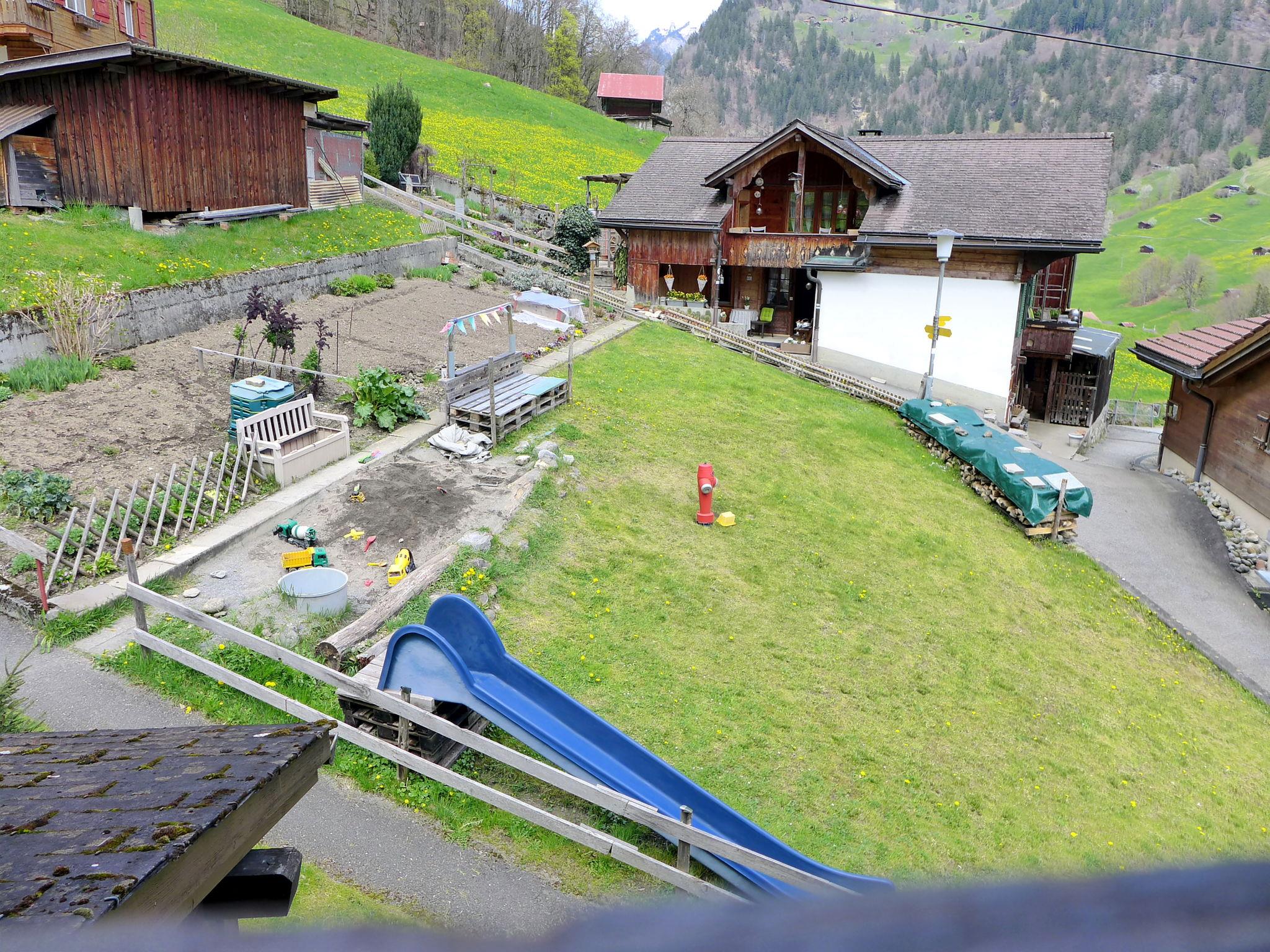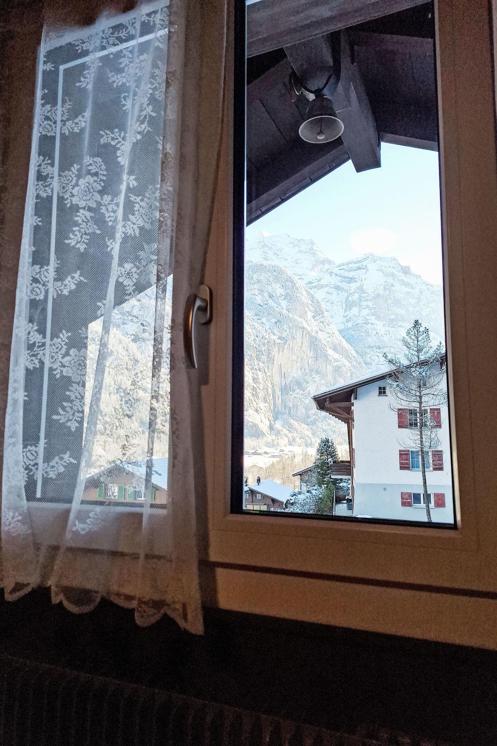 Cosy, rustic 3-family house "Chalet im Gässli", 3 storeys. Above Lauterbrunnen, 300 m from the centre, in a quiet, sunny position on a slope, in the residential district, in a cul-de-sac, south facing position. For shared use: garden with lawn and plants. In the house: storage room for bicycles, storage room for skis, central heating system. 250 m long steep, narrow motor access. In Winter: please take snow chains. Parking at the house. Grocery 250 m, supermarket 550 m, restaurant 250 m, bus stop 300 m, railway station 700 m, outdoor swimming pool 300 m. Tennis 1.3 km, cable car, skisport facilities 700 m, ski bus stop 300 m, ski school 400 m, cross country ski track 1.2 km, ice rink 1.3 km. Nearby attractions: Trümmelbachfälle, Schilthorn Piz Gloria, Jungfraujoch Top of Europe. Well-known ski regions can easily be reached: Wengen Männlichen, Mürren - Schilthorn. Well-known lakes can easily be reached: Thunersee, Brienzersee. Please note: car recommended. Ski bus (free of charge). In case of good snow conditions, the house is accessible on skis. The owner lives in the same residence.