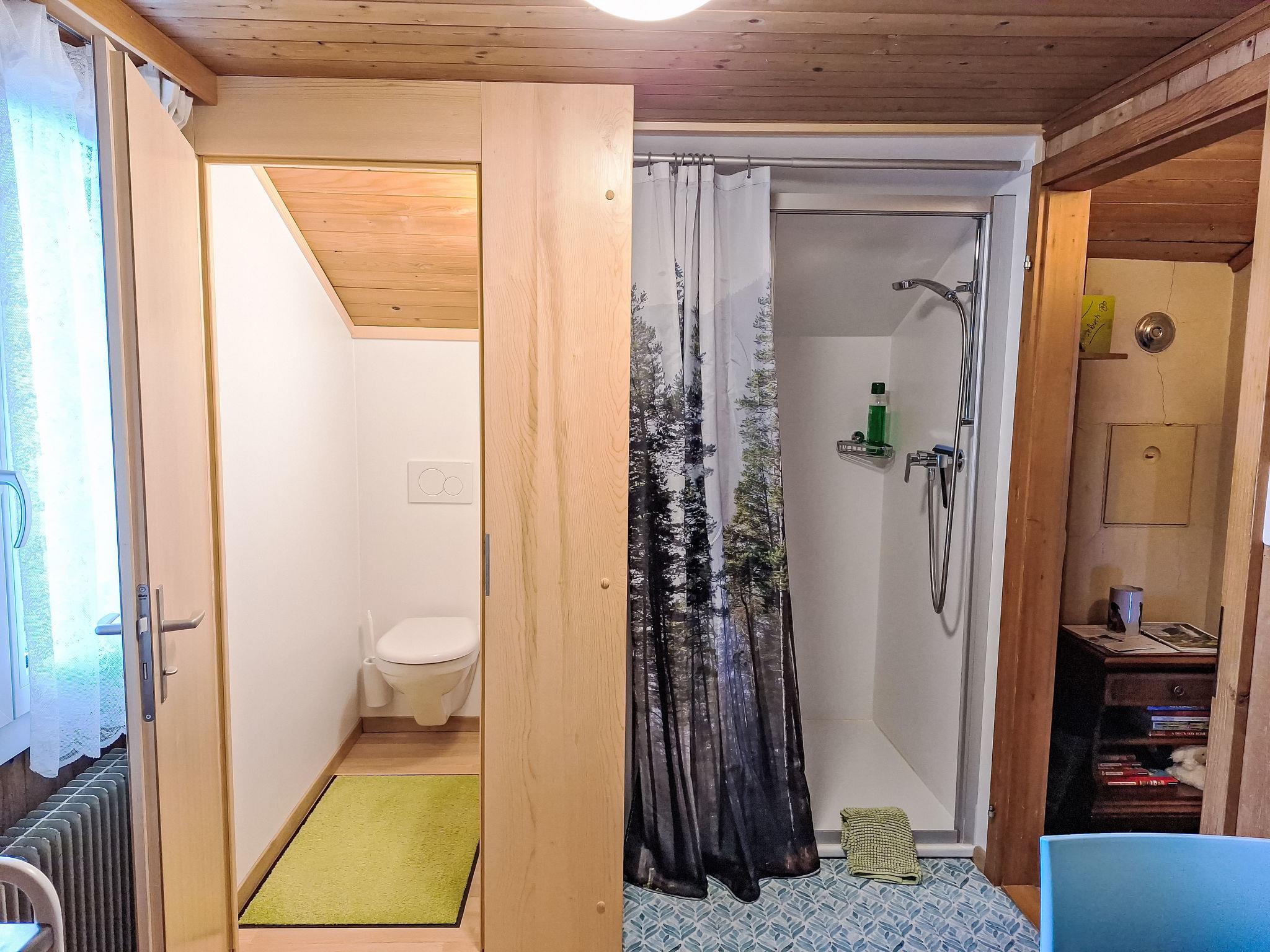 "Vreneli", 1-room apartment 25 m2, on the top floor. Partly with sloping ceilings, simple and cosy furnishings: 1 room with 3 beds (90 cm, length 200 cm). Kitchen-/living room (1 hot plate, toaster, kettle, electric coffee machine, raclette grill, fondue Set (cheese)) with dining table and radio. Shower, sep. WC. Very beautiful view of the mountains and the countryside. Facilities: baby cot for up to 2 year olds (extra), hair dryer. Internet (WiFi, free). Parking. Please note: fridge without freezer, non-smokers only.