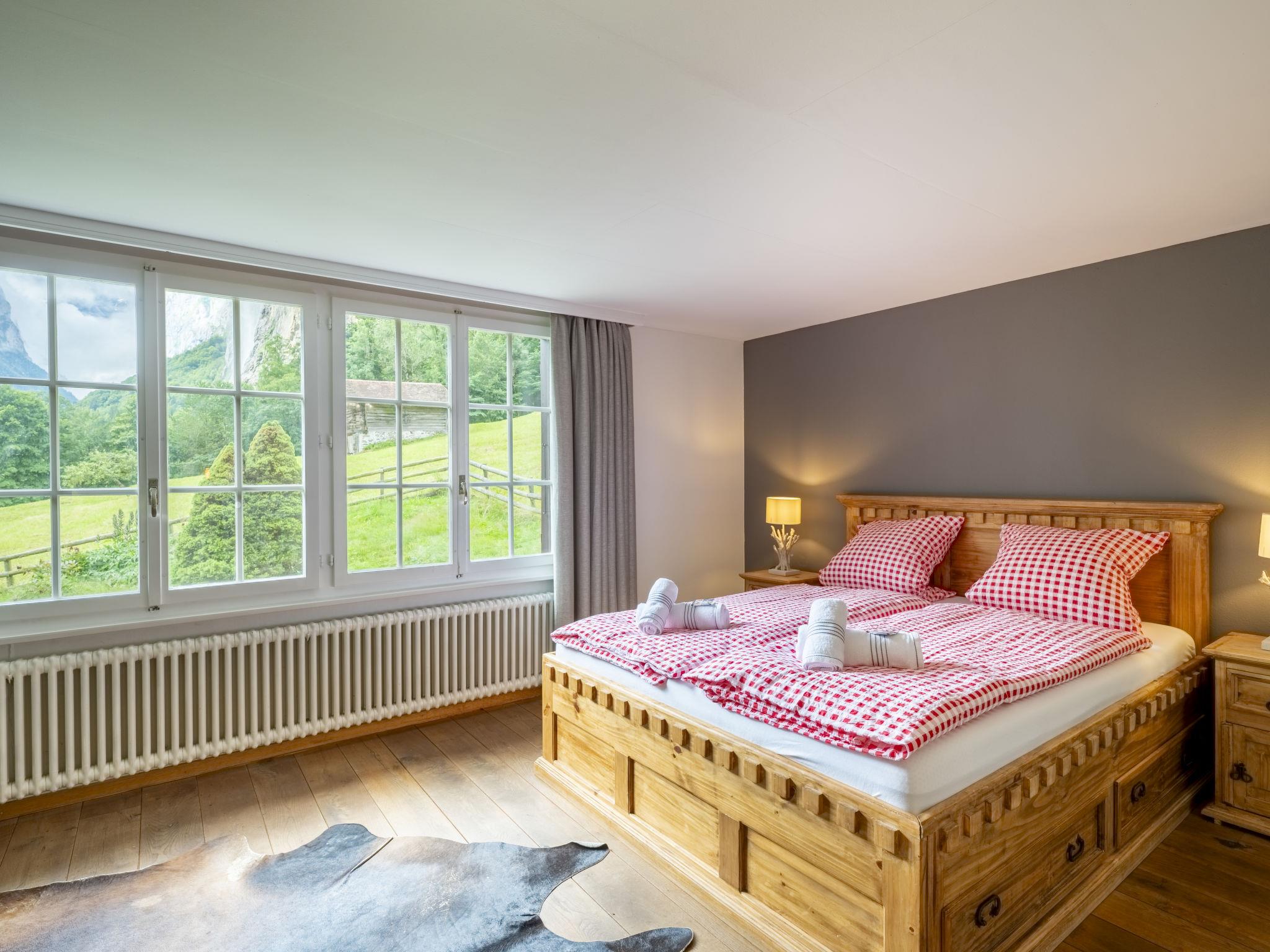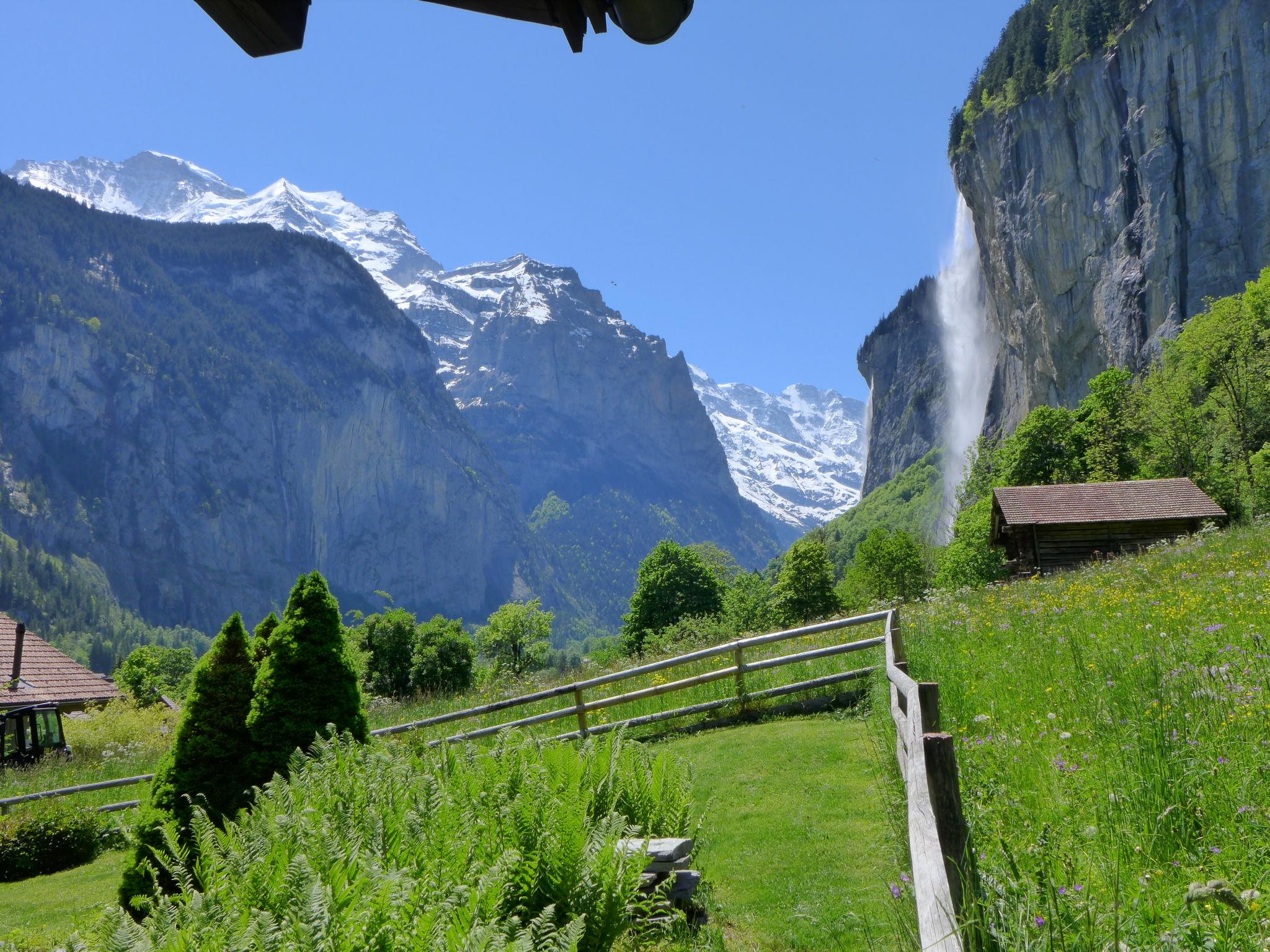 Lauterbrunnen 10 km from Interlaken: Large, comfortable chalet "am Schärm", 3 storeys, surrounded by trees and meadows. In the centre of Lauterbrunnen, in a central, quiet, sunny position on a slope. Private: large garden lawn and wildlife garden. Garden furniture, barbecue. In the house: storage room for skis, central heating system, washing machine, tumble dryer, ski boot dryer. Linen change (suppl. charge extra). Room cleaning on request (extra). Narrow motor access to the house. 4x4 car recommended in winter. Width of access road: 320 cm. Parking (for 4 cars) at the house. Shop 300 m, supermarket 500 m, restaurant, bakery 400 m, bus stop 300 m, railway station "Lauterbrunnen", outdoor swimming pool 500 m. Golf course (18 hole) 11 km, tennis 600 m, minigolf 600 m, cable car 500 m, ski rental 250 m, ski bus stop 200 m. Nearby attractions: Jungfraujoch, Schilthorn, Interlaken 12 km. Well-known ski regions can easily be reached: Wengen - Kleine Scheidegg, Mürren Schilthorn. Well-known lakes can easily be reached: Thunersee, Brienzersee. Hiking paths: Jungfrau Region, Hinteres Lauterbrunnental. Please note: suitable for families, baby equipment (extra). Groups of teenagers on request only. In case of good snow conditions, the house is accessible on skis.