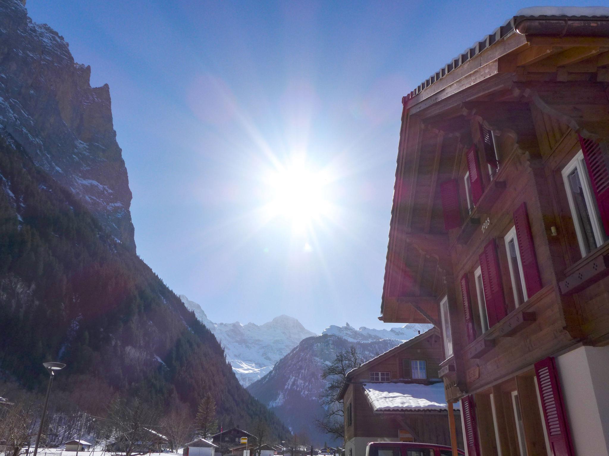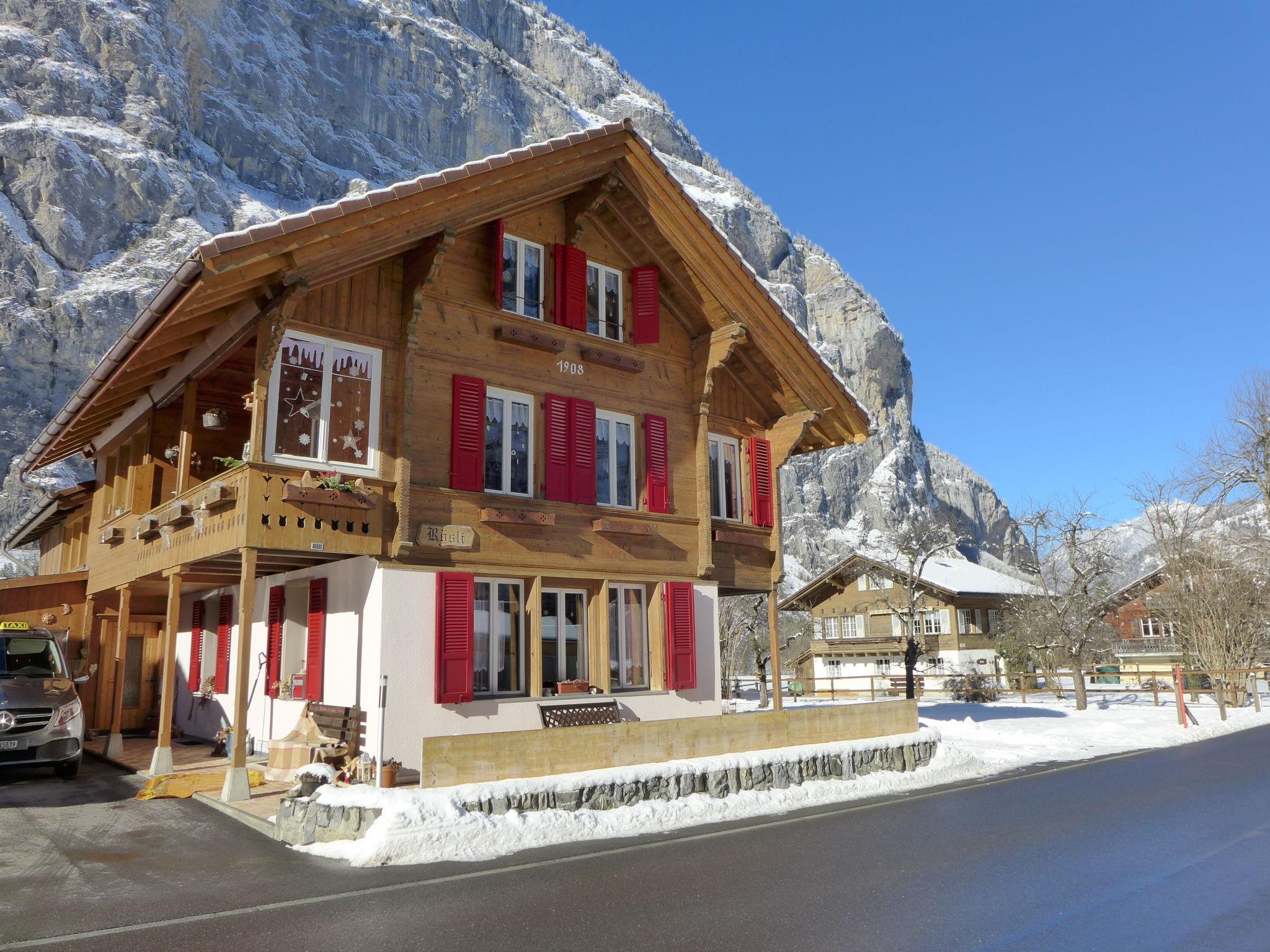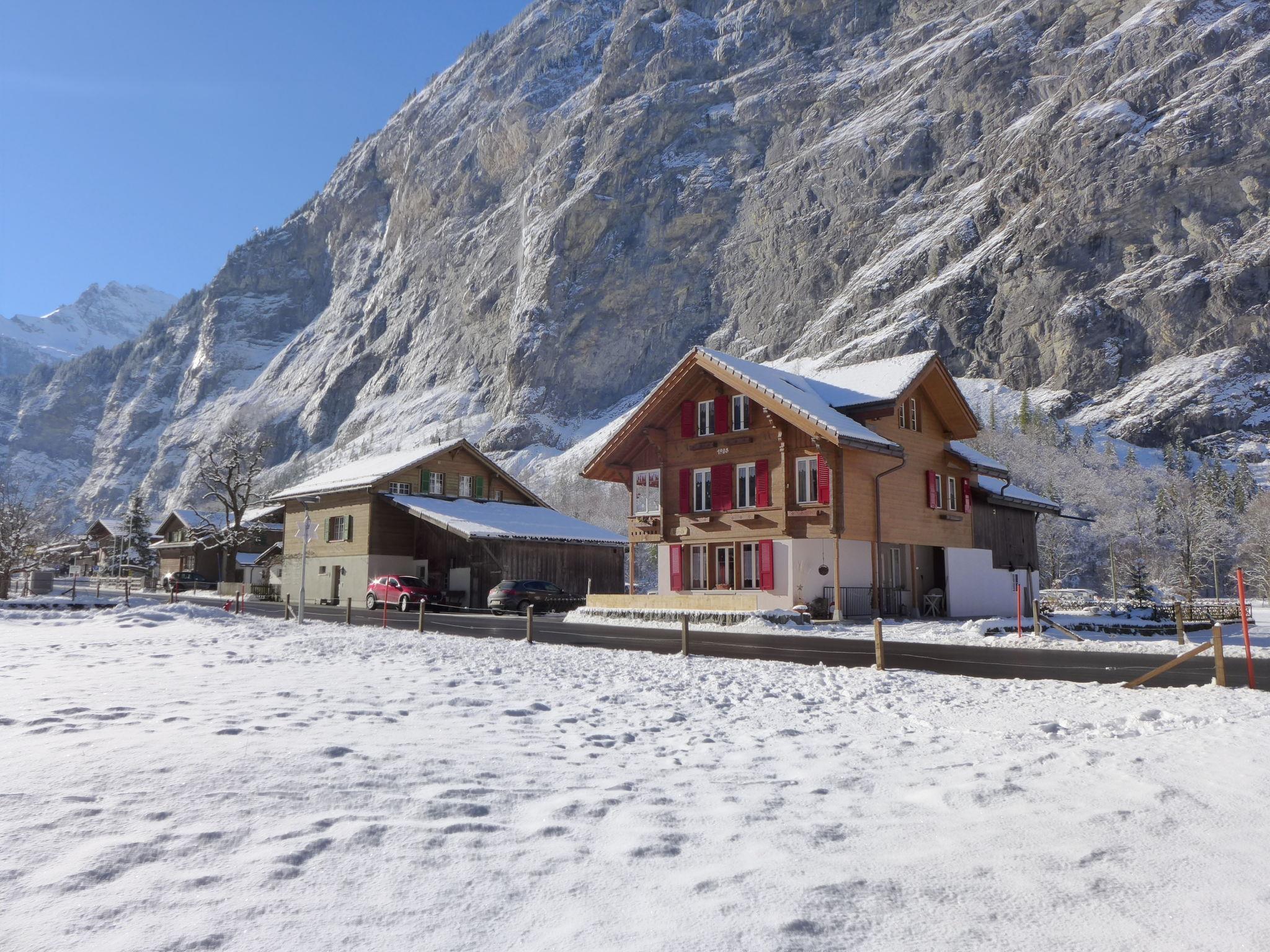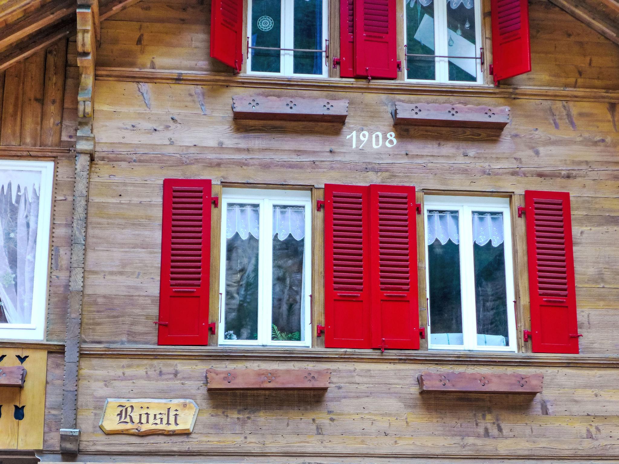 Stechelberg 4 km from Lauterbrunnen: Beautiful, rustic chalet "Rösli". In the district of Sandbach, in a secluded, sunny position, located by a road. For shared use: garden with lawn. Patio, garden furniture, parking at the house. Supermarket 3.7 km, restaurant 3 km, bus stop "Sandbach" 5 m, railway station "Lauterbrunnen" 3.7 km, outdoor swimming pool 3.7 km, indoor swimming pool 3.7 km. Tennis 2 km, minigolf 3 km, walking paths from the house 5 m, cable car 1.8 km, skisport facilities 2 km, ski bus stop 5 m, cross country ski track 50 m, ice rink 3 km. Nearby attractions: Trümmelbachfälle. Well-known ski regions can easily be reached: Mürren - Schilthorn, Wengen - Kleine Scheidegg. Hiking paths: Mürren, Hinteres Lauterbrunnental. Please note: Local sale of farm products. Ski bus (free of charge). The owner lives in the same residence. Main road close by.