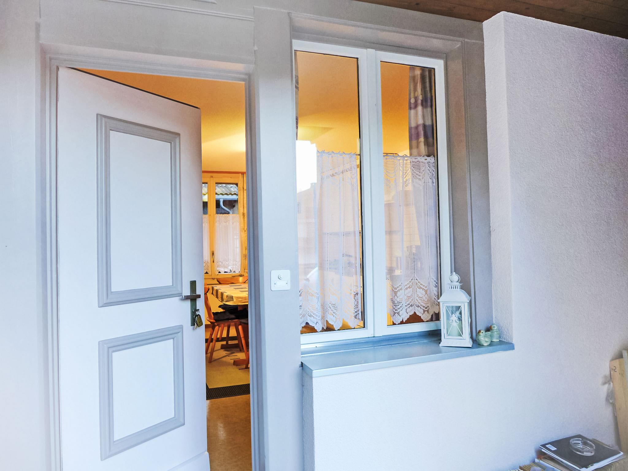 1-room apartment 40 m2, on the ground floor. Spacious, comfortable and cosy furnishings: living/sleeping room 20 m2 with 2 beds and cable TV (flat screen), radio and CD-player. Large kitchen-/living room (3 hot plates, oven, toaster, kettle, electric coffee machine, raclette grill, fondue Set (cheese)) with dining table. Shower/WC. Electric heating, boiler (150 litres). Patio. Terrace furniture, deck chairs. Beautiful view of the mountains and the countryside. Facilities: hair dryer. Internet (WiFi, free). Parking. Please note: non-smokers only. Fire extinguisher.