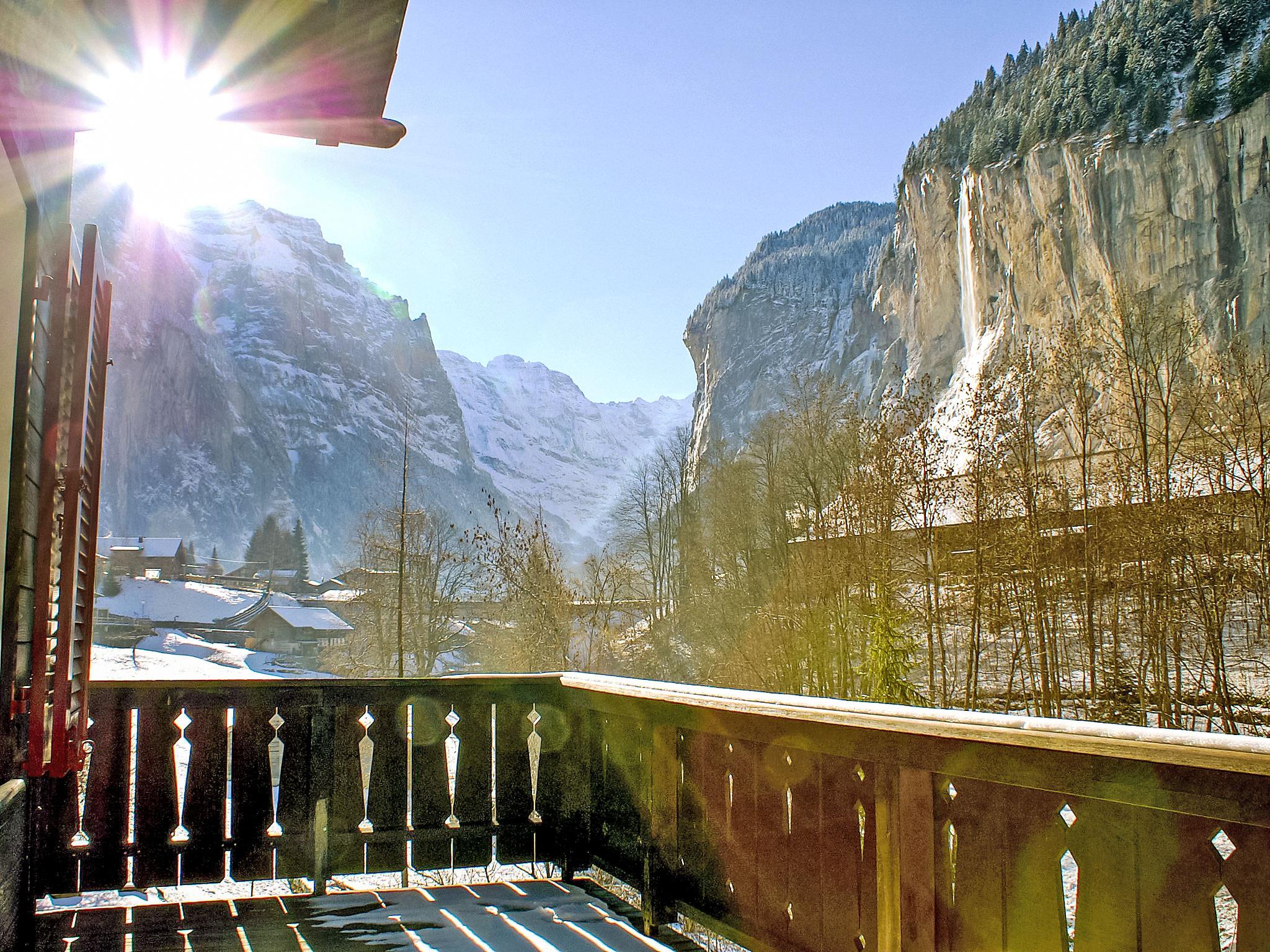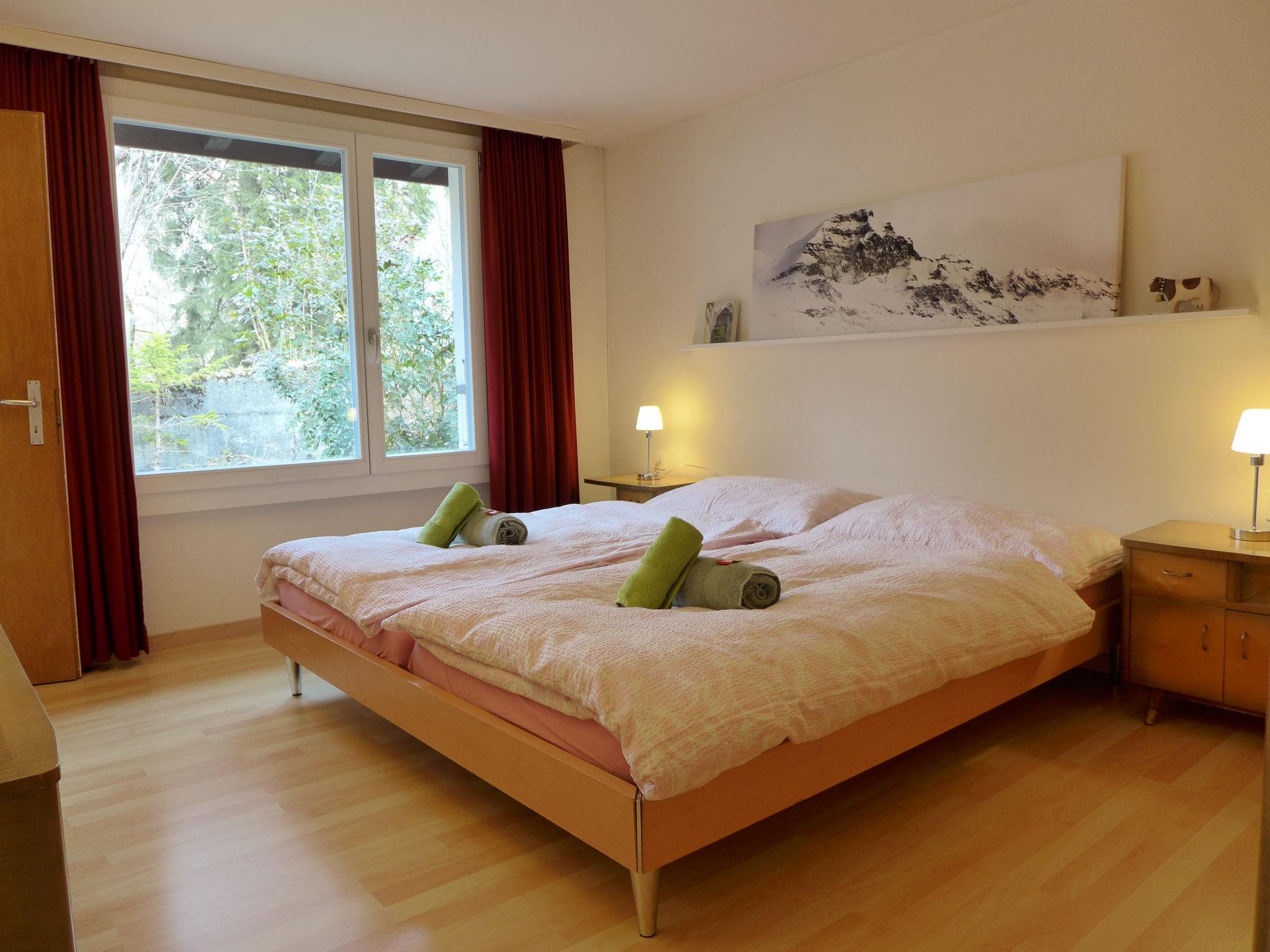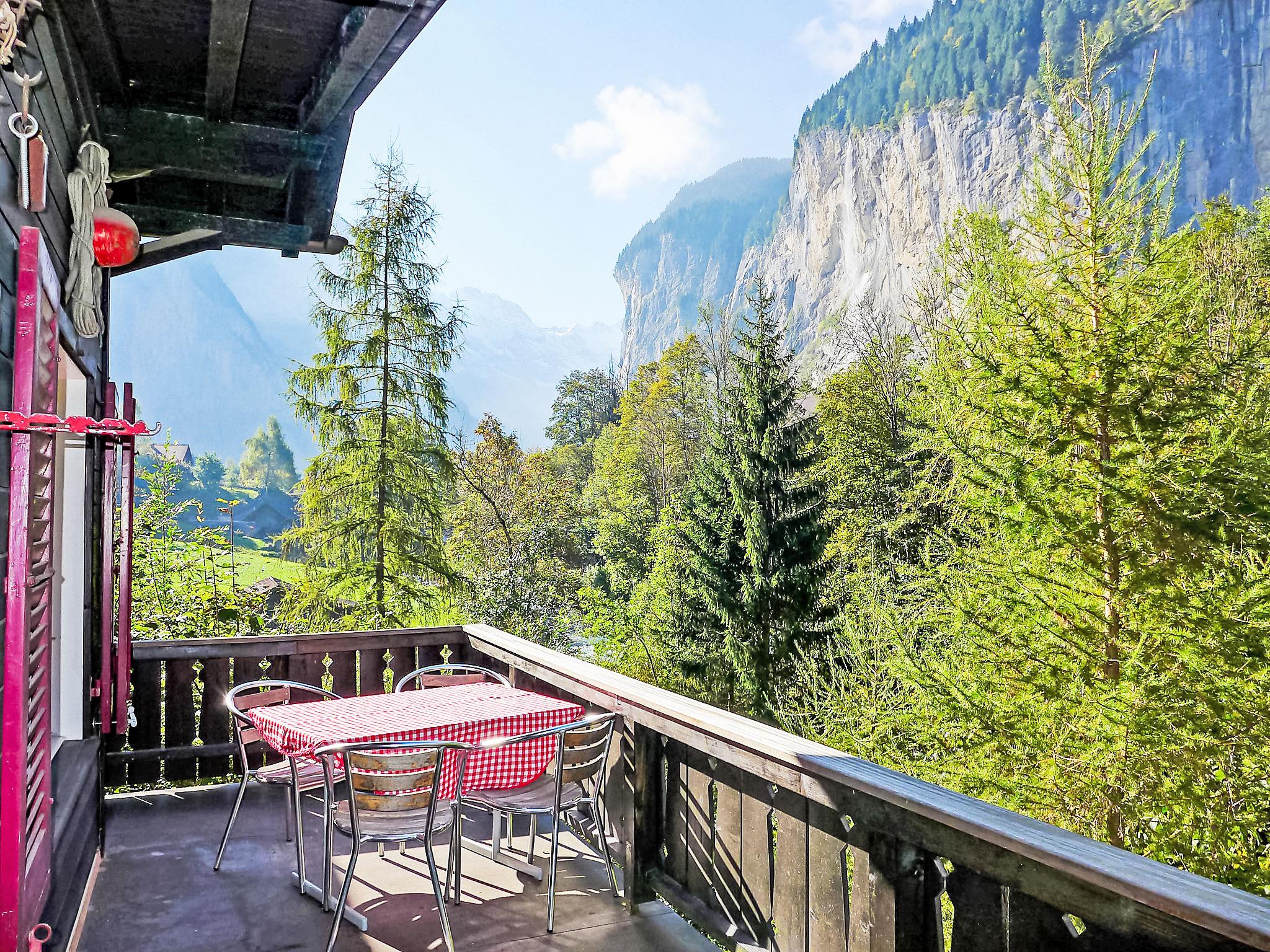 Rustic chalet "Stocki", semi-detached. In the district of Stocki, in a quiet, sunny position on a slope, 20 m from the stream, in the countryside. Private: patio, garden furniture, barbecue. Motor access to 100 m from the house. Public car park at 1.2 km, public parking 150 m. Supermarket 900 m, restaurant 500 m, bus stop 300 m, railway station "Lauterbrunnen" 1.2 km, outdoor swimming pool 1 km. Tennis 500 m, minigolf, walking paths from the house 100 m, cable car 1.2 km, skisport facilities 1.2 km, ski bus stop 300 m, cross country ski track 500 m, ice rink. Nearby attractions: Jungfraujoch, Schilthorn, Interlaken, Trümmelbachfälle. Well-known ski regions can easily be reached: Wengen - Männlichen, Mürren - Schilthorn. Well-known lakes can easily be reached: Brienzersee, Thunersee. Hiking paths: Jungfrau Region. Train station / town center by footpath: 400m.