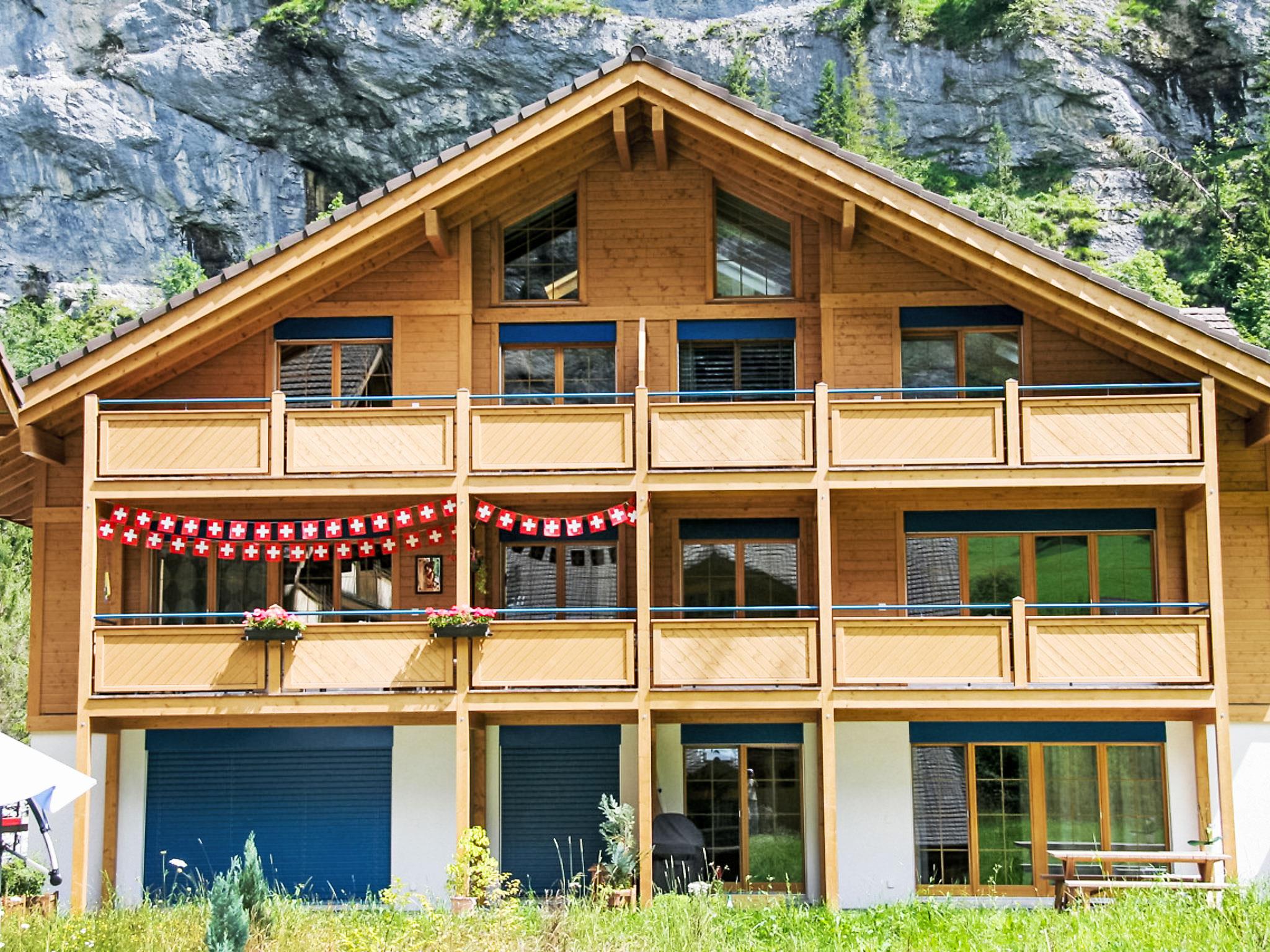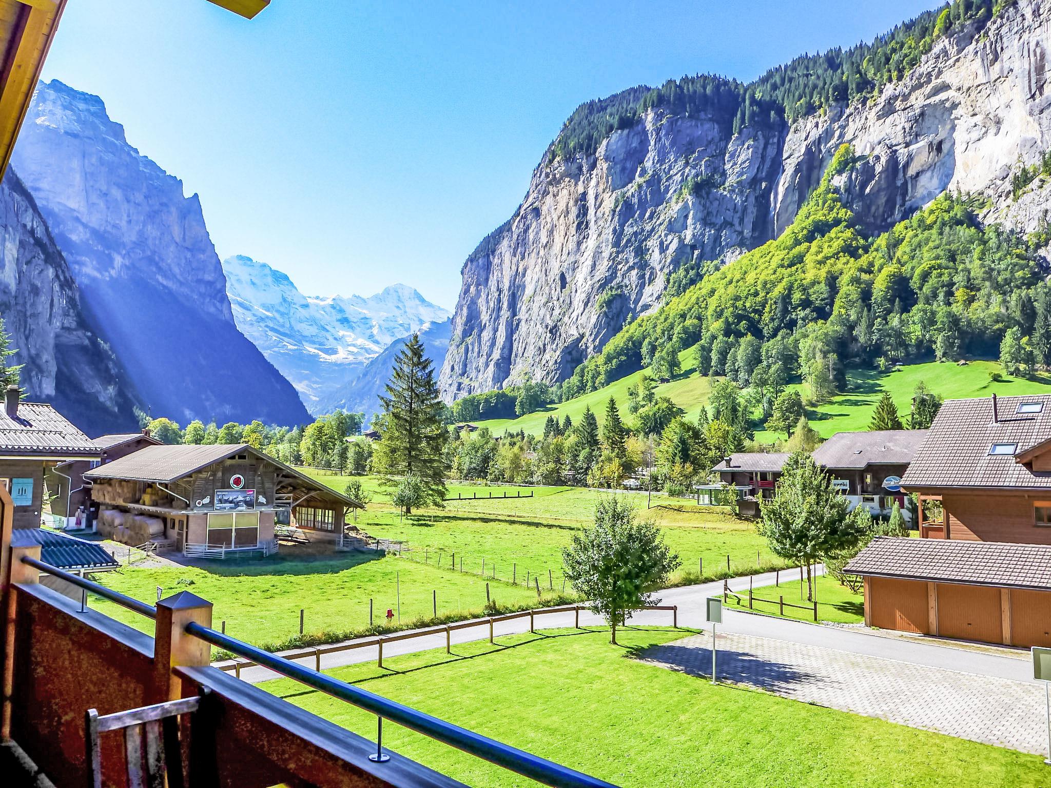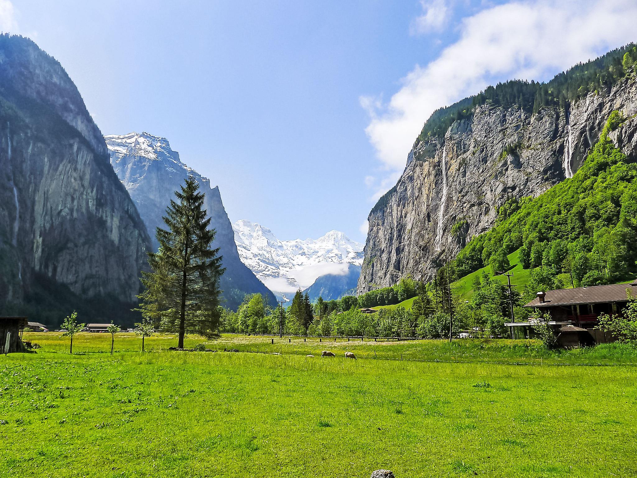 Modern, comfortable apartment house "Wasserfall", built in 2012, surrounded by meadows and fields. In the district of Ey, 700 m from the centre, in a sunny position in the residential district, located by a road. In the house: storage room for skis, central heating system. Pre-arrival grocery service. Shop 700 m, grocery 50 m, supermarket 1.3 km, restaurant 300 m, bus stop "Schützenbach" 30 m, railway station "Lauterbrunnen" 1.3 km, outdoor swimming pool 1.1 km. Golf course (18 hole) 15 km, tennis 200 m, minigolf 150 m, walking paths from the house 10 m, cable car 1.3 km, mountain railway 1.3 km, skisport facilities 2 km, ski rental 600 m, ski bus stop 30 m, cross country ski track 200 m, ice rink 100 m. Nearby attractions: Jungfraujoch, Trümmelbachfälle. Well-known ski regions can easily be reached: Wengen Kleine Scheidegg, Mürren Schilthorn. Well-known lakes can easily be reached: Brienzersee, Thunersee. Please note: ski bus (free of charge). Free ski bus service to the ski region Mürren - Schilthorn.