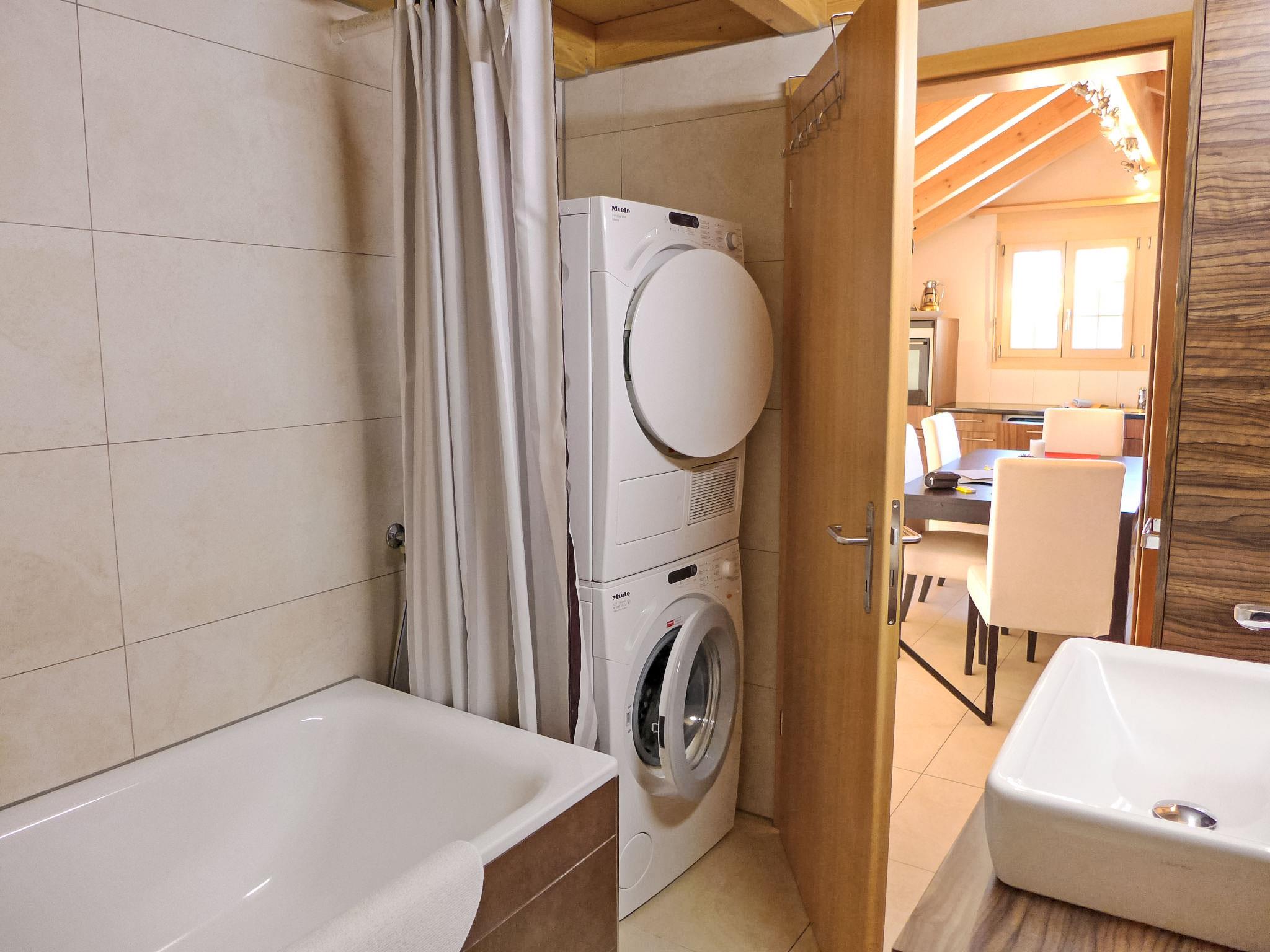 "Staubbach", 4-room maisonette 111 m2 on 2 levels, on the top floor. Spacious and bright, comfortable and cosy furnishings: open living/dining room 30 m2 with cable TV, flat screen, radio and CD-player. Exit to the balcony. 1 room with 1 double bed (2 x 80 cm, length 200 cm). 1 room with 2 beds (90 cm, length 200 cm). Open kitchen (oven, dishwasher, 4 ceramic glass hob hotplates, microwave, electric coffee machine, fondue Set (cheese)). Bath/WC. Upper floor: open gallery with 1 double bed (160 cm, length 200 cm), shower/WC. Balcony, west facing position. Balcony furniture. Marvellous view of the mountains and the countryside. Facilities: washing machine, dryer, iron, hair dryer. Internet (WiFi, free). Parking (1 car) at the house. Please note: suitable for families. Non-smokers only. Instead of an enclosed bedroom, some sleeping areas are located in an open-plan area (gallery, alcove, etc.).