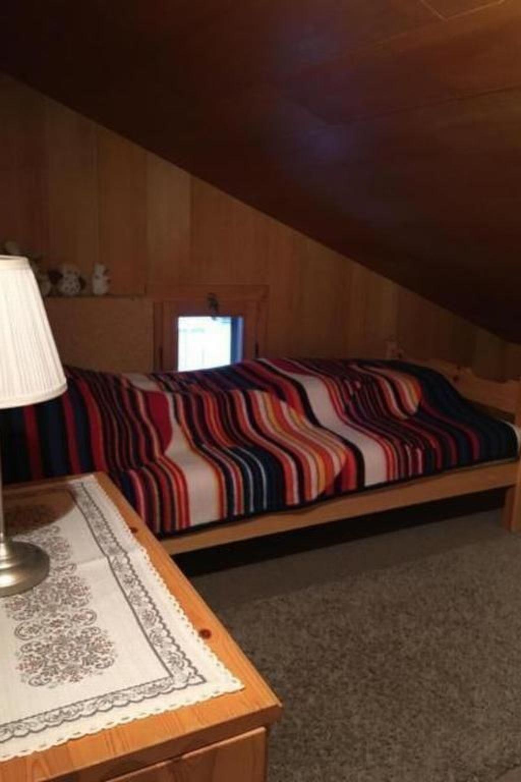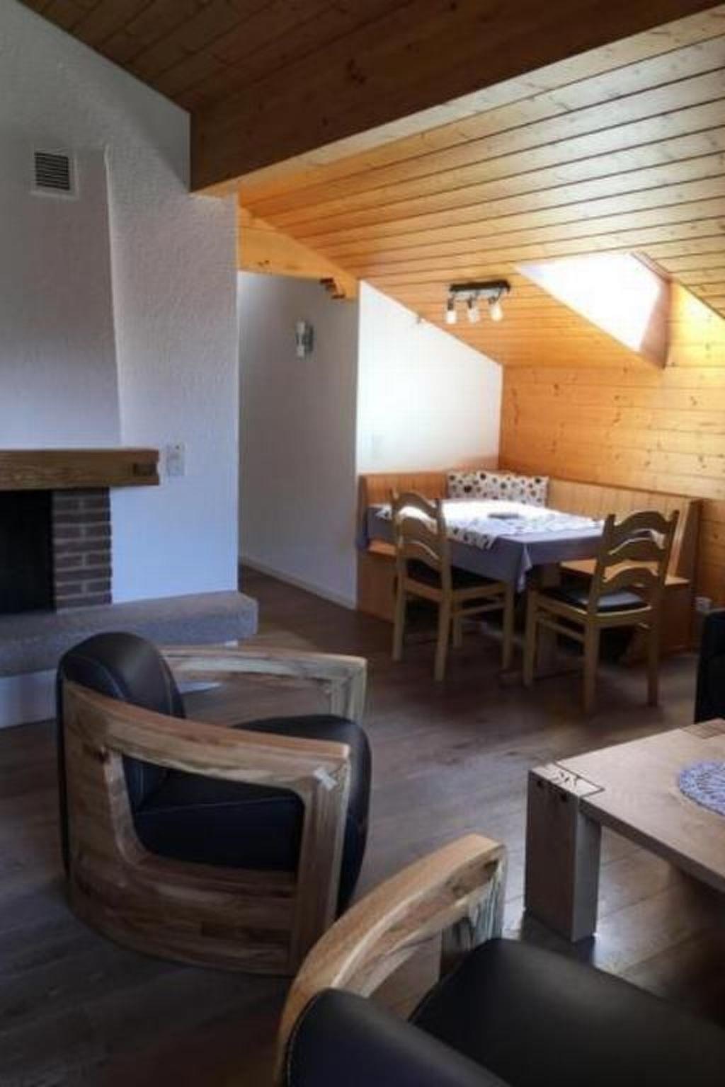 Inside, a spacious living room with a charming fireplace invites you to spend cosy evenings. The sloping roof gives the room a charming character. You will find a lovingly furnished flat.