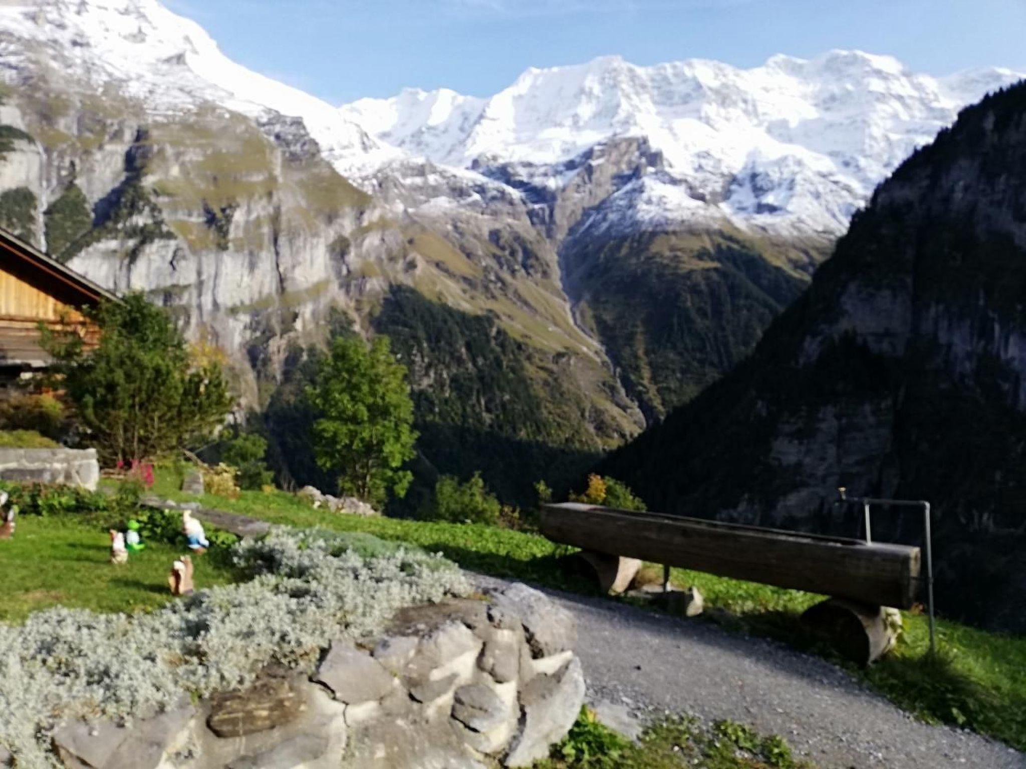 The outdoor area with garden fireplace or the sheltered arbour invite you to linger. The newly positioned outdoor seating area in front of the house with a large table offers a wonderful view of the mountains: Mönch, Jungfrau, Breithorn, Tschingelhorn, Spitzhorn, Grosshorn, Gespaltenhorn and Büttlassen and Sefinenfurke, which provides the connection to the Kiental.