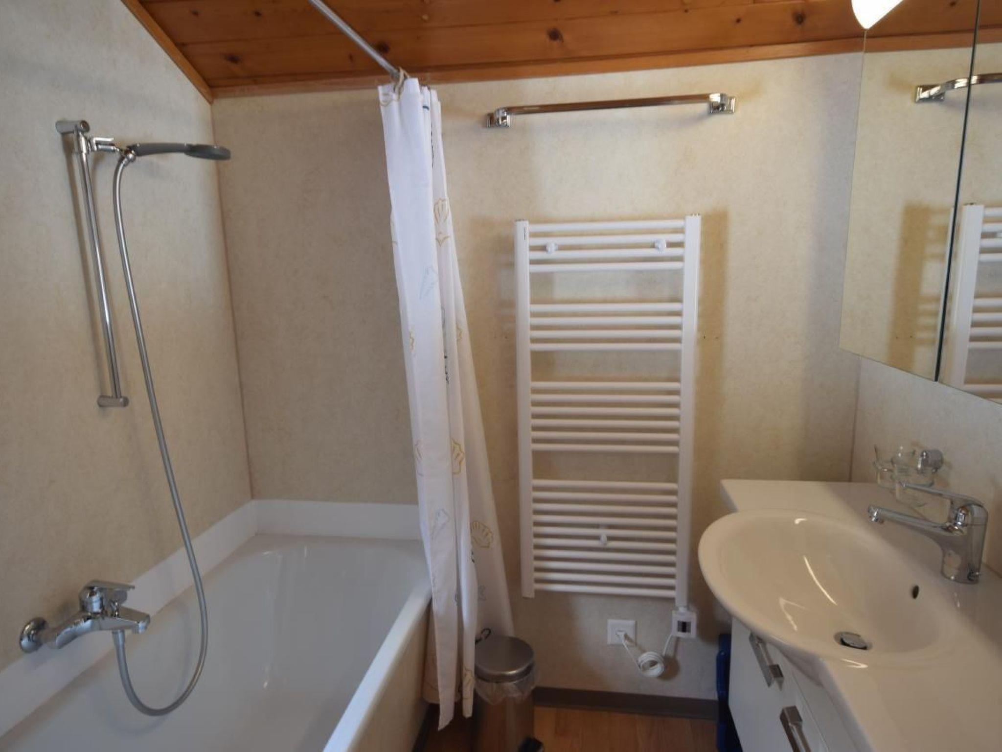 Inside the flat you will find a large and sunny living room with a cosy dining area and 2 folding beds, equipped with Swisscom TV, radio and free WLAN for your entertainment.