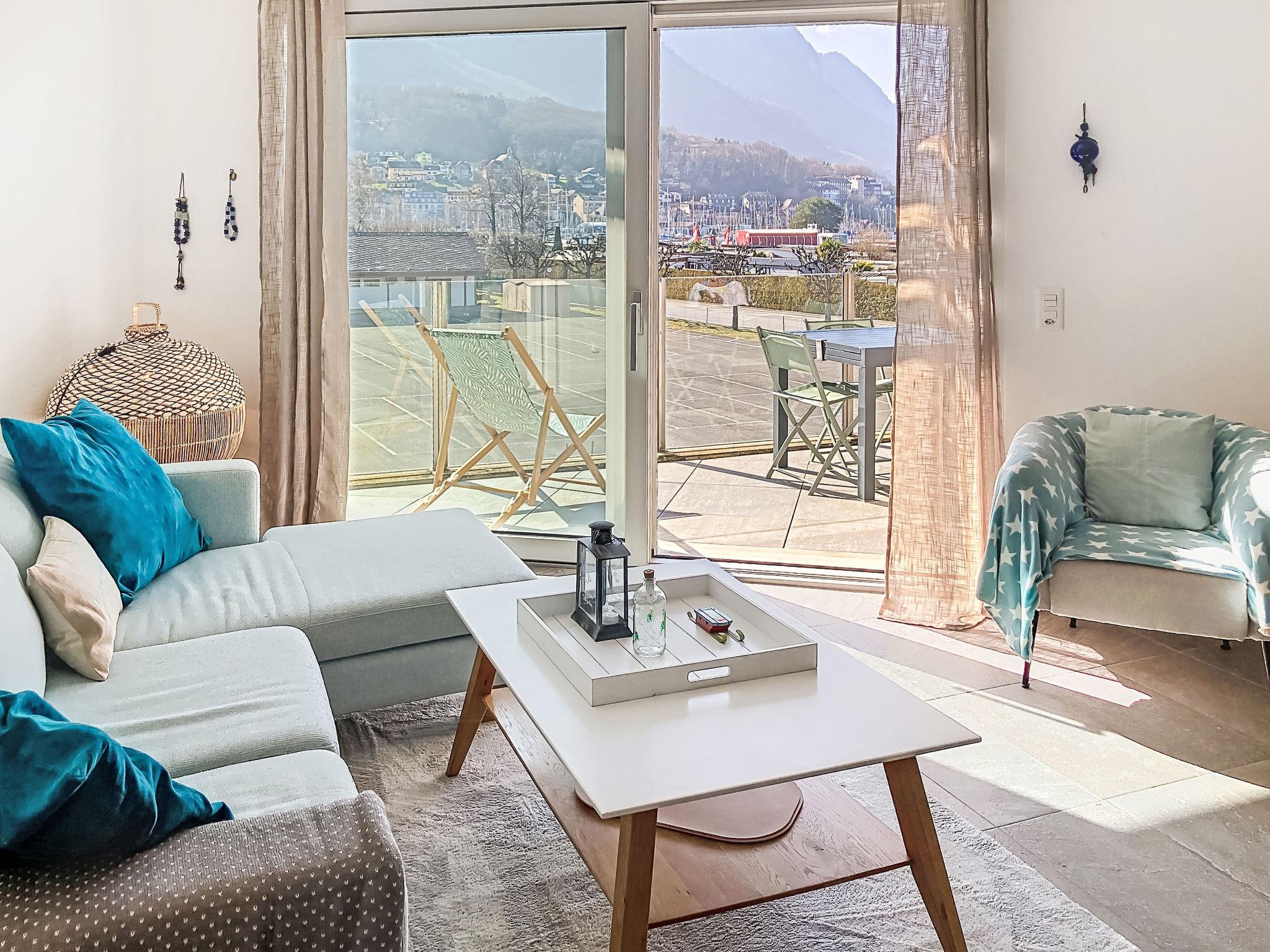 Apartment house. In the resort, in the residential district. In the house: central heating system. Communal covered parking. Supermarket 1.5 km, restaurant 300 m, bakery, café 850 m, bus stop 1.3 km, railway station 1.3 km, bathing lake 300 m. Golf course (9 hole) 8.1 km, cycle lane 100 m. Nearby attractions: Aquaparc 500 m, Swiss Vapeur Parc 1 km, Montreux 16 km, Evian-les-Bains 23 km. Well-known ski regions can easily be reached: Portes du Soleil (Torgon) 21 km, Leysin 31 km. Well-known lakes can easily be reached: Lac Léman 300 m. Hiking paths: Portes du Soleil.