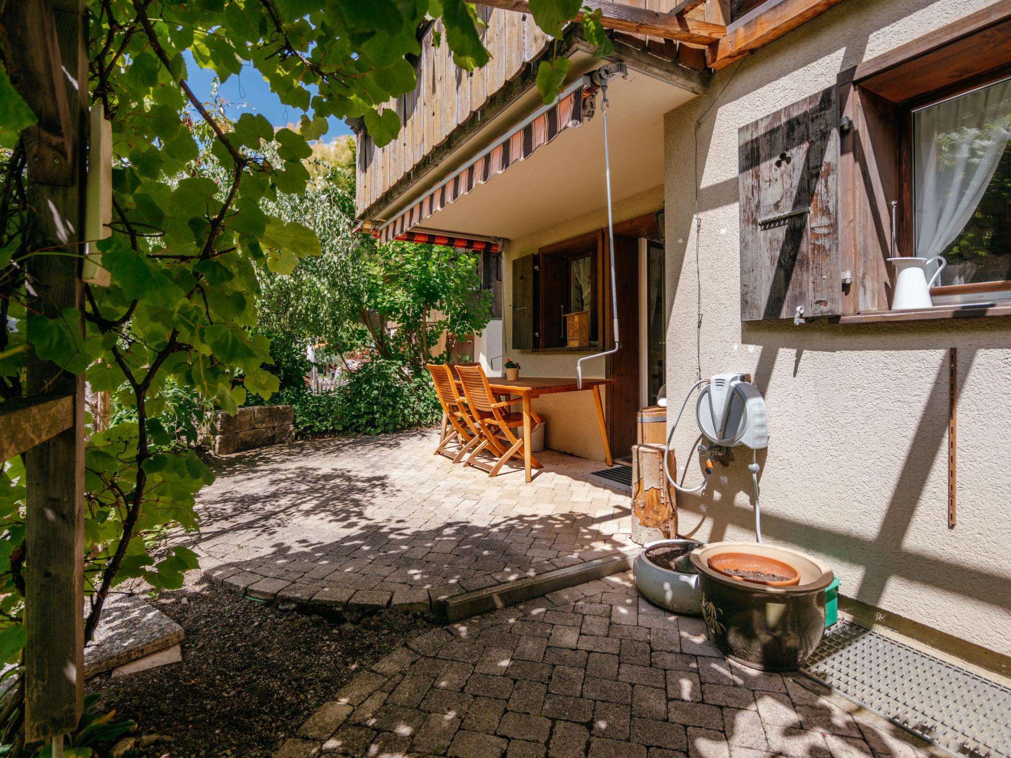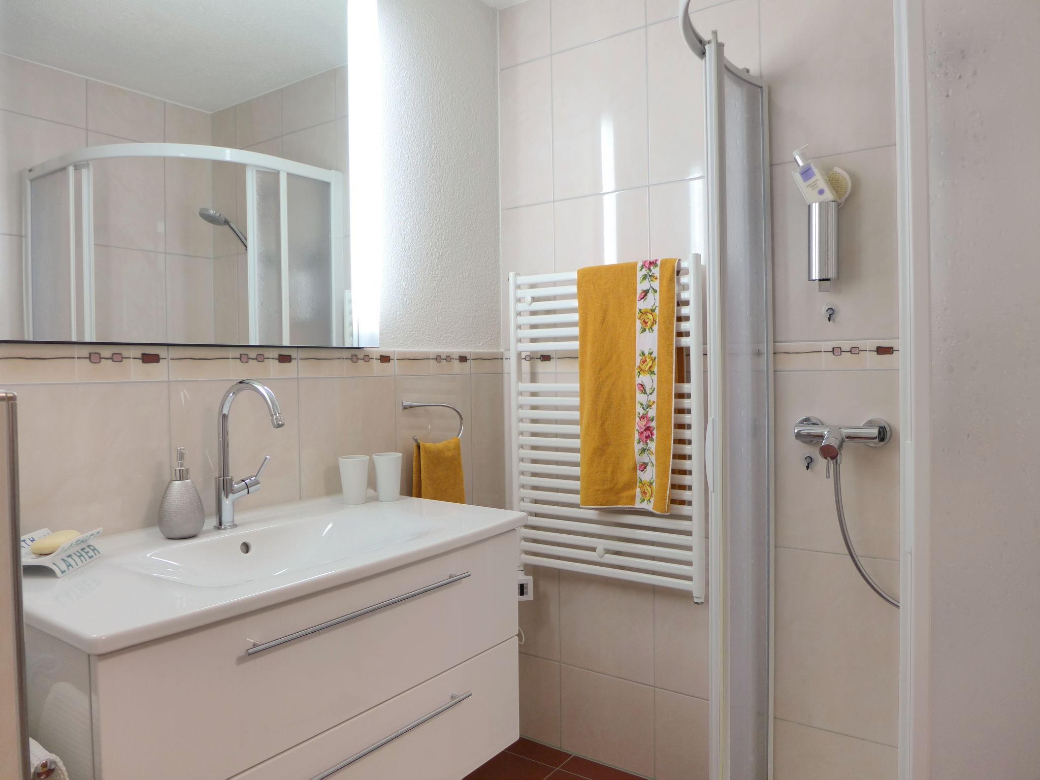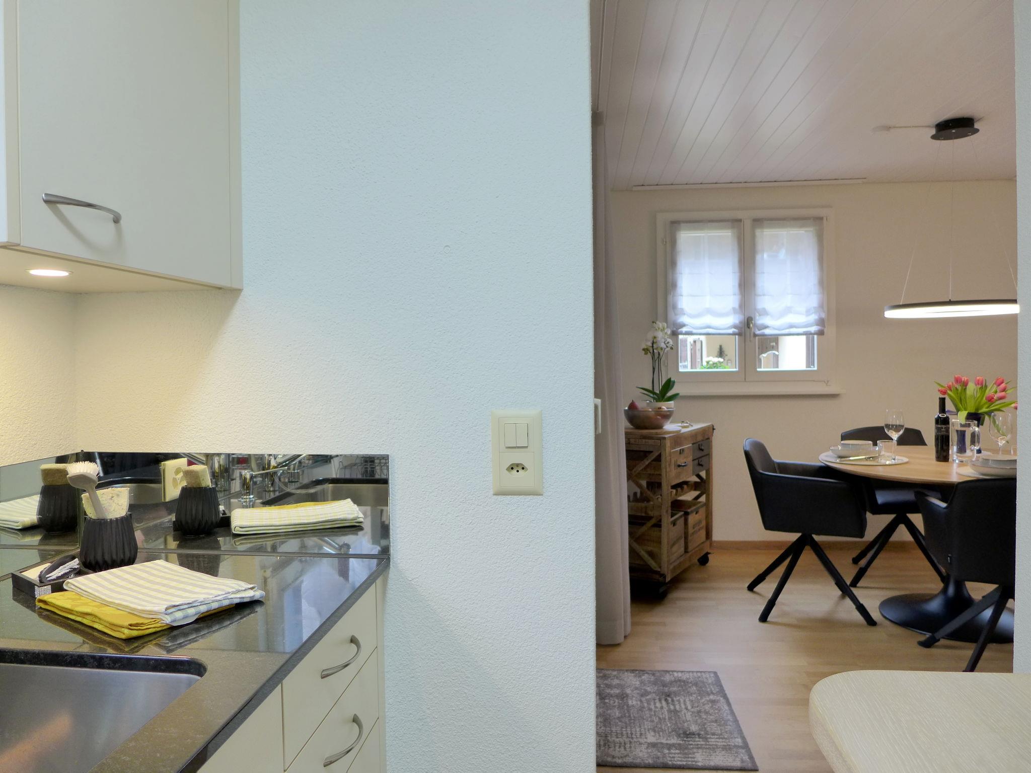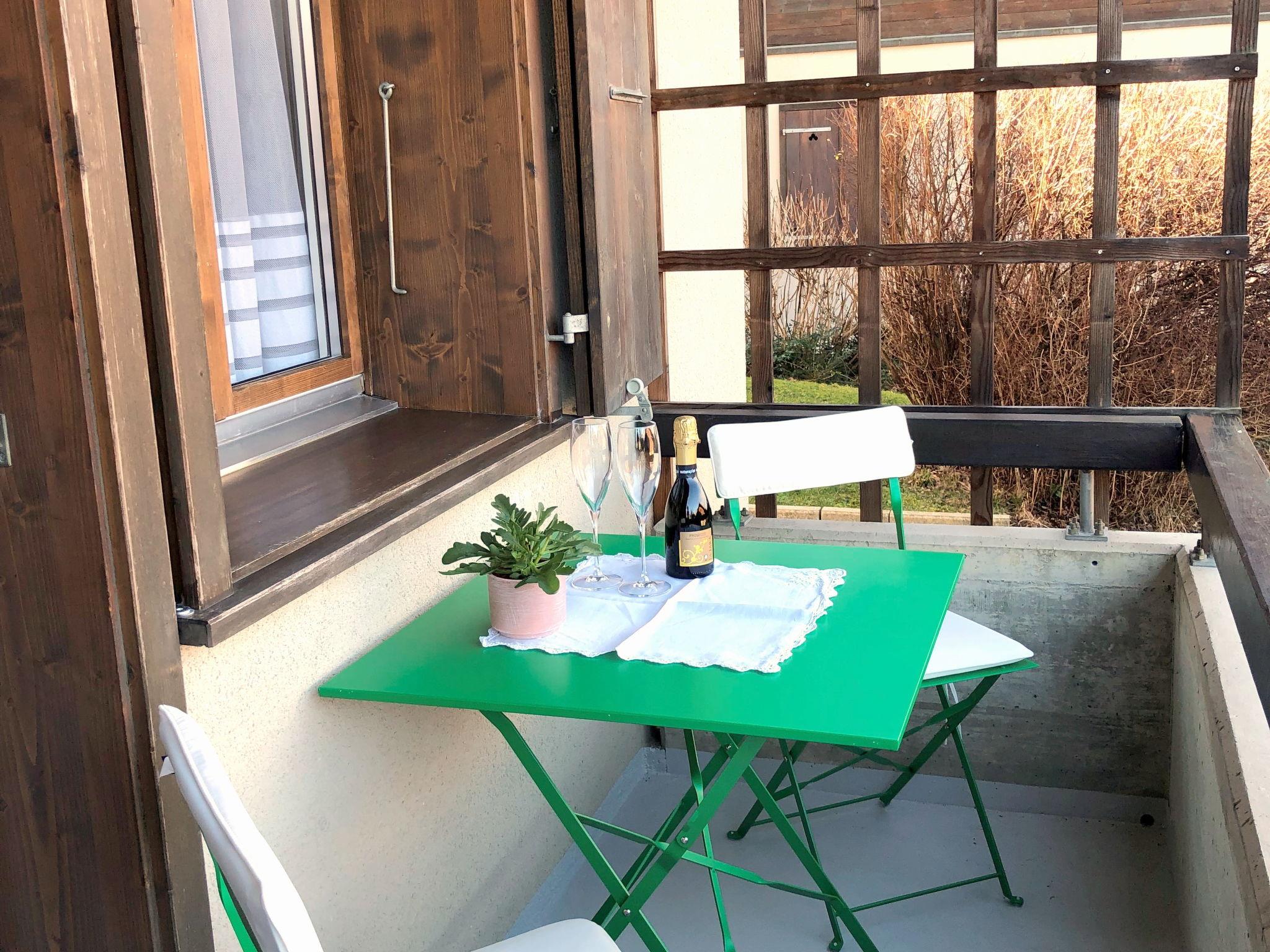 "Beatrice Garden", 2-room apartment 58 m2, on the ground floor. Spacious and bright, renovated in 2023, very comfortable and tasteful furnishings: open living/dining room with panoramic window with 1 sofabed, dining table and flat screen. Exit to the balcony, to the patio. 1 room with 1 double bed (160 cm, length 200 cm). Exit to the balcony. Open kitchen (oven, dishwasher, 4 ceramic glass hob hotplates, toaster, kettle, electric coffee machine, Capsules for coffee machine (Nespresso) extra). Shower/WC. Underfloor heating. Small balcony, west facing position and north facing position, large patio, south facing position. Terrace furniture, deck chairs. Marvellous panoramic view of the lake and the countryside. Facilities: hair dryer. Internet (WiFi, free). Parking (roofed, 1 car), height 180 cm. Please note: non-smokers only.