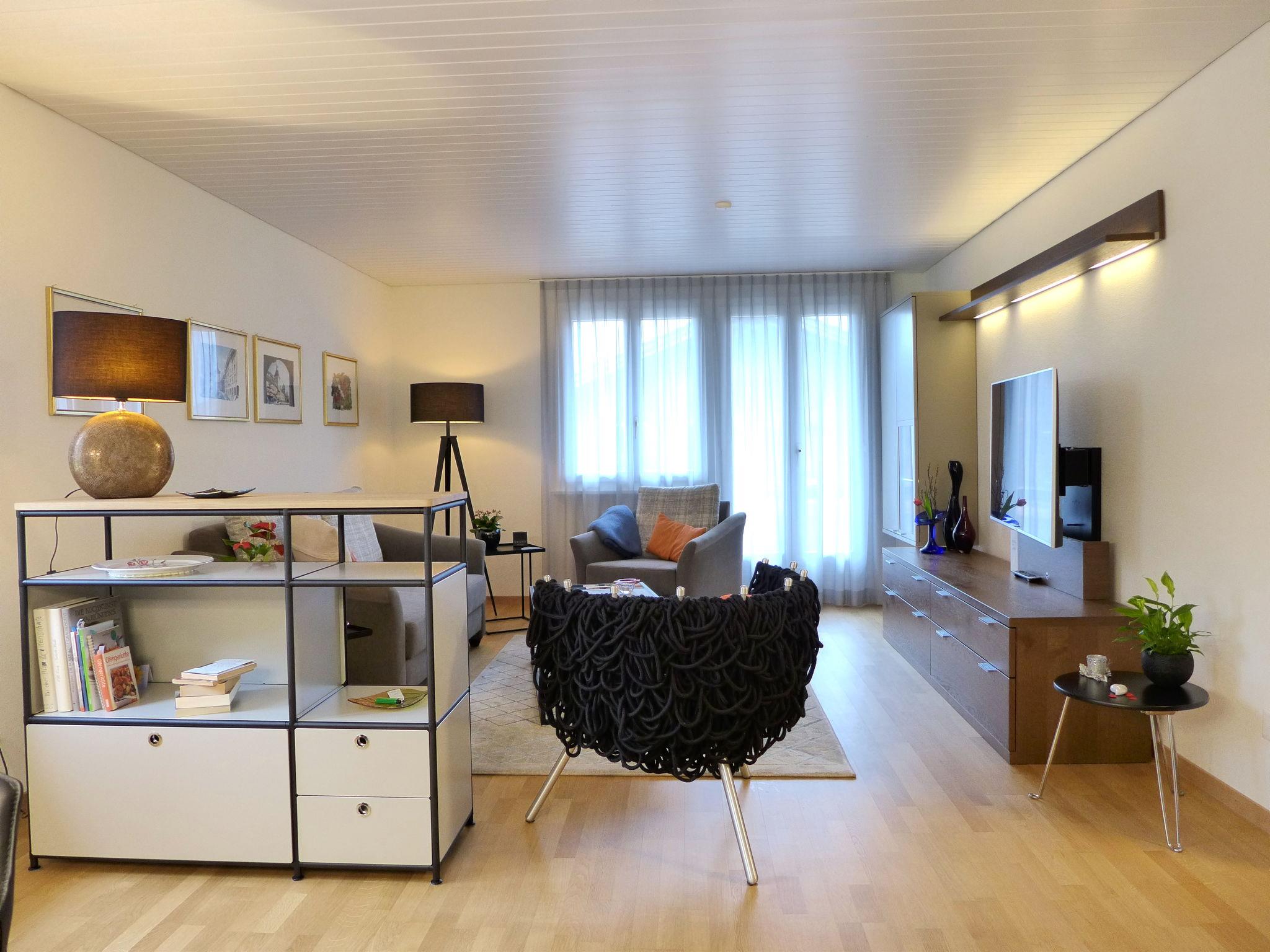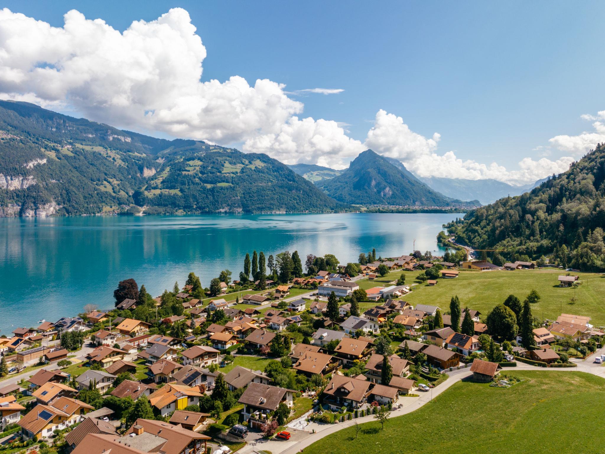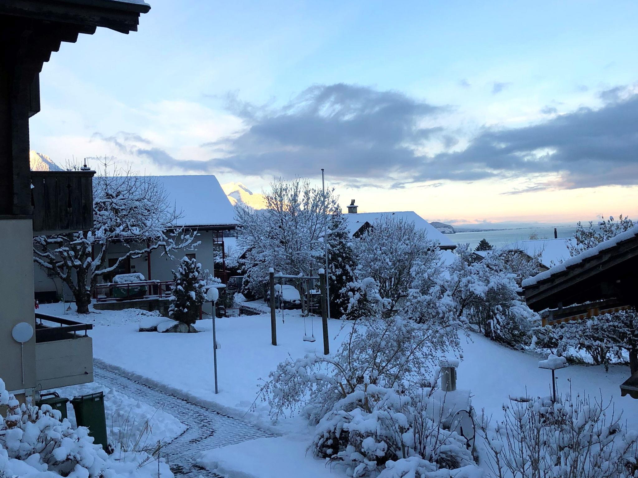 Comfortable apartment house, 4 storeys. In a quiet, sunny position on a slope, in the residential district, 600 m from the lake. In the house: storage room for bicycles, central heating system, washing machine, tumble dryer (for shared use, extra). Narrow motor access to 30 m from the house. Stepped path to the house. Communal covered parking. Grocery 600 m, restaurant, bus stop 350 m, railway station 600 m, outdoor swimming pool 900 m, 600 m. Marina 5.5 km, golf course (18 hole) 8.5 km, sailing school 8.7 km, walking paths from the house 50 m. Nearby attractions: Interlaken, Thun. Well-known lakes can easily be reached: Thunersee, Oeschinensee. Hiking paths: Diemtigtal, Jungfrau Region.