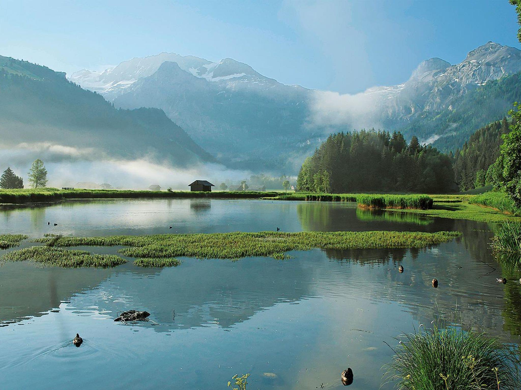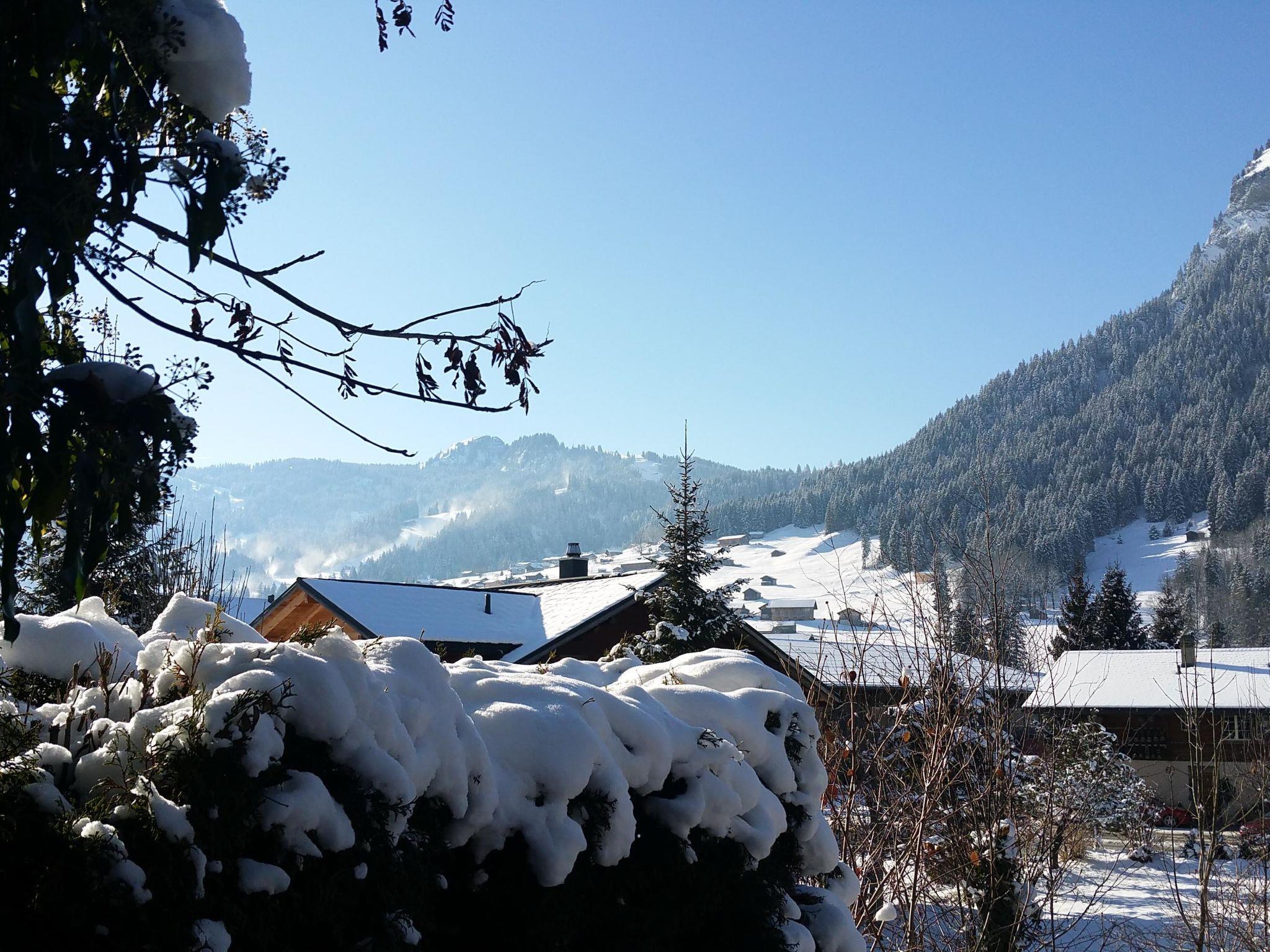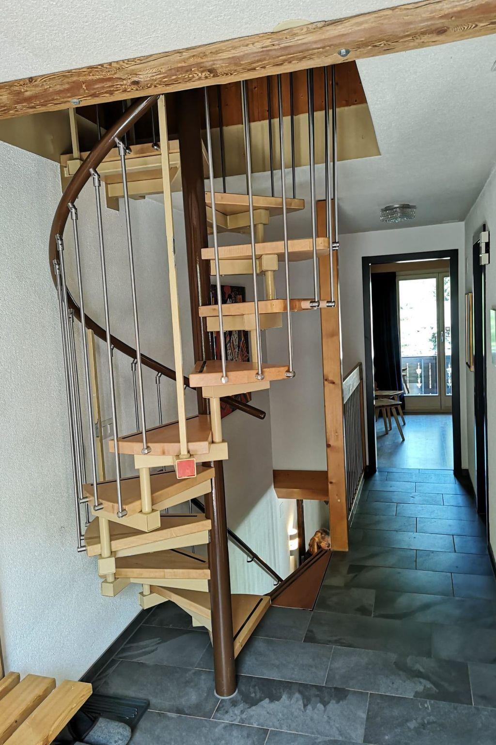 The apartment is furnished with: Ground floor: Kitchen with dining-room, living-room, toilet, terrace with a mountain-view and barbecue. Wood is provided. First floor: Entrance-level with large entrée, 1 bedroom with 2 single-beds and balcony, 1 bedroom with 2 single-beds, bathroom with shower and toilet. Second floor: 4 more sleeping possibilities. All bedrooms have enough cupboards. 1 garage and 1 parking–lot is included. The garage is also storeroom for skis. The kitchen is equipped for 8 persons. Dishwasher, oven, raclette-oven, fondue-set, coffee-maker, washingmachine. The apartment has a flatsceen-tv and garden-furniture. Public transport included in the Simmental and Saanenland with the SIMMENTAL CARD: Overnight guests in the Lenk-Simmental holiday region travel free of charge on public transport for excursions with a valid guest card.